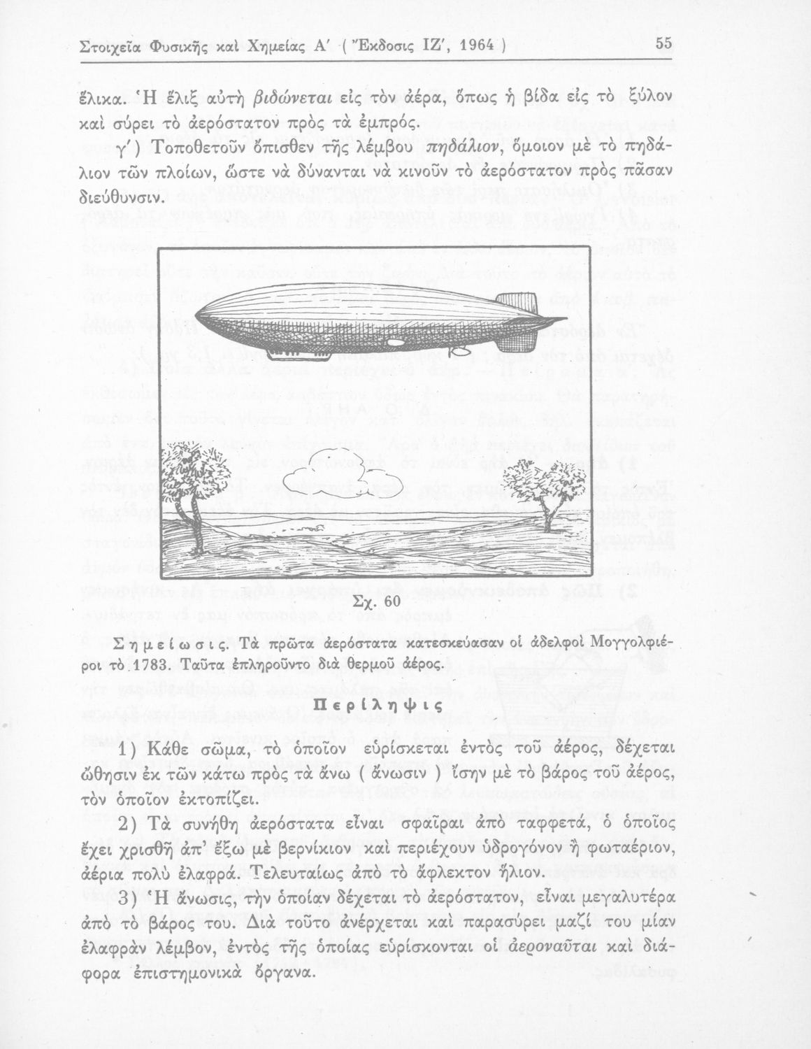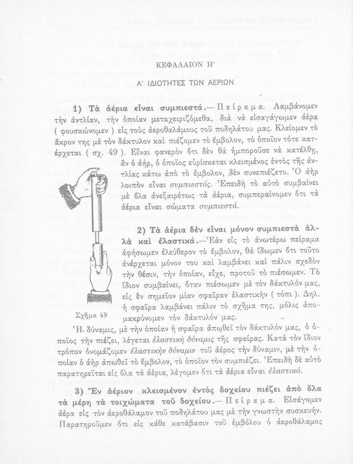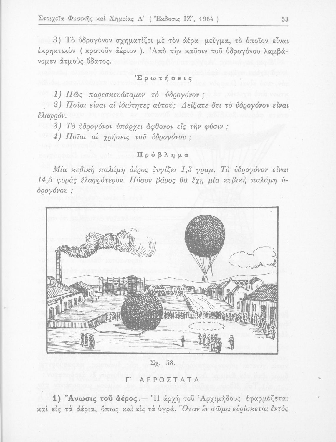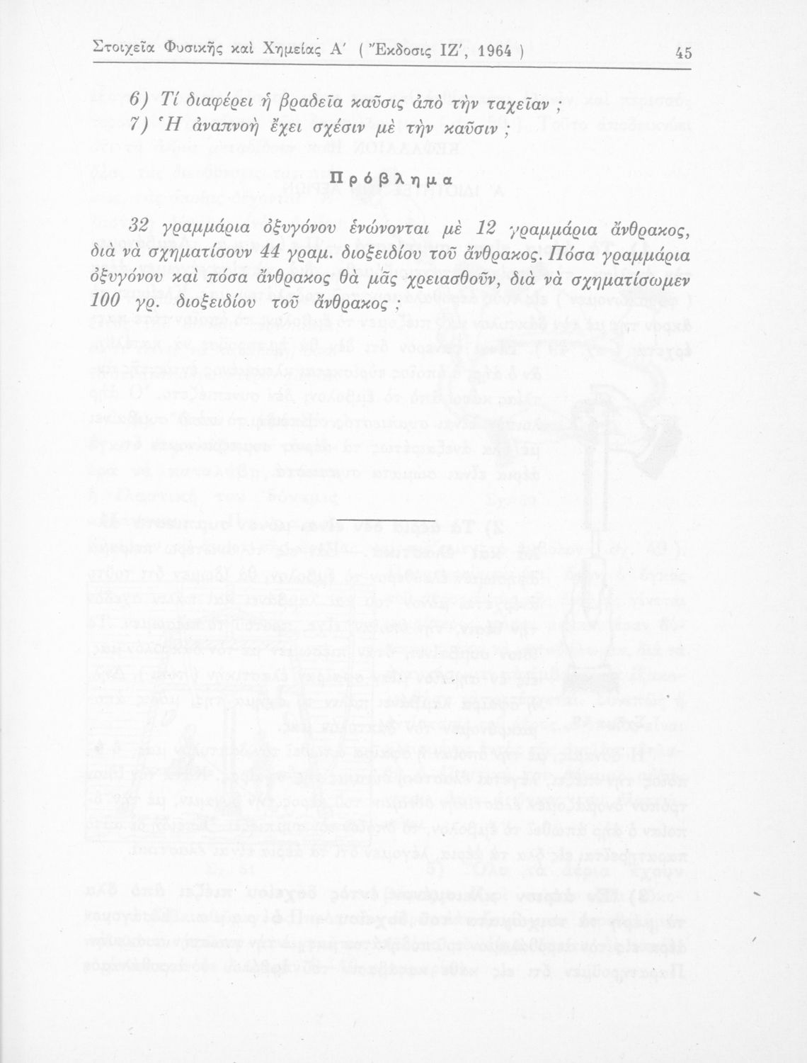 Σχολικό εγχειρίδιο Φυσικής και Χημείας που προσδιορίζει τη μηχανική στερεών σωμάτων, αναφέρει τις ιδιότητες ποικίλων στοιχείων της φύσης (οξυγόνο, υδρογόνο, αέρα, νερό) περιγράφοντας τις χημικές ενώσεις που προκαλούν.