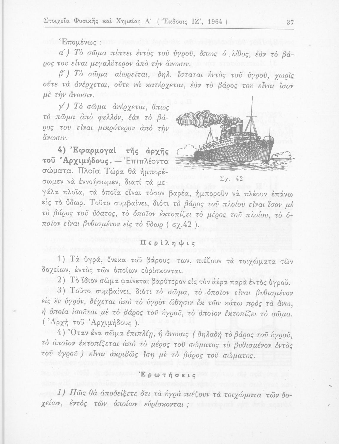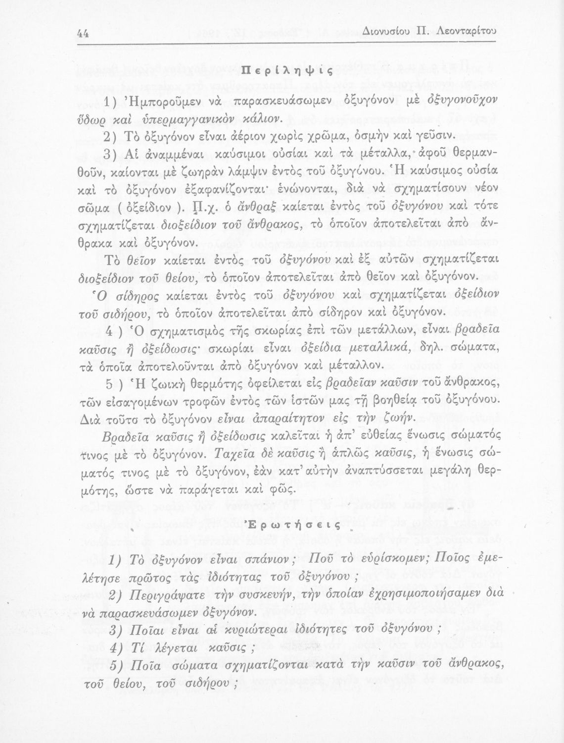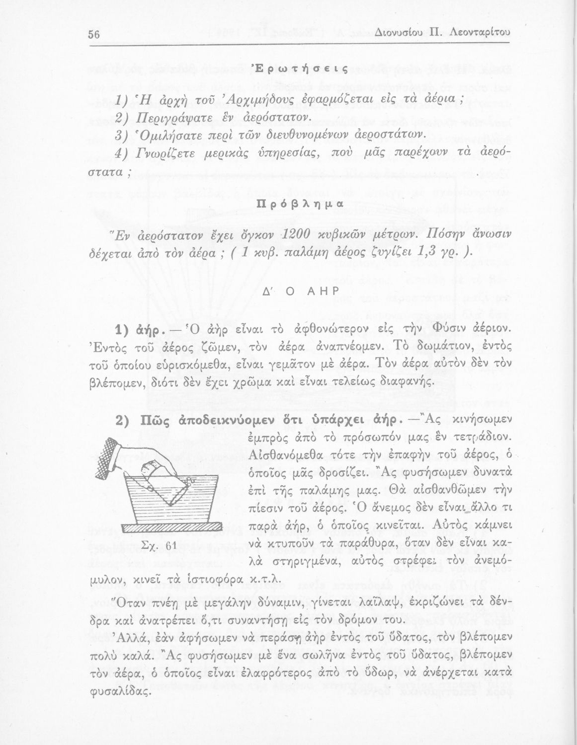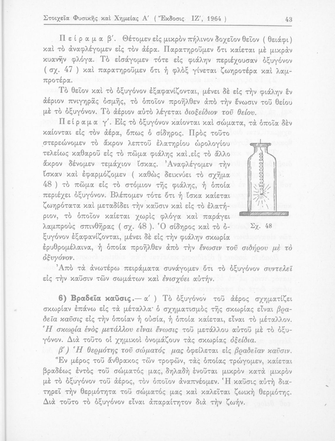Σχολικό εγχειρίδιο Φυσικής και Χημείας που προσδιορίζει τη μηχανική στερεών σωμάτων, αναφέρει τις ιδιότητες ποικίλων στοιχείων της φύσης (οξυγόνο, υδρογόνο, αέρα, νερό) περιγράφοντας τις χημικές ενώσεις που προκαλούν.