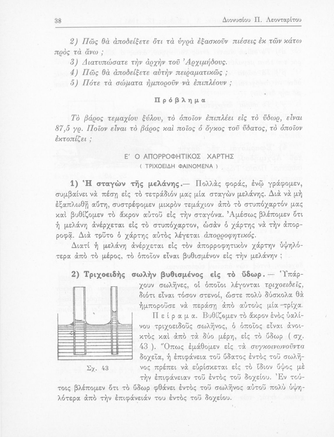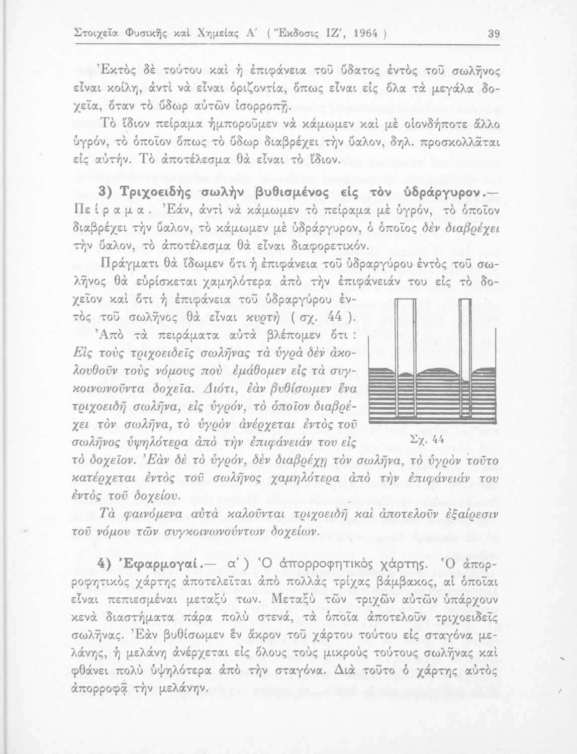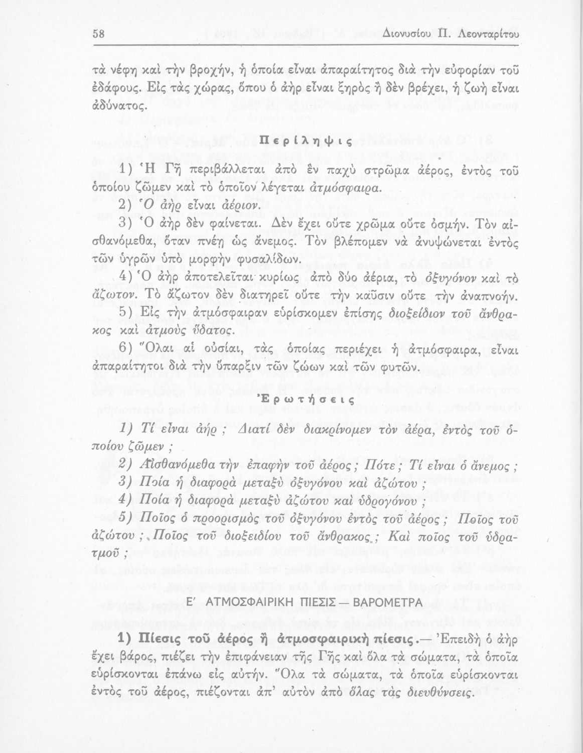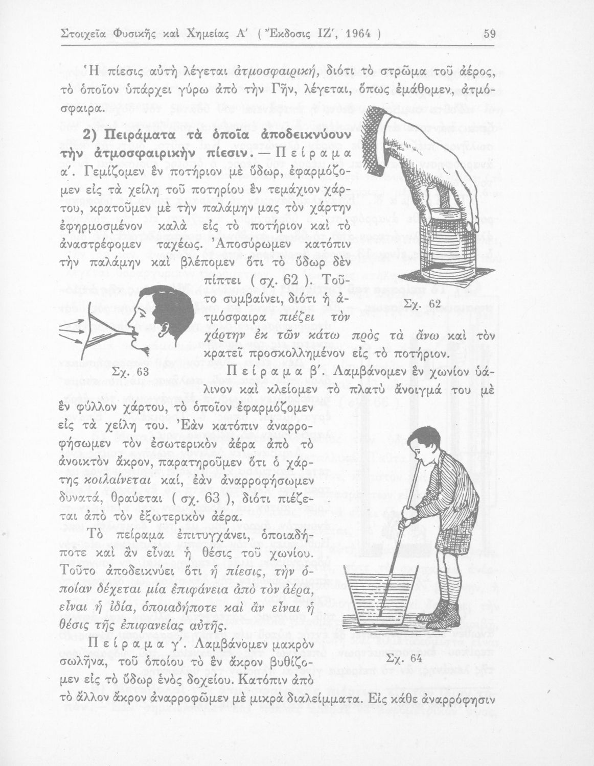 Σχολικό εγχειρίδιο Φυσικής και Χημείας που προσδιορίζει τη μηχανική στερεών σωμάτων, αναφέρει τις ιδιότητες ποικίλων στοιχείων της φύσης (οξυγόνο, υδρογόνο, αέρα, νερό) περιγράφοντας τις χημικές ενώσεις που προκαλούν.