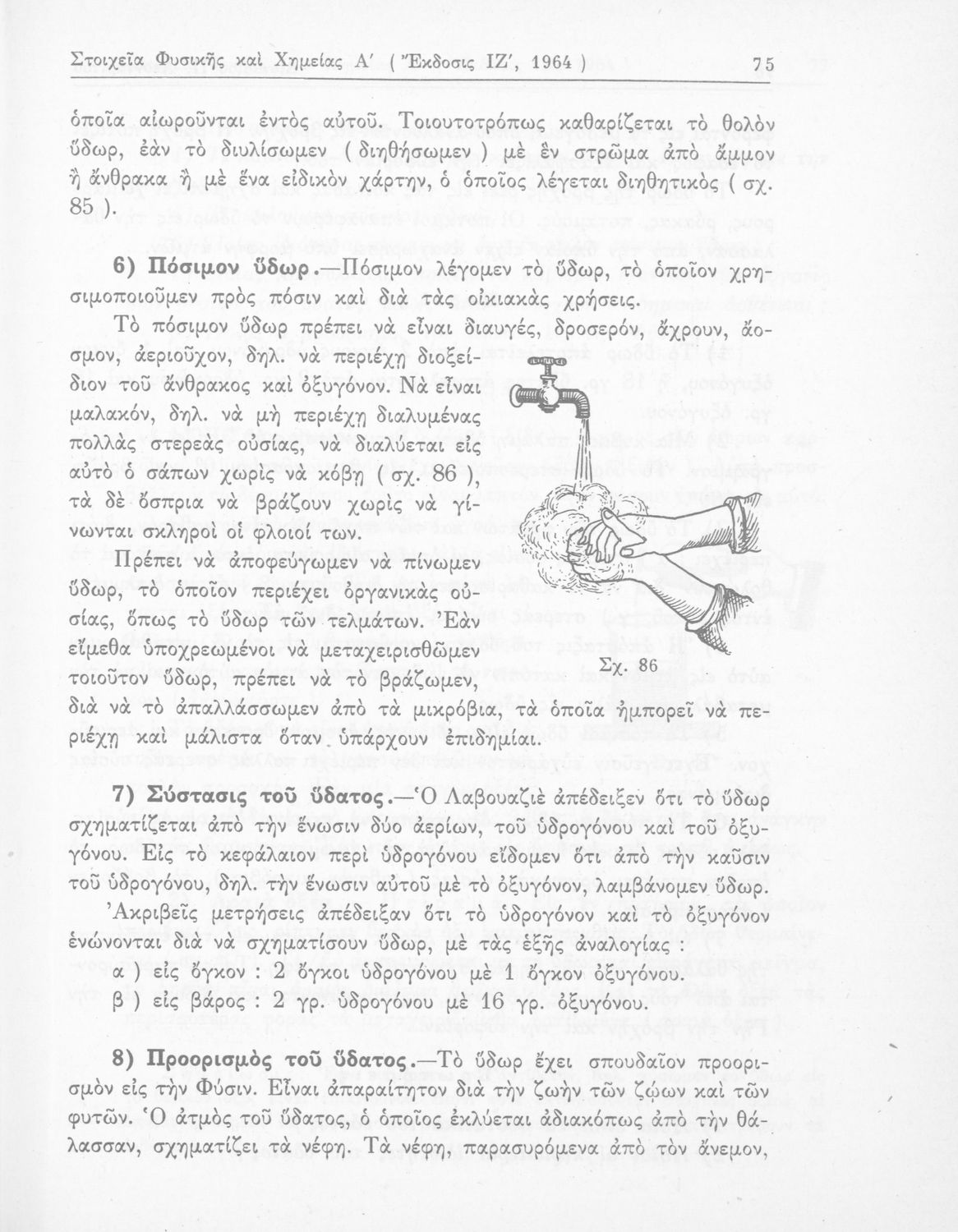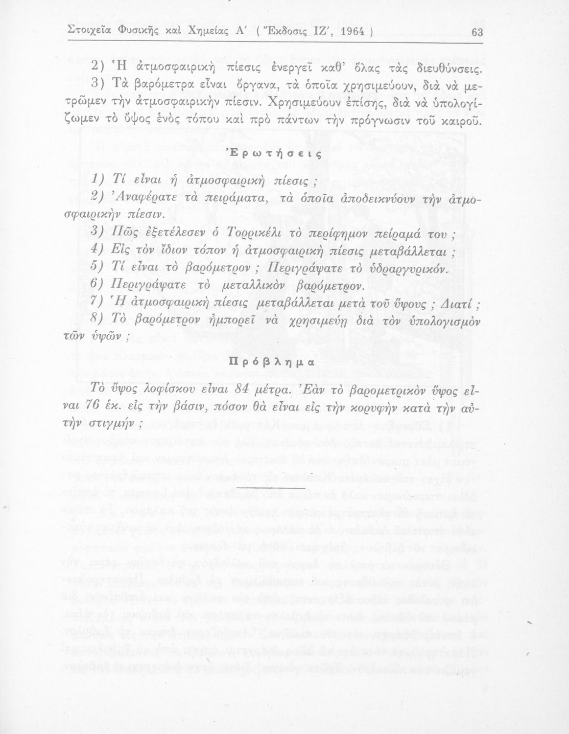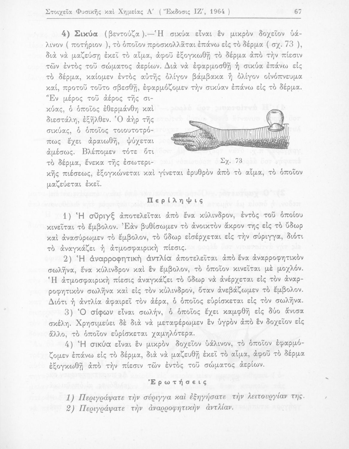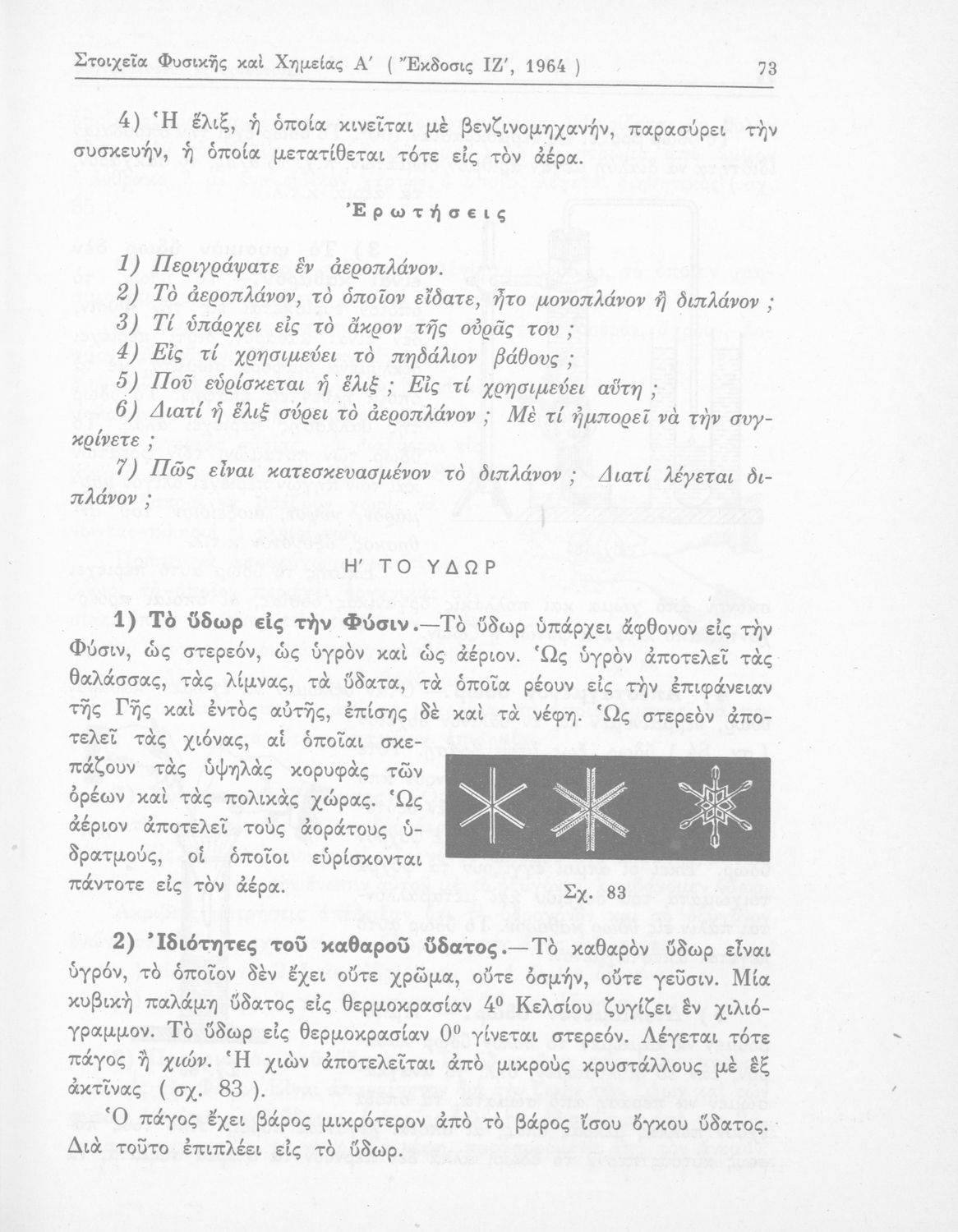 Παρουσίαση περιεχομένου: Σχολικό εγχειρίδιο Φυσικής και Χημείας που προσδιορίζει τη μηχανική στερεών σωμάτων, αναφέρει τις ιδιότητες ποικίλων στοιχείων της φύσης (οξυγόνο, υδρογόνο, αέρα, νερό) περιγράφοντας τις χημικές ενώσεις που προκαλούν.