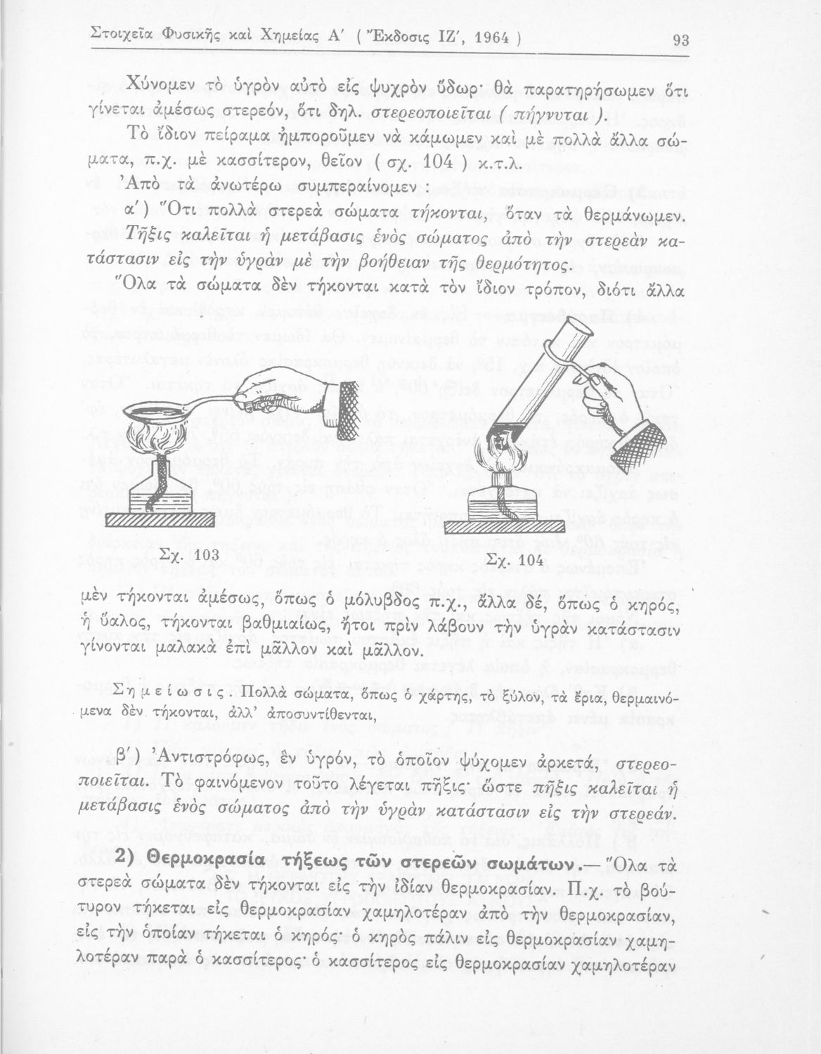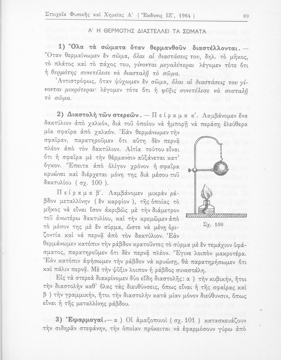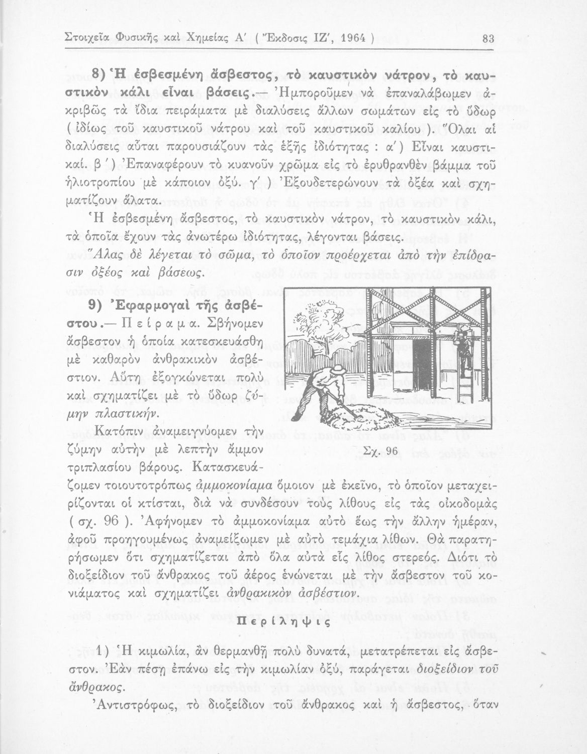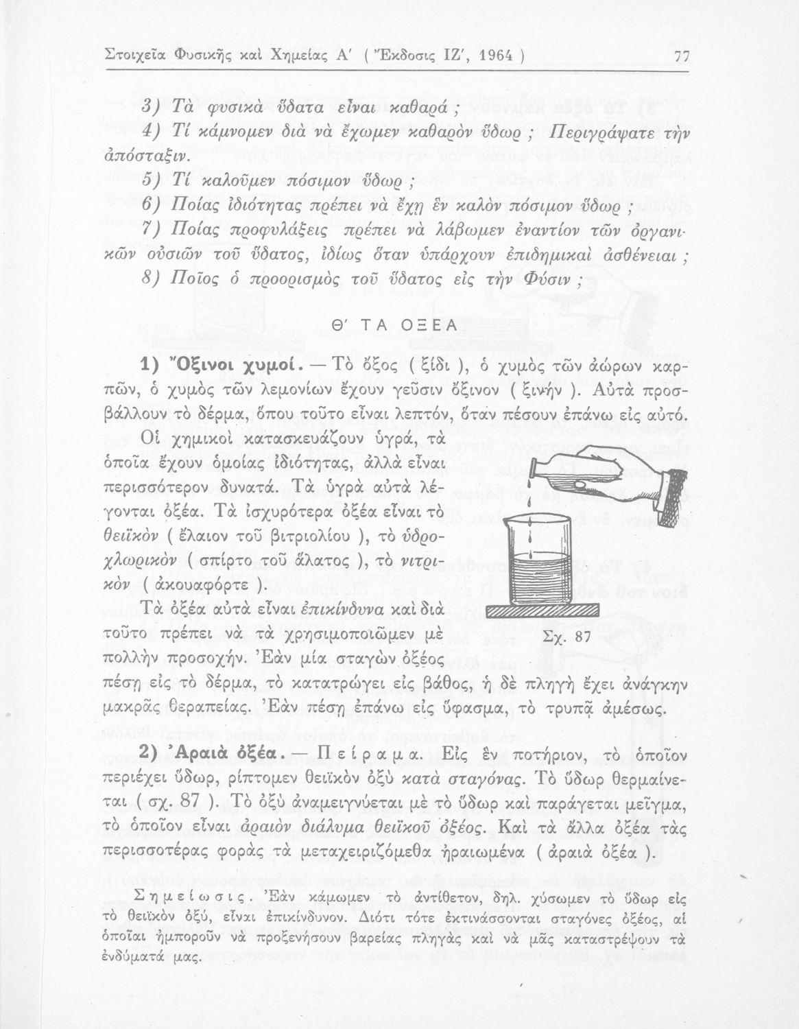 Σχολικό εγχειρίδιο Φυσικής και Χημείας που προσδιορίζει τη μηχανική στερεών σωμάτων, αναφέρει τις ιδιότητες ποικίλων στοιχείων της φύσης (οξυγόνο, υδρογόνο, αέρα, νερό) περιγράφοντας τις χημικές ενώσεις που προκαλούν.