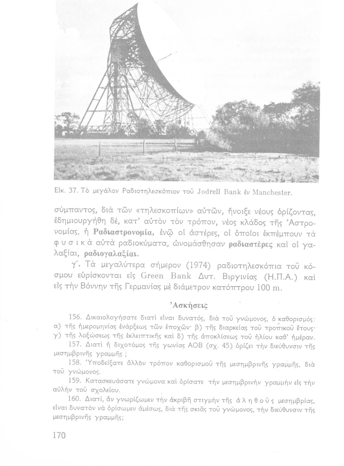 Σχολικό εγχειρίδιο Κοσμογραφίας ΣΤ΄ Γυμνασίου που πραγματεύεται τη μορφή, σύσταση, μέγεθος και κίνηση των γαλαξιών και των πλανητών. Περιέχει στοιχεία αστροναυτικής και πίνακα με 88 αστερισμούς, τα διεθνή ονόματα και τα σύμβολά τους.