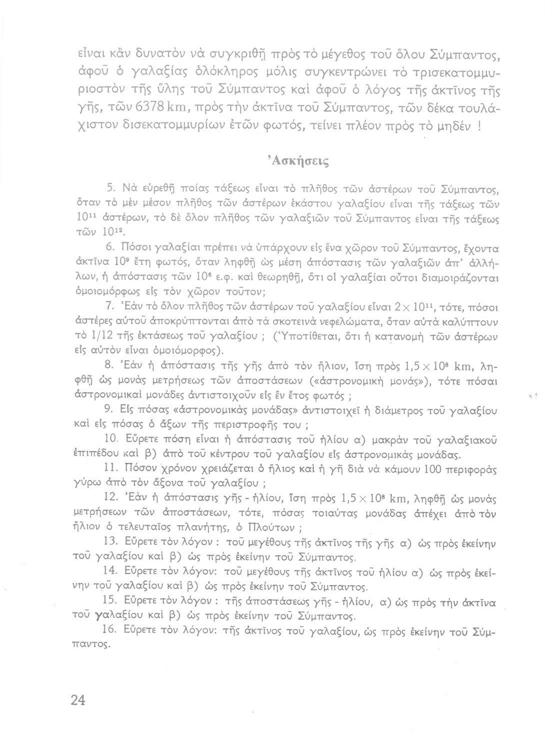 Σχολικό εγχειρίδιο Κοσμογραφίας ΣΤ΄ Γυμνασίου που πραγματεύεται τη μορφή, σύσταση, μέγεθος και κίνηση των γαλαξιών και των πλανητών. Περιέχει στοιχεία αστροναυτικής και πίνακα με 88 αστερισμούς, τα διεθνή ονόματα και τα σύμβολά τους.