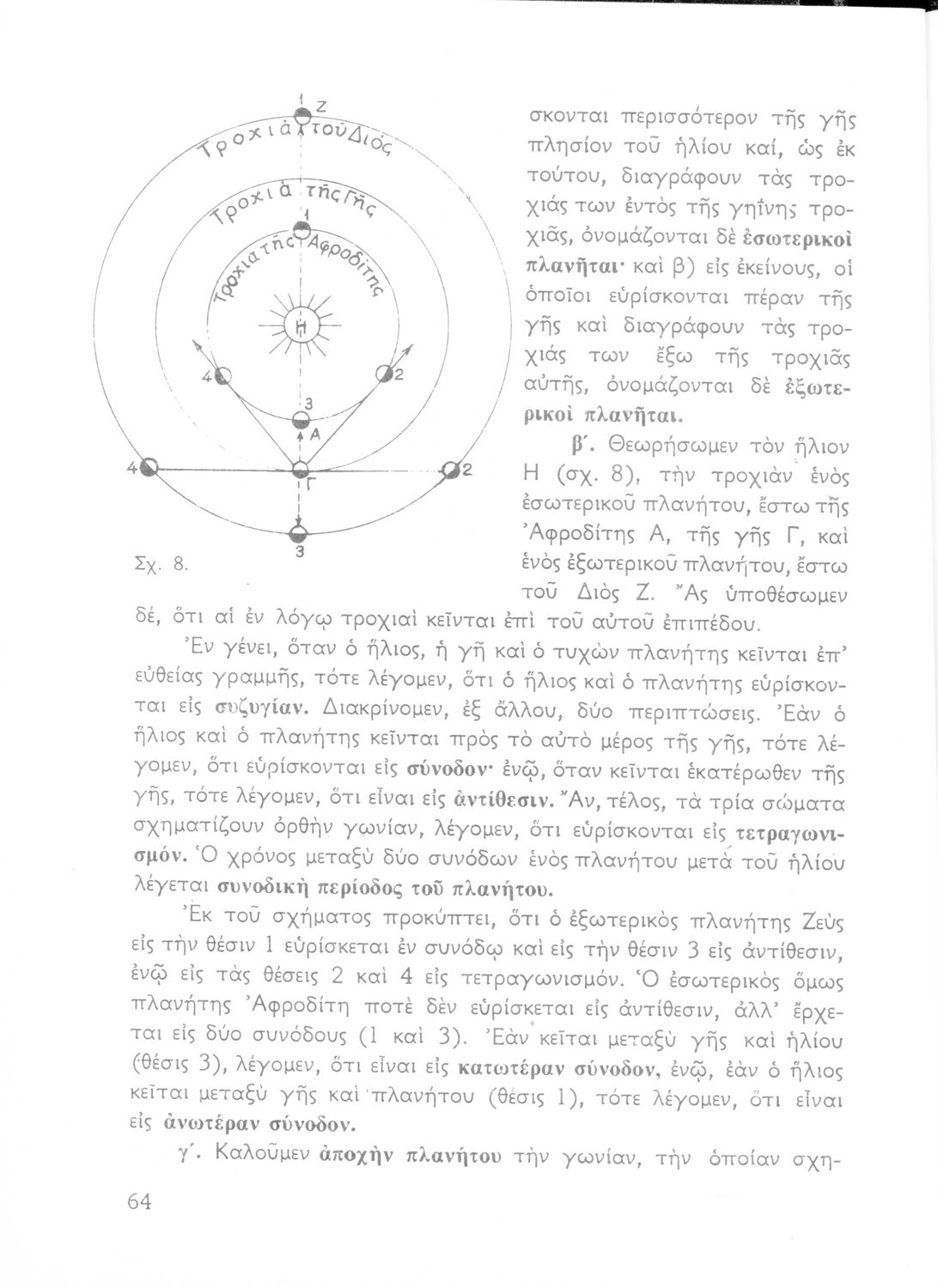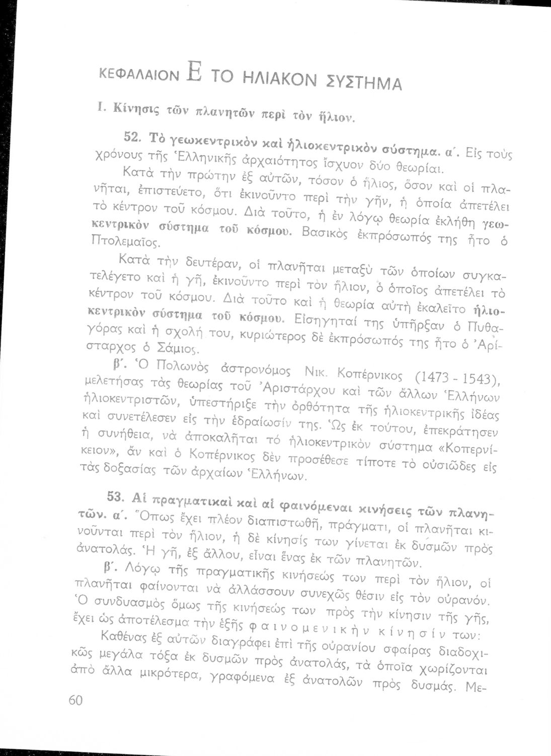 Σχολικό εγχειρίδιο Κοσμογραφίας ΣΤ΄ Γυμνασίου που εστιάζει στην κίνηση των πλανητών και στον τρόπο υπολογισμού της τροχιάς τους.