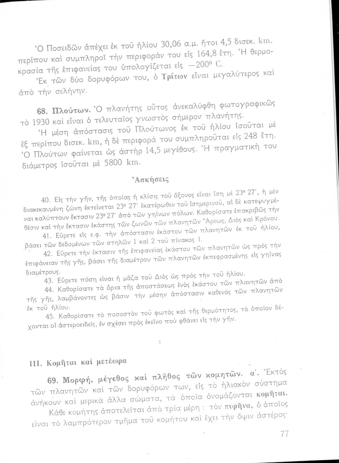 Σχολικό εγχειρίδιο Κοσμογραφίας ΣΤ΄ Γυμνασίου που πραγματεύεται τη μορφή, σύσταση, μέγεθος και κίνηση των γαλαξιών και των πλανητών. Περιέχει στοιχεία αστροναυτικής και πίνακα με 88 αστερισμούς, τα διεθνή ονόματα και τα σύμβολά τους.