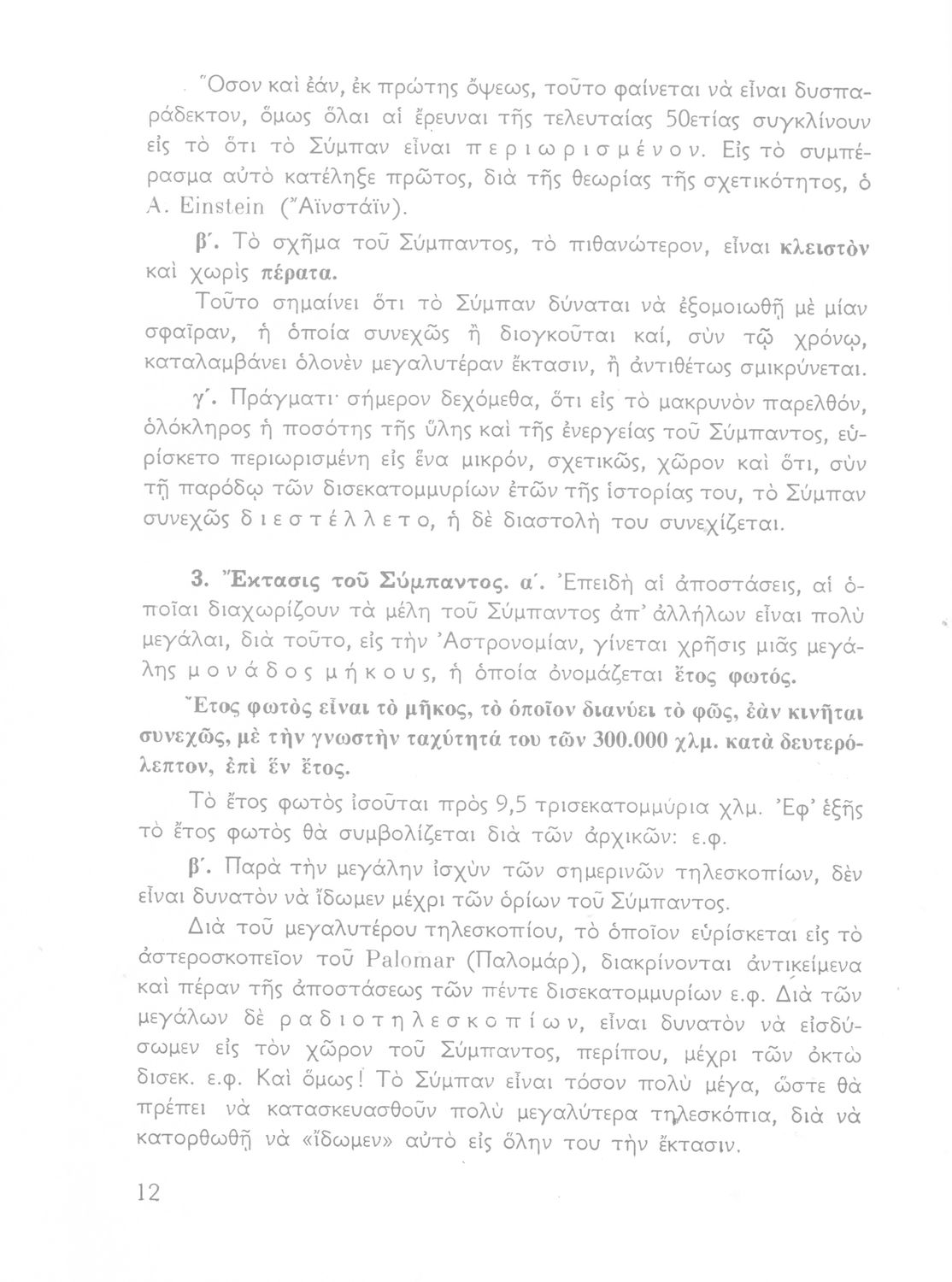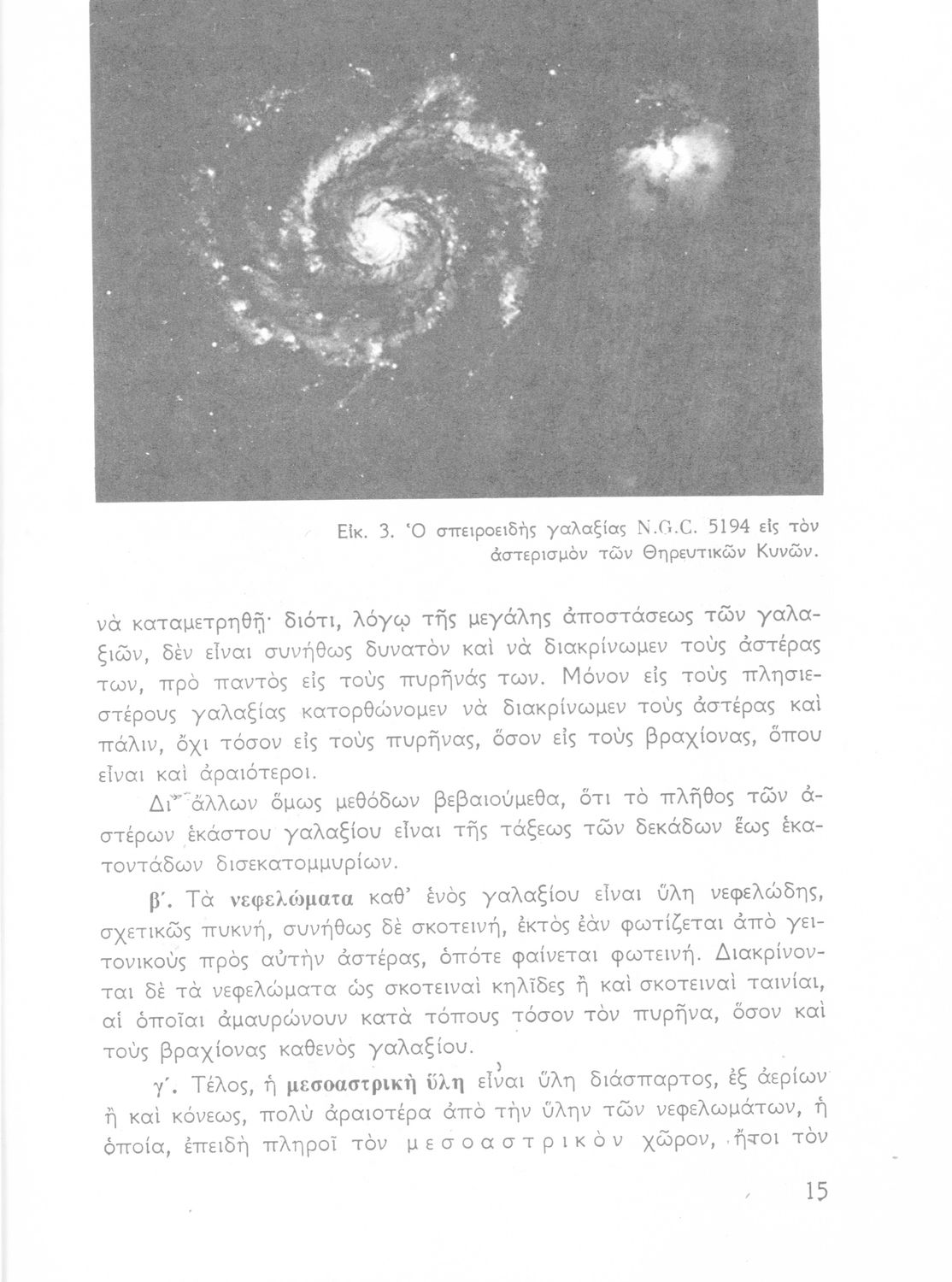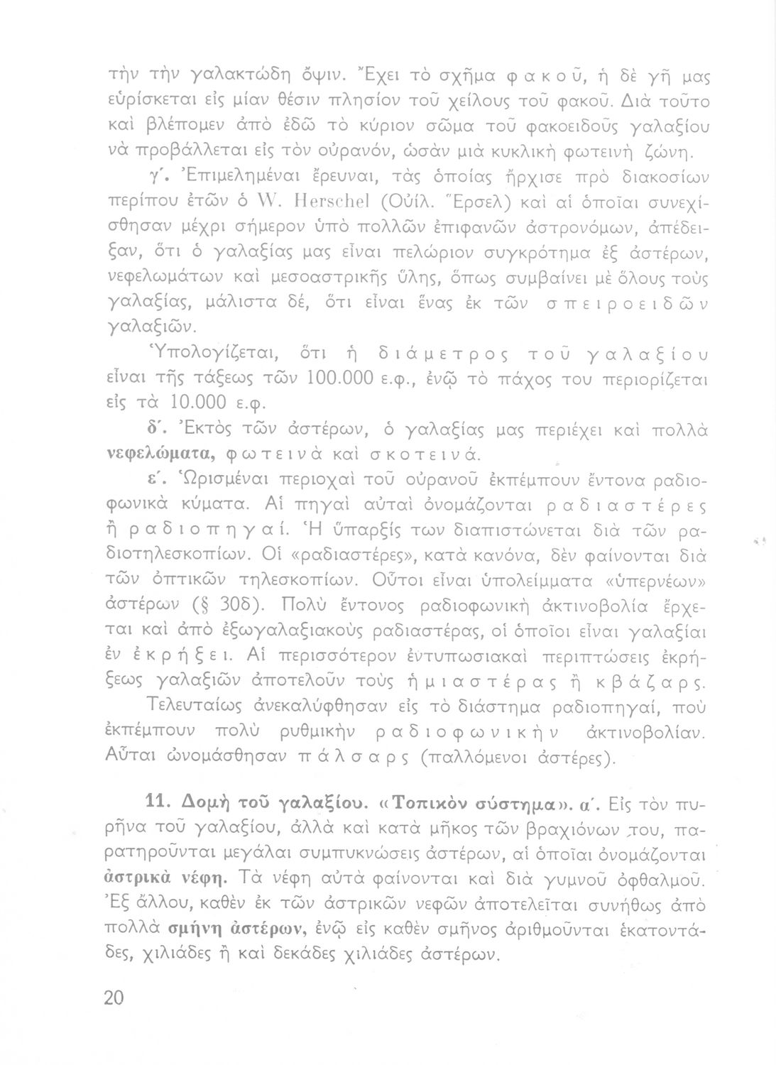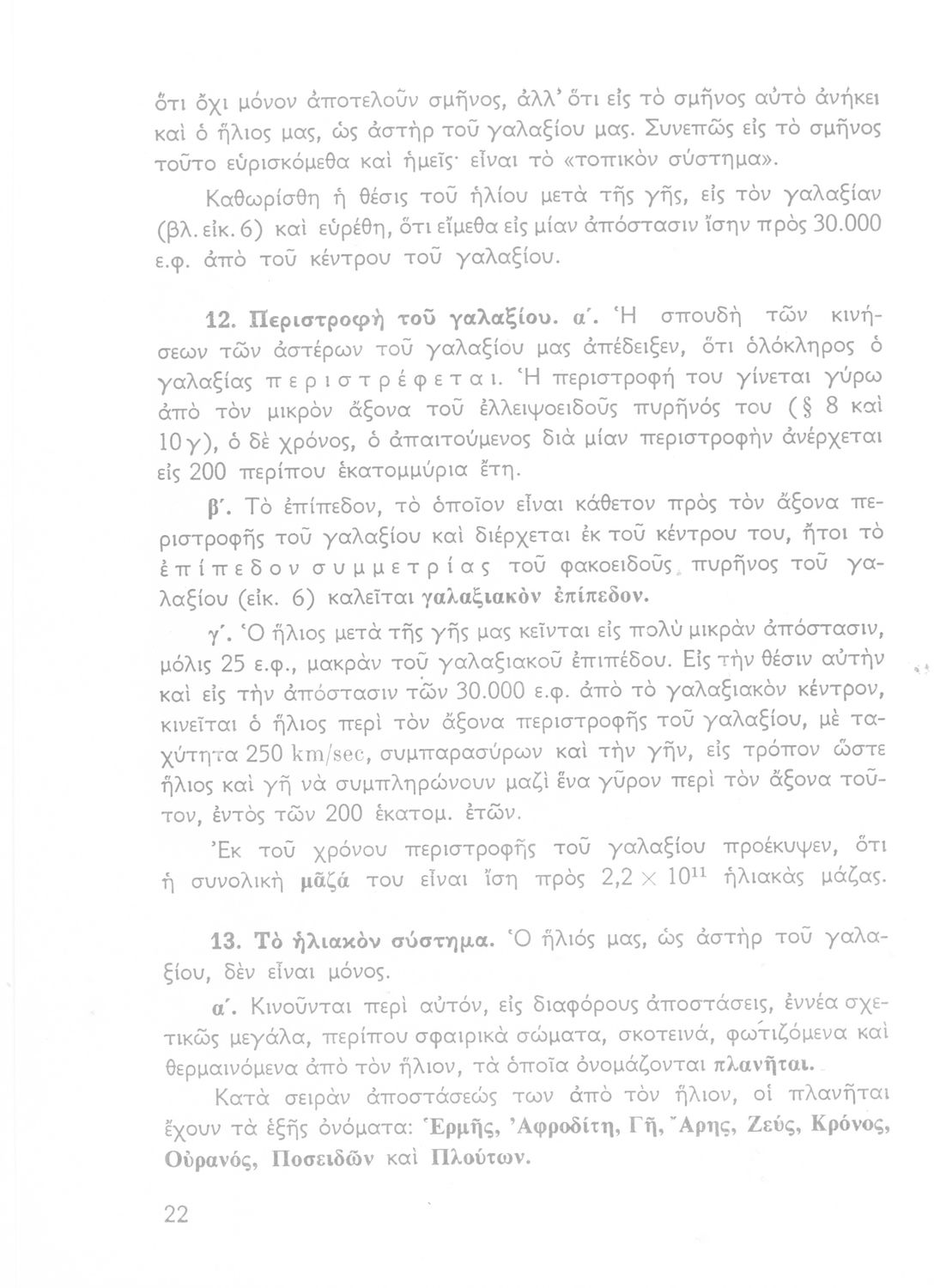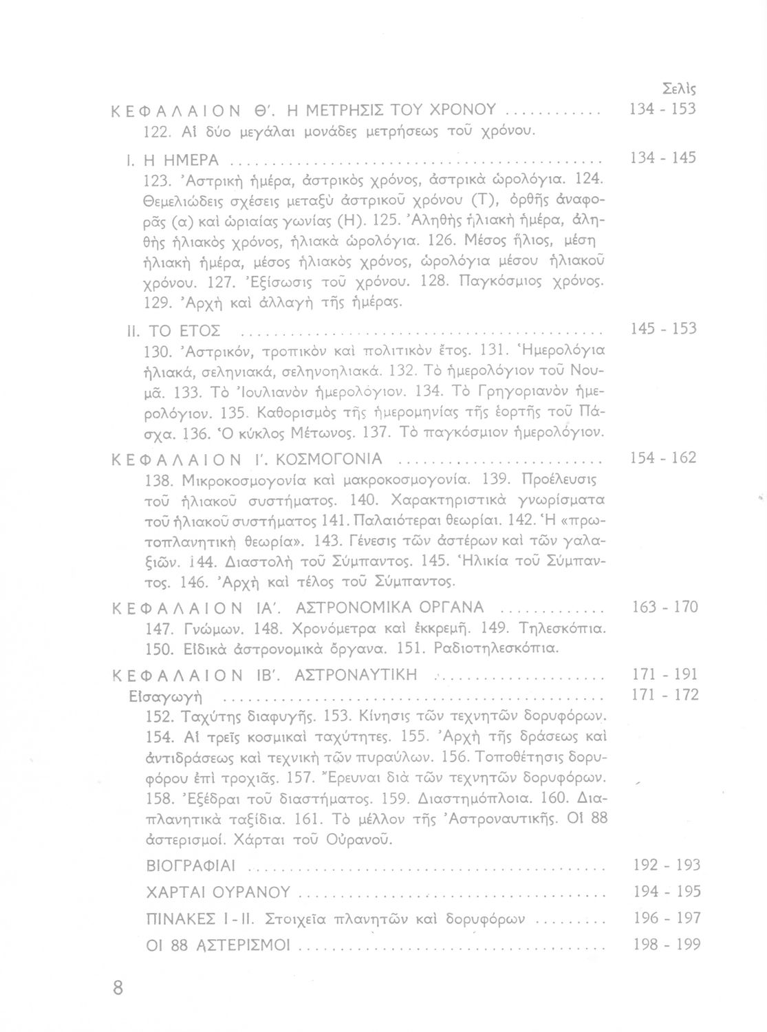 Σχολικό εγχειρίδιο Κοσμογραφίας ΣΤ΄ Γυμνασίου που πραγματεύεται τη μορφή, σύσταση, μέγεθος και κίνηση των γαλαξιών και των πλανητών. Περιέχει στοιχεία αστροναυτικής και πίνακα με 88 αστερισμούς, τα διεθνή ονόματα και τα σύμβολά τους.