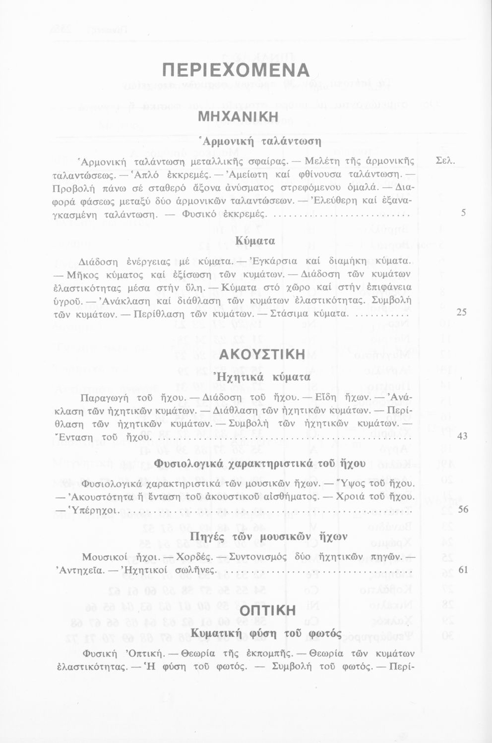 Σχολικό εγχειρίδιο Φυσικής Γ΄ Λυκείου που εστιάζει στην μηχανική, στην οπτική, στην ακουστική, στον ηλεκτρισμού καθώς και στην ατομική και πυρηνική φυσική.