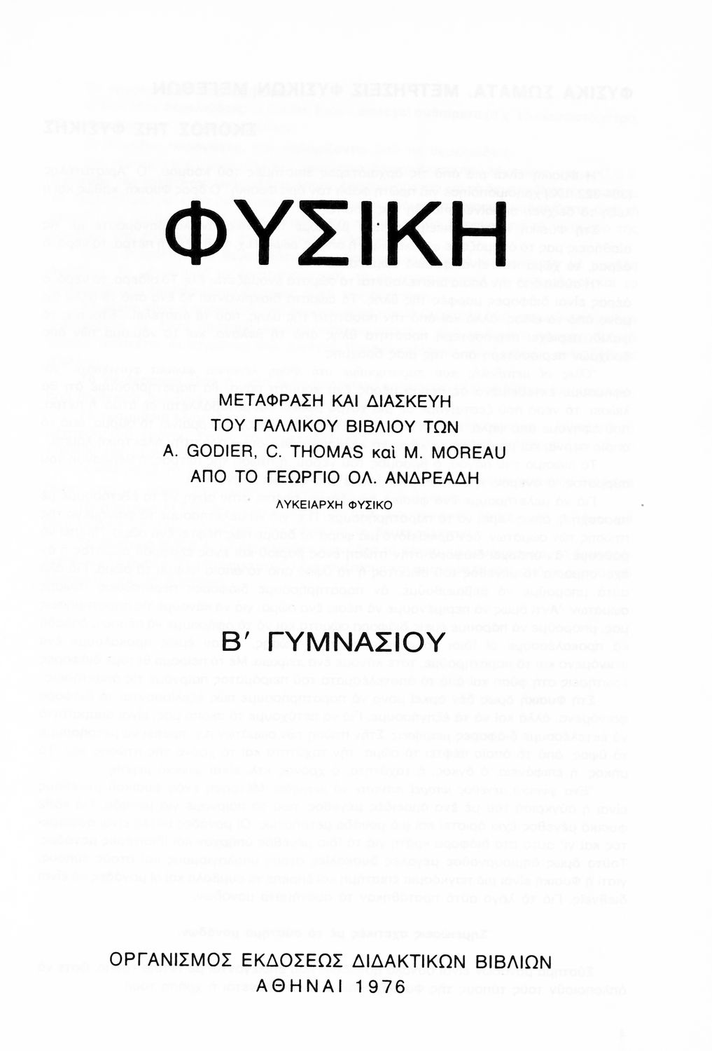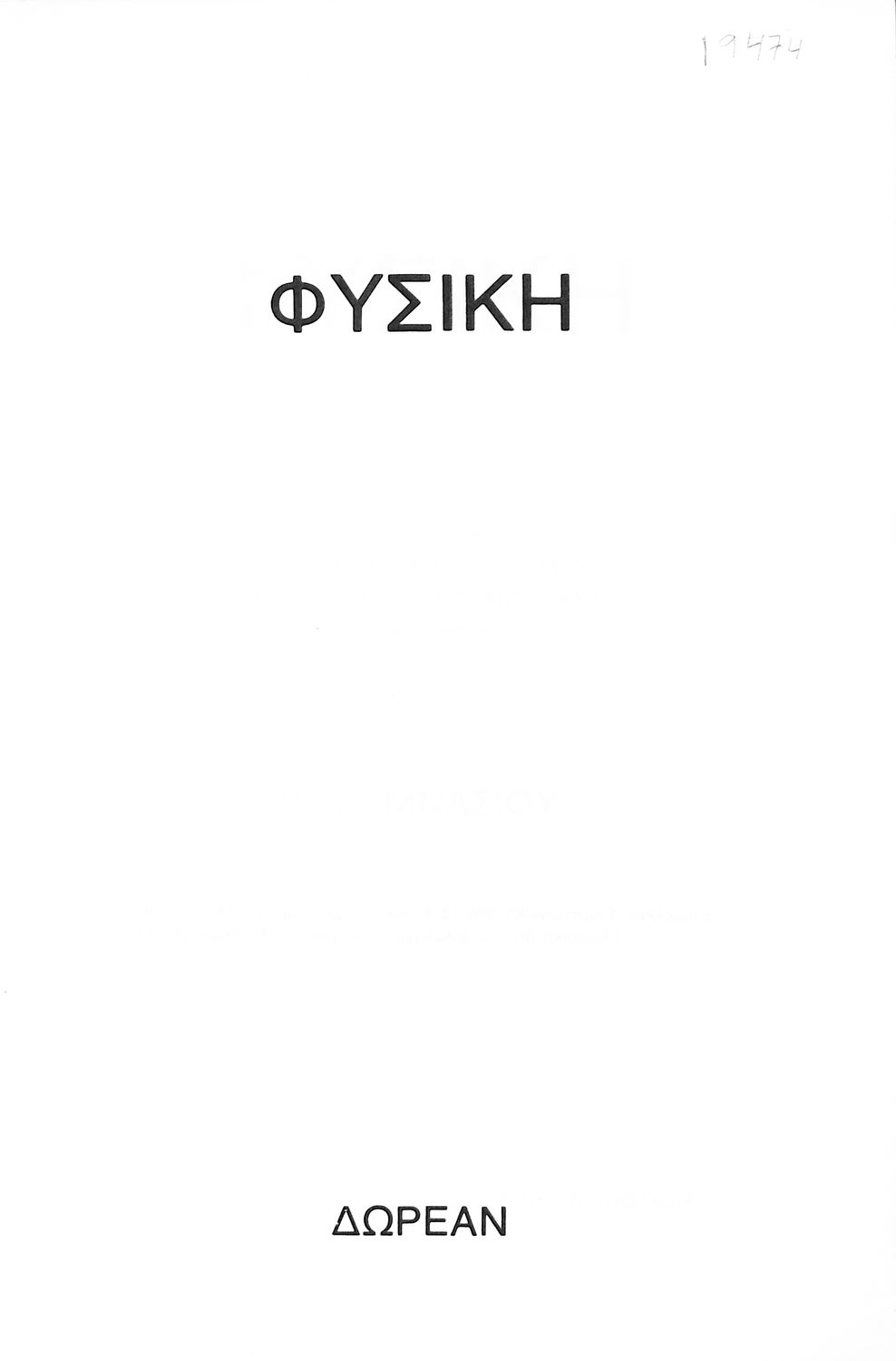 Κωδικός αναγνώρισης: 01-19474 Τίτλος: Φυσική Β΄ Γυμνασίου Συγγραφέας: A. Godier, C. Thomas, M. Moreau, Γεώργιος Ανδρεάδης (μετάφραση) Μέγεθος και υπόστρωμα: Σχολικό εγχειρίδιο, μαλακό εξώφυλλο, 136 σελίδες. Εικόνες, σκίτσα, έγχρωμα. |