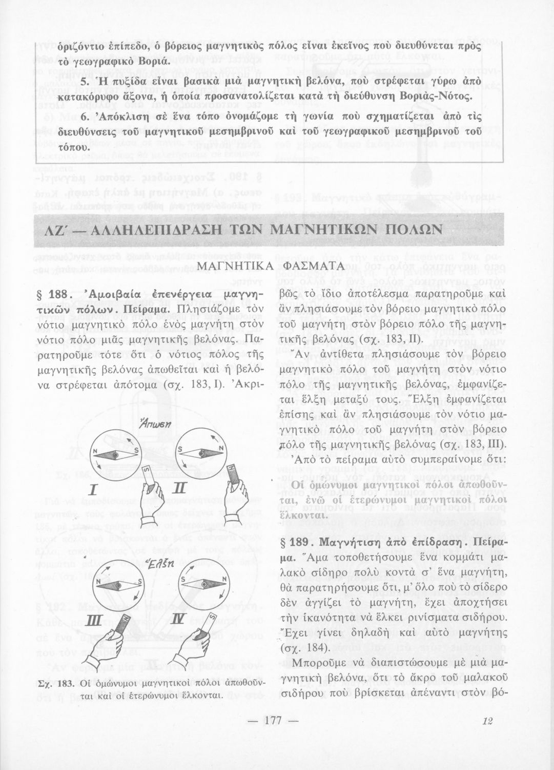 Σχολικό εγχειρίδιο Φυσικής Πειραματικής Ε΄ και ΣΤ΄ Γυμνασίου που εστιάζει στα φυσικά φαινόμενα της οπτικής, του μαγνητισμού, του ηλεκτρισμού, και της πυρηνικής φυσικής. Φέρει το σύμβολο της δικτατορίας.