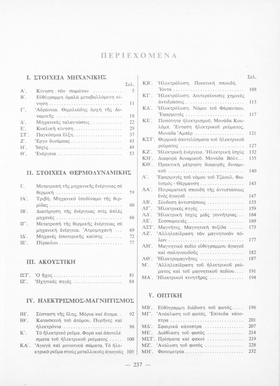 Σχολικό εγχειρίδιο της Ε΄ και ΣΤ΄ Τάξης των Δημοτικών Σχολείων και την Α΄ Τάξη των Οκτατάξιων Γυμνασίων, Προγυμνασίων και Αστικών Σχολείων για το μάθημα της Φυσικής. Παρέχει βασικές γνώσεις της φυσικής ...
