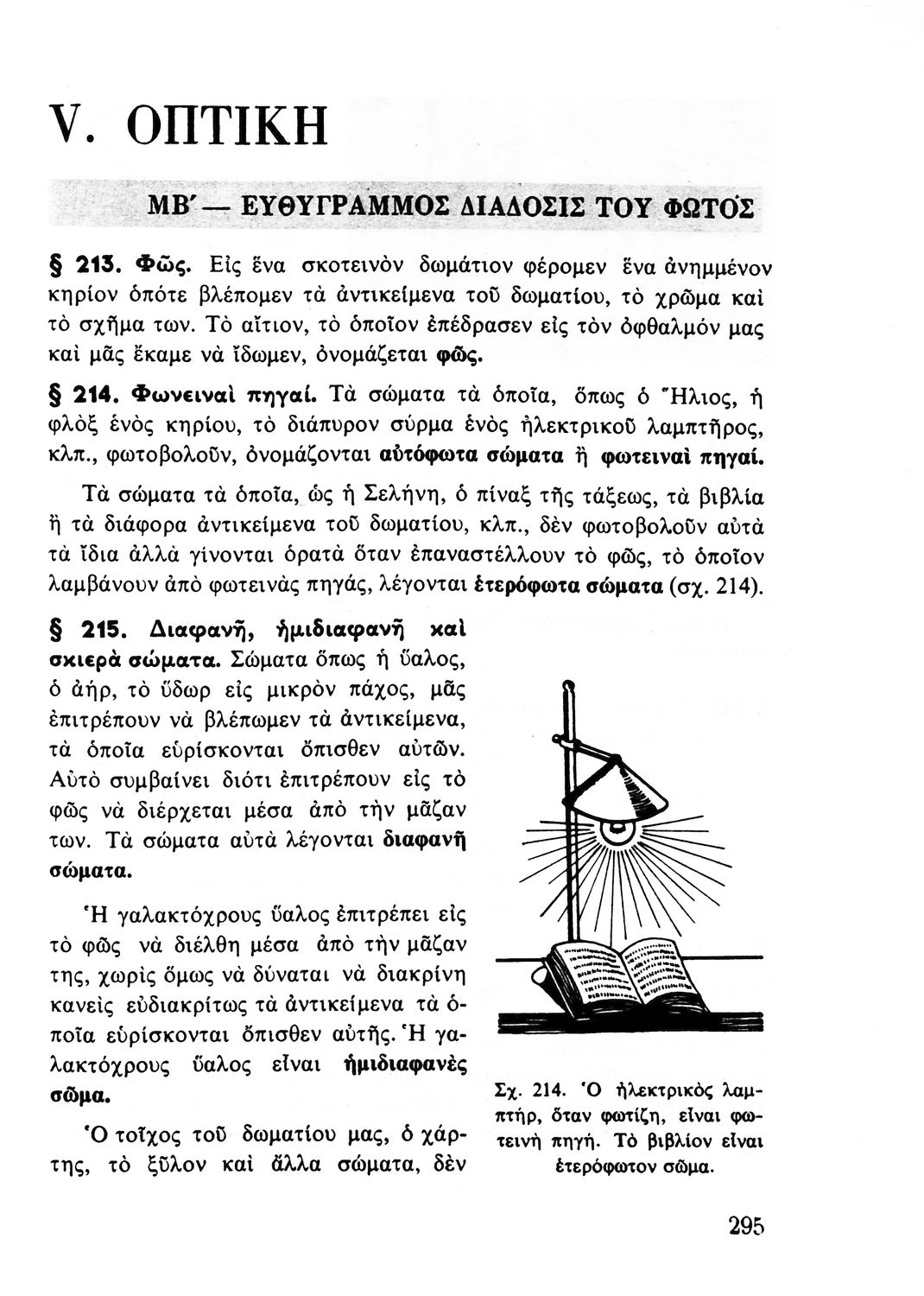 Σχολικό εγχειρίδιο της Ε΄ και ΣΤ΄ Τάξης των Δημοτικών Σχολείων και την Α΄ Τάξη των Οκτατάξιων Γυμνασίων, Προγυμνασίων και Αστικών Σχολείων για το μάθημα της Φυσικής. Παρέχει βασικές γνώσεις της φυσικής ...