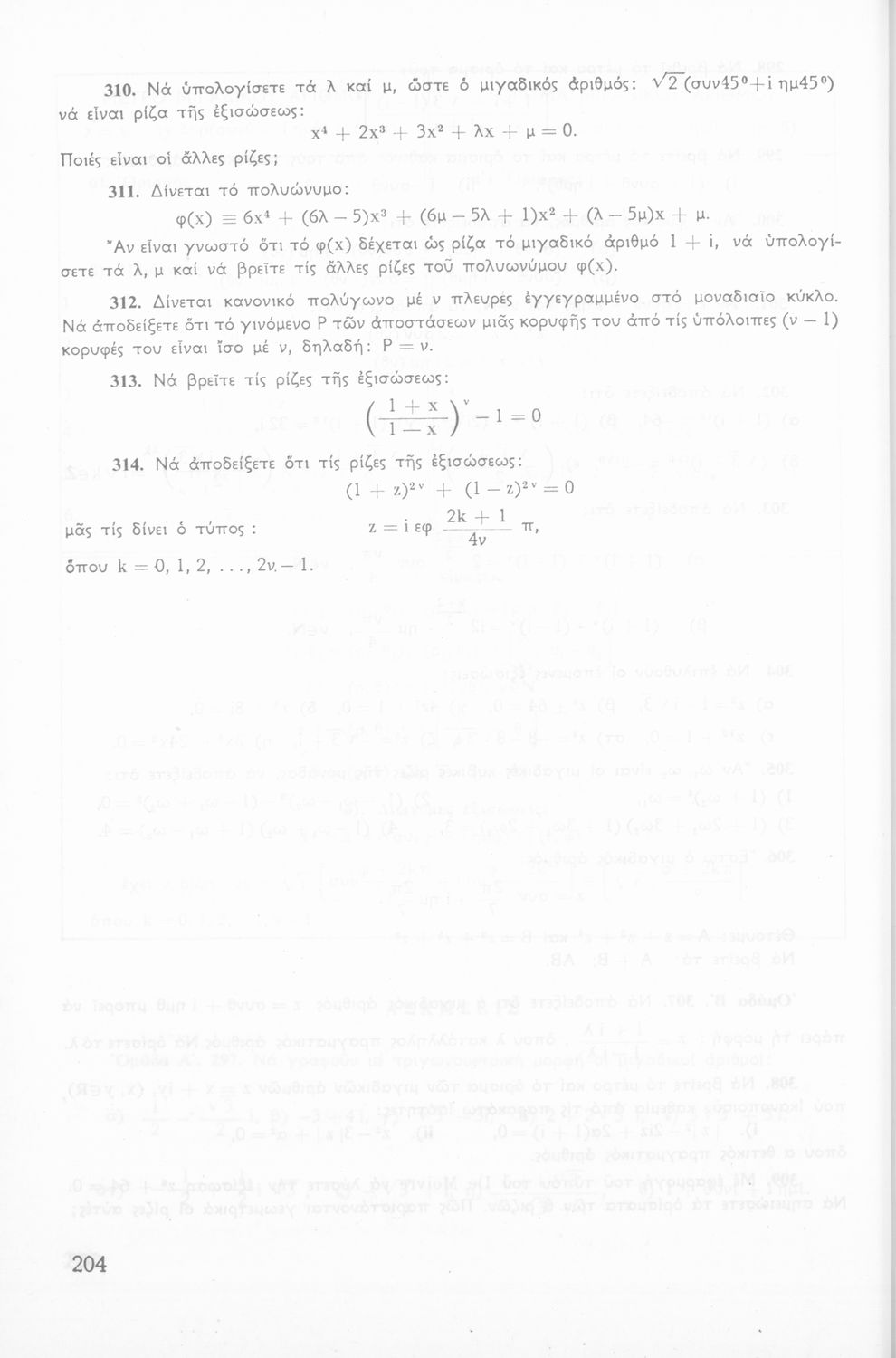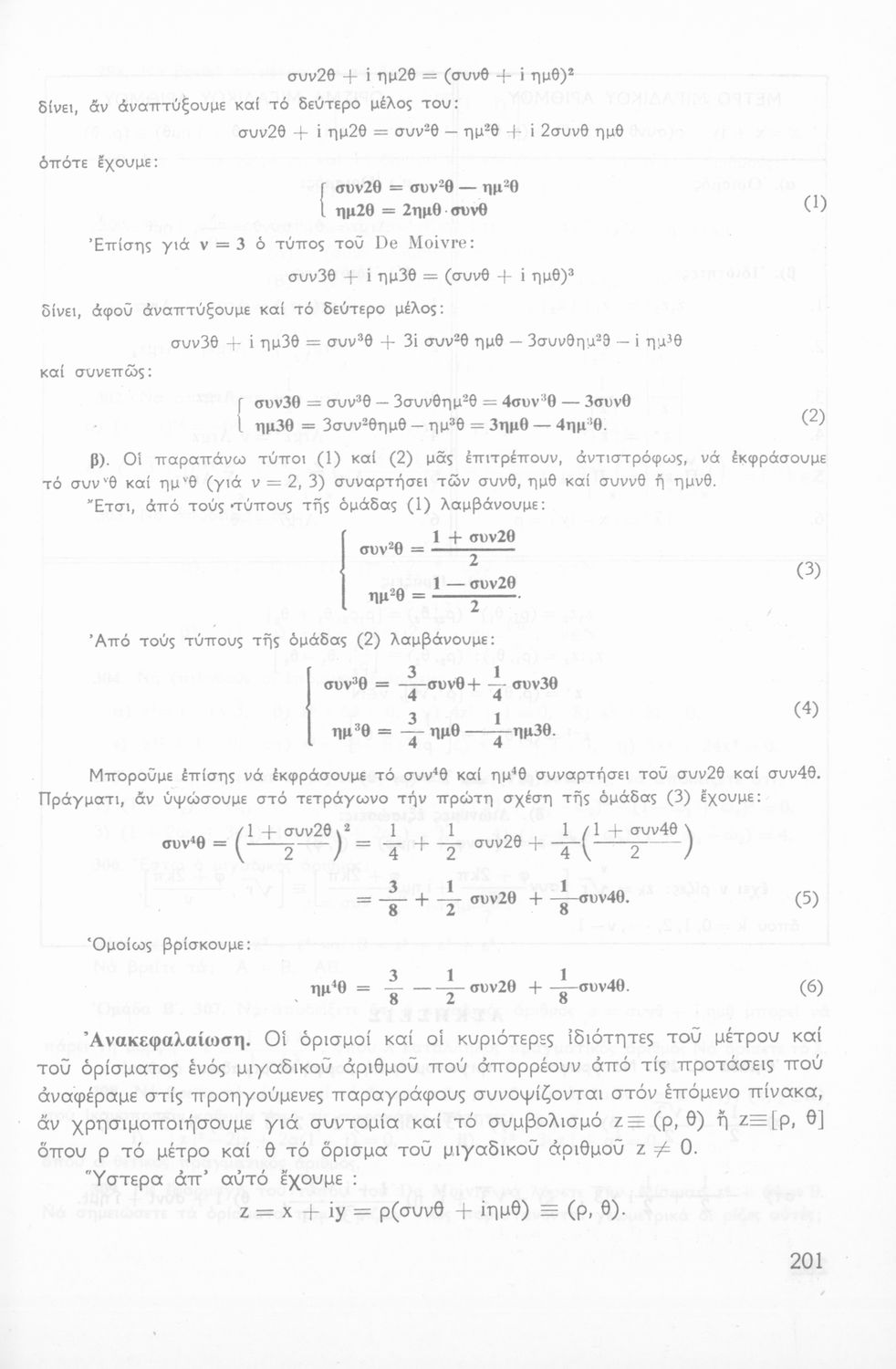 Σχολικό εγχειρίδιο Άλγεβρας Β΄ Λυκείου χωρισμένο σε αξιώματα, θεωρήματα, παρατηρήσεις και ασκήσεις. Περιέχει στοιχεία Διανυσματικού Λογισμού που έχουν συγγραφεί από τον Ιωάννη Φ. Πανάκη. Το εγχειρίδιο μεταγλωττίστηκε στη δημοτική από τον συγγραφέα και τους Ε. Πλατή, Ιορδ. Παπαδόπουλο και Ε. Θεοδωρακόπουλο.