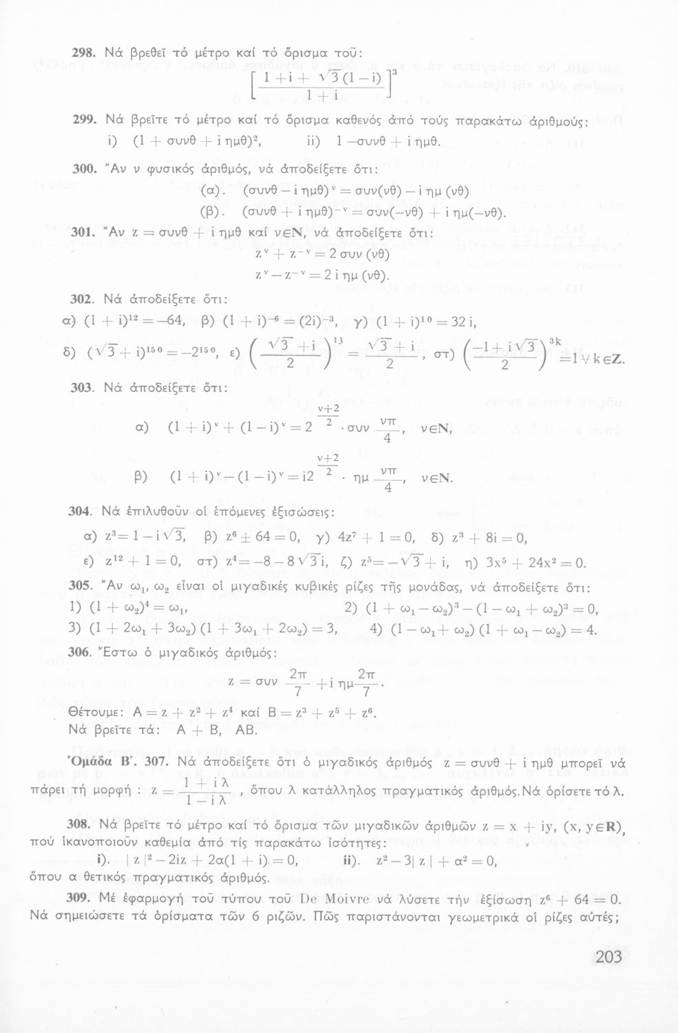 Σχολικό εγχειρίδιο Μαθηματικών Β΄ Λυκείου που περιλαμβάνει Άλγεβρα και Τριγωνομετρία και είναι χωρισμένο σε θεωρήματα, παρατηρήσεις, παραδείγματα και ασκήσεις.