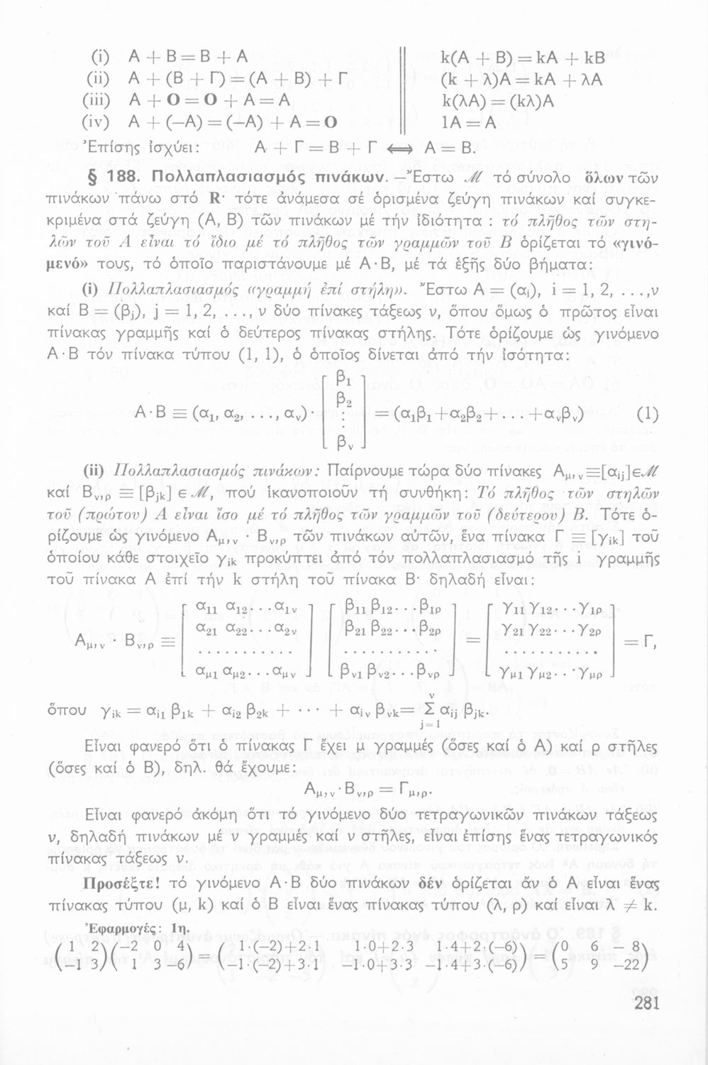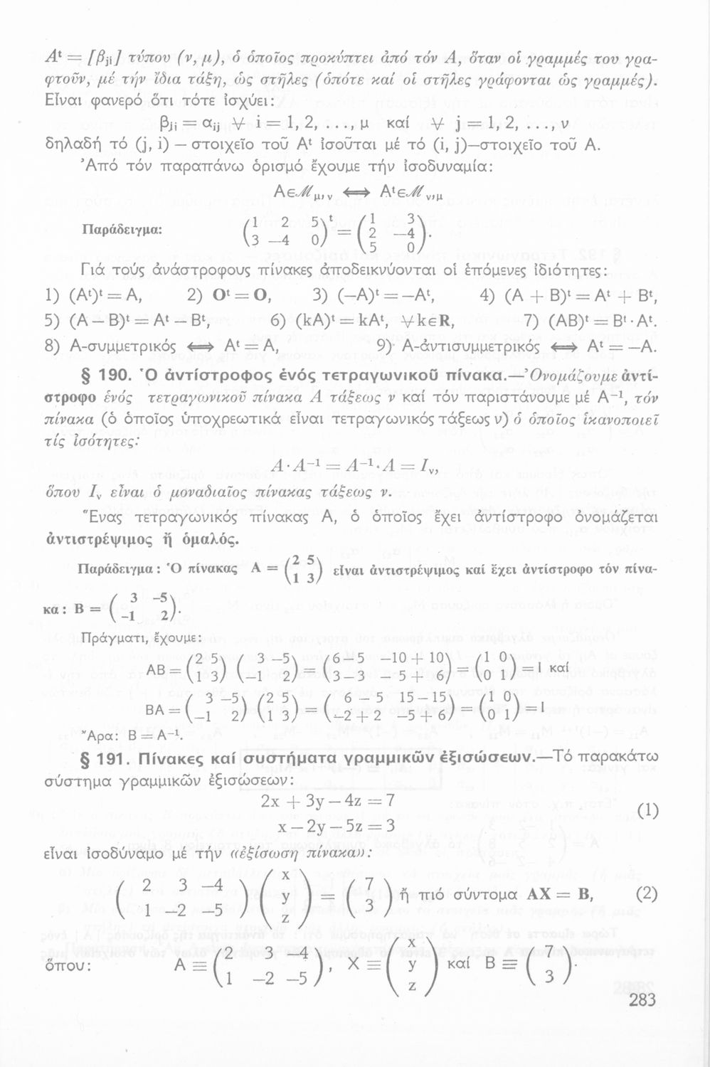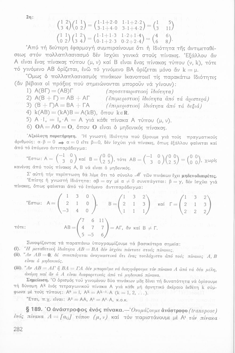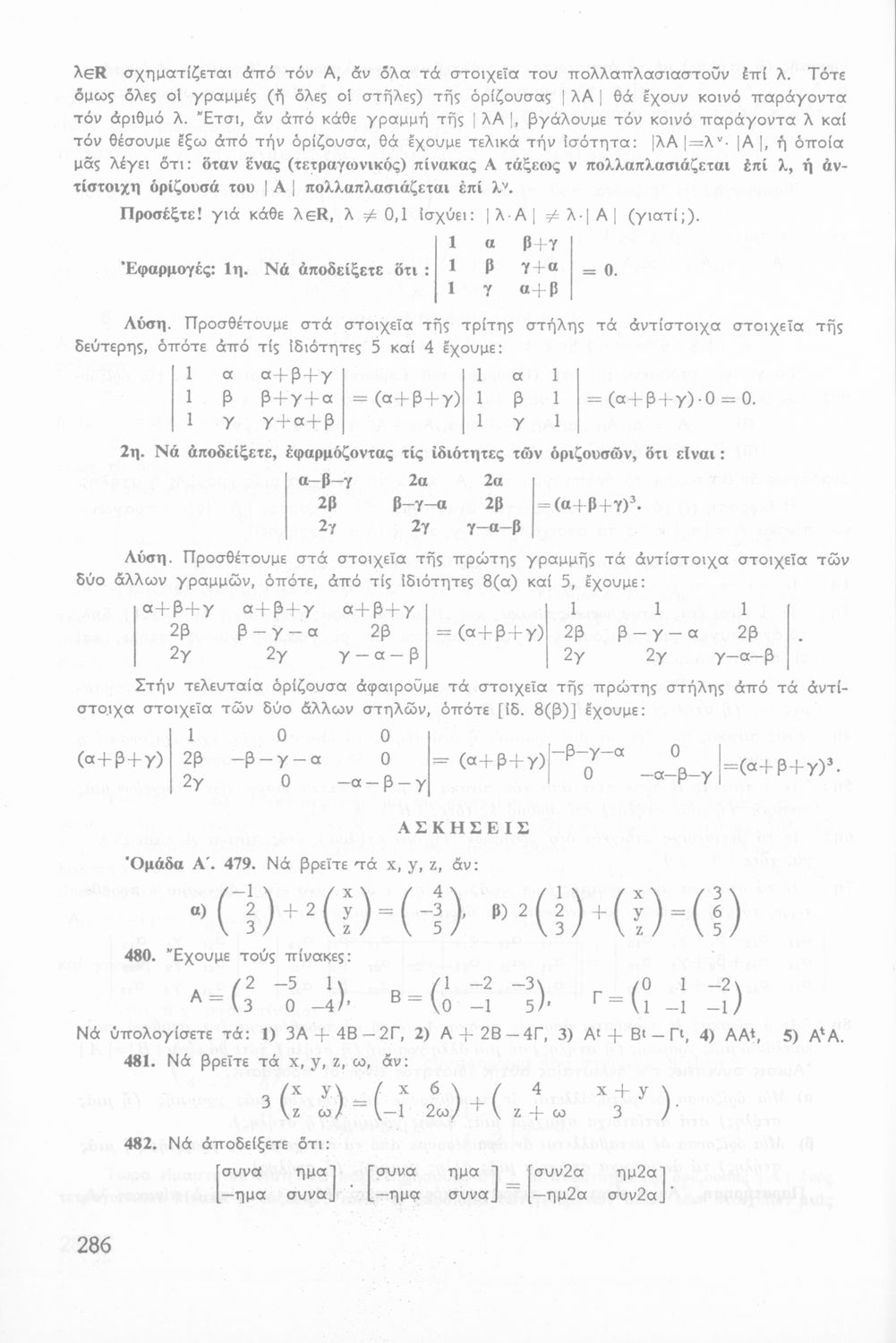 Σχολικό εγχειρίδιο Άλγεβρας Β΄ Λυκείου χωρισμένο σε αξιώματα, θεωρήματα, παρατηρήσεις και ασκήσεις. Περιέχει στοιχεία Διανυσματικού Λογισμού που έχουν συγγραφεί από τον Ιωάννη Φ. Πανάκη. Το εγχειρίδιο μεταγλωττίστηκε στη δημοτική από τον συγγραφέα και τους Ε. Πλατή, Ιορδ. Παπαδόπουλο και Ε. Θεοδωρακόπουλο.