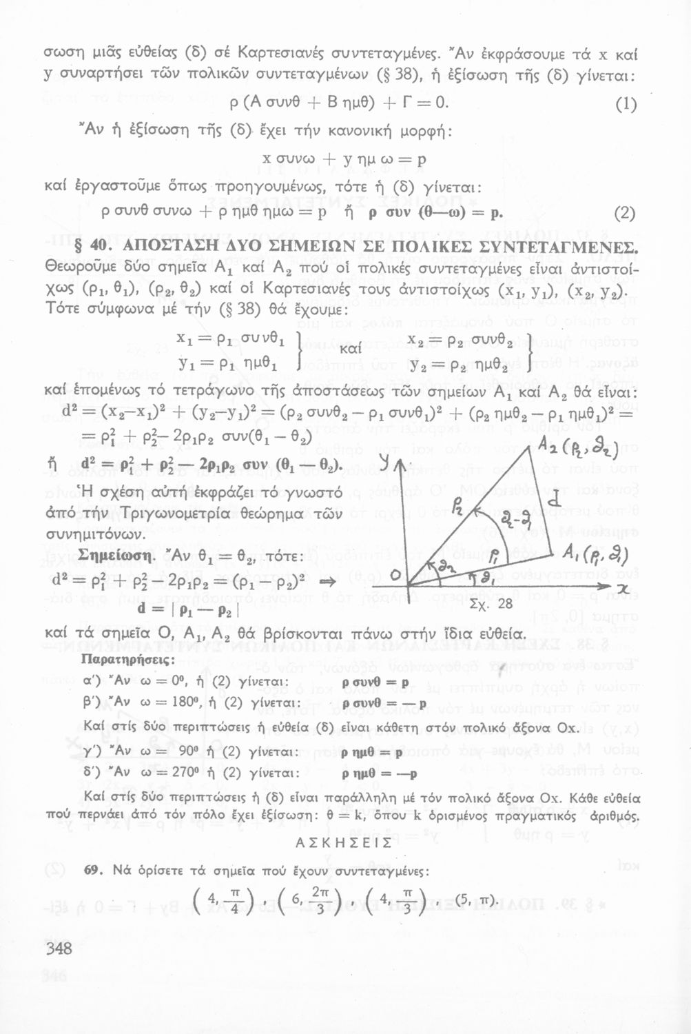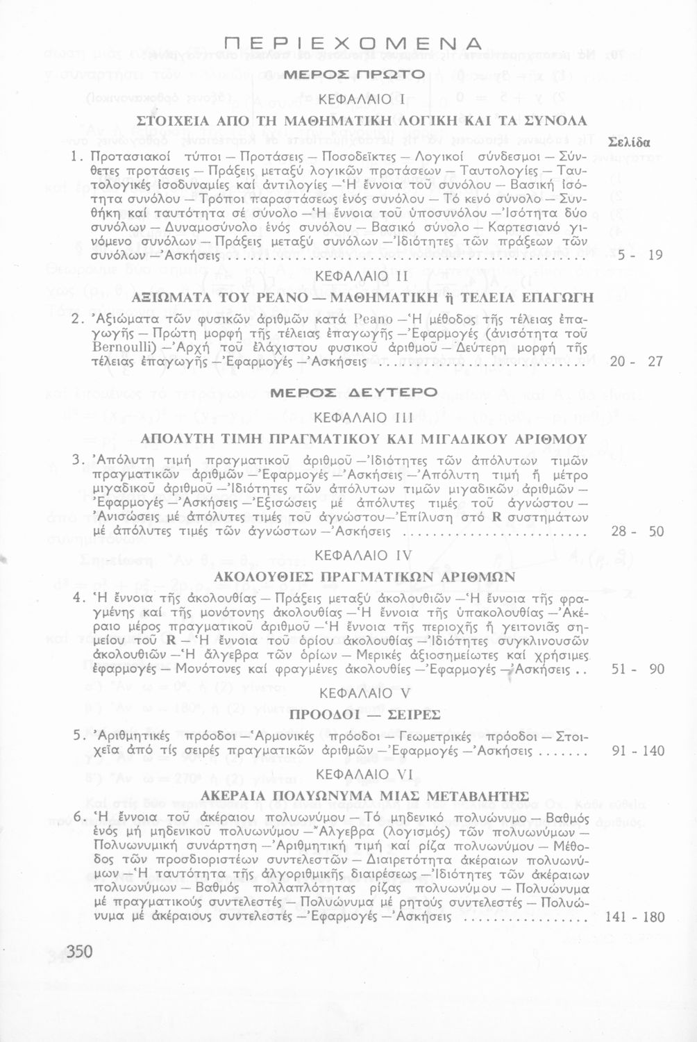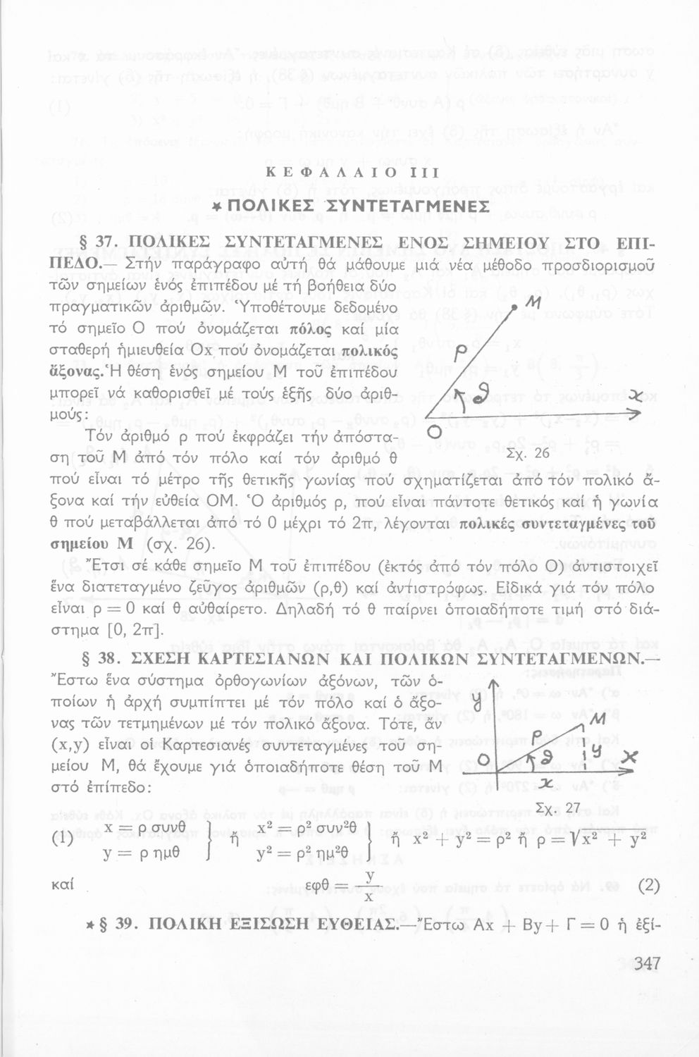 Σχολικό εγχειρίδιο Άλγεβρας Β΄ Λυκείου χωρισμένο σε αξιώματα, θεωρήματα, παρατηρήσεις και ασκήσεις. Περιέχει στοιχεία Διανυσματικού Λογισμού που έχουν συγγραφεί από τον Ιωάννη Φ. Πανάκη. Το εγχειρίδιο μεταγλωττίστηκε στη δημοτική από τον συγγραφέα και τους Ε. Πλατή, Ιορδ. Παπαδόπουλο και Ε. Θεοδωρακόπουλο.
