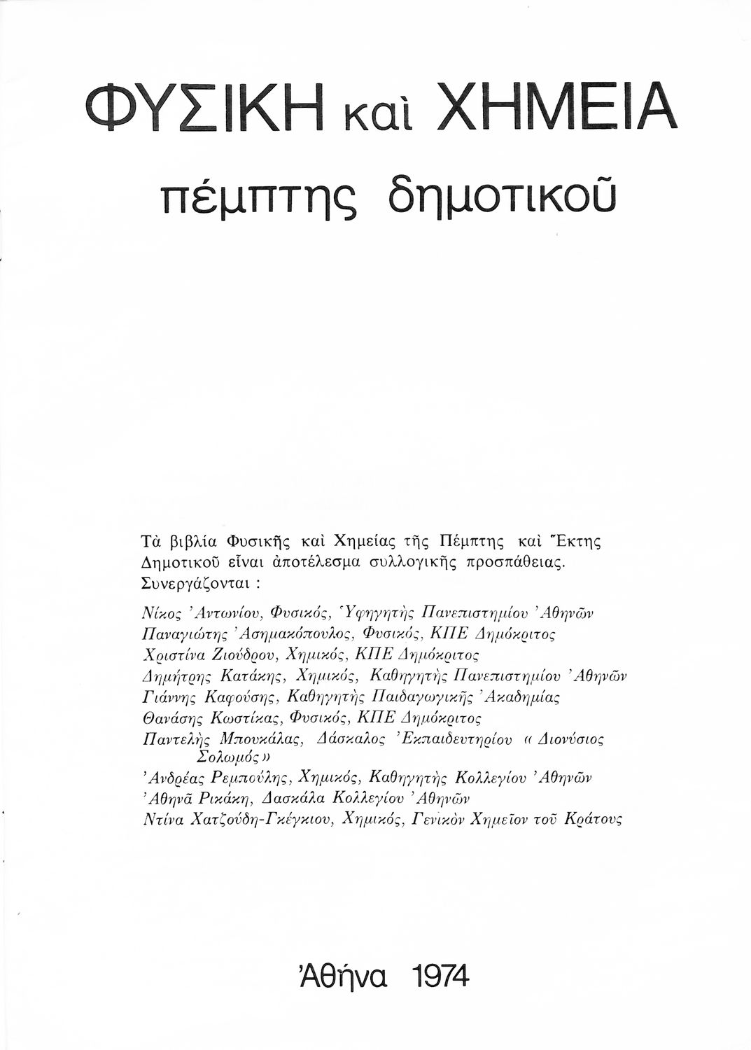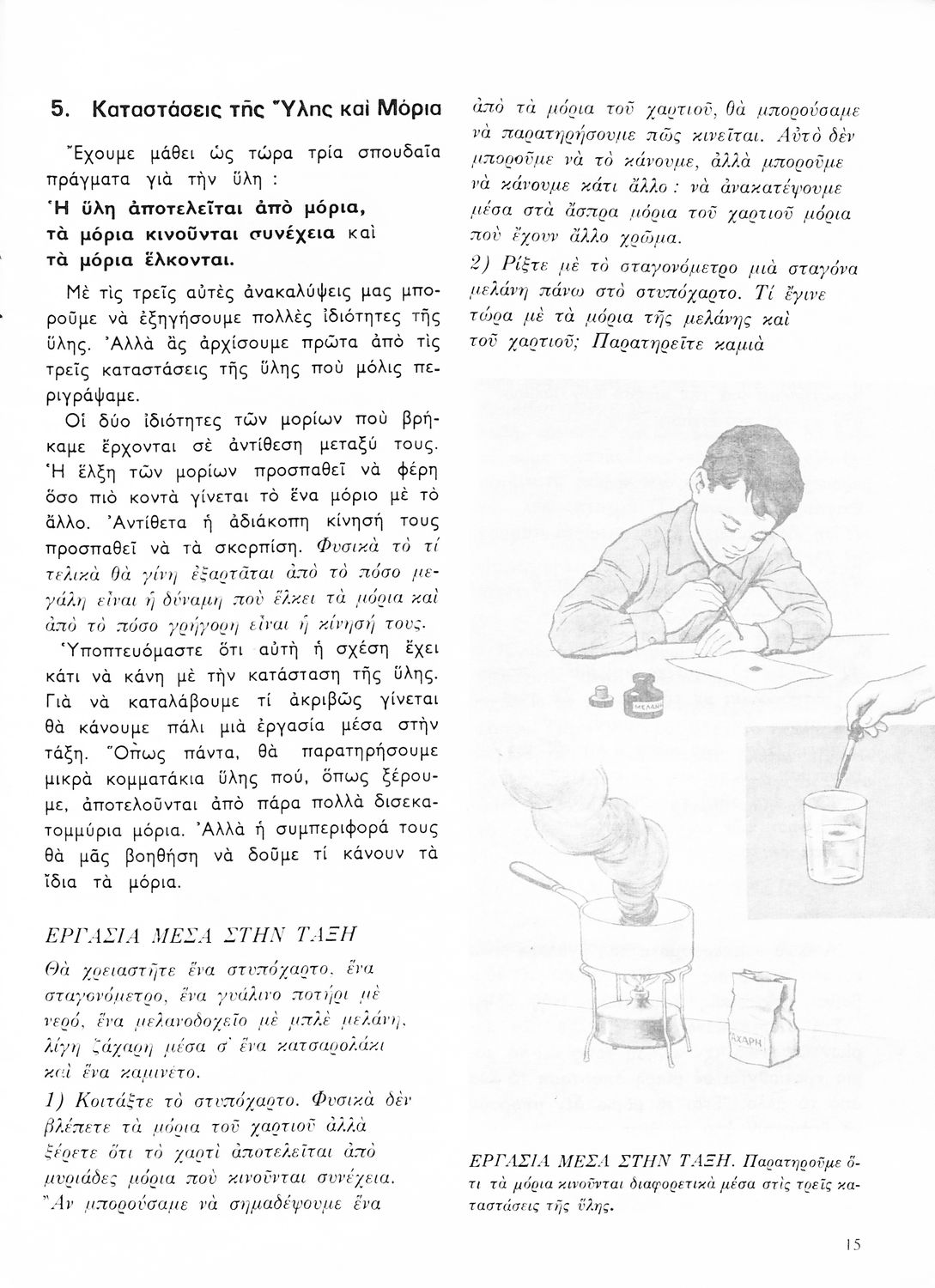 Σχολικό εγχειρίδιο Φυσικής και Χημείας Ε΄ Δημοτικού που αποτελεί μια εισαγωγή στις έννοιες της ύλης, της ενέργειας και της θερμότητας
