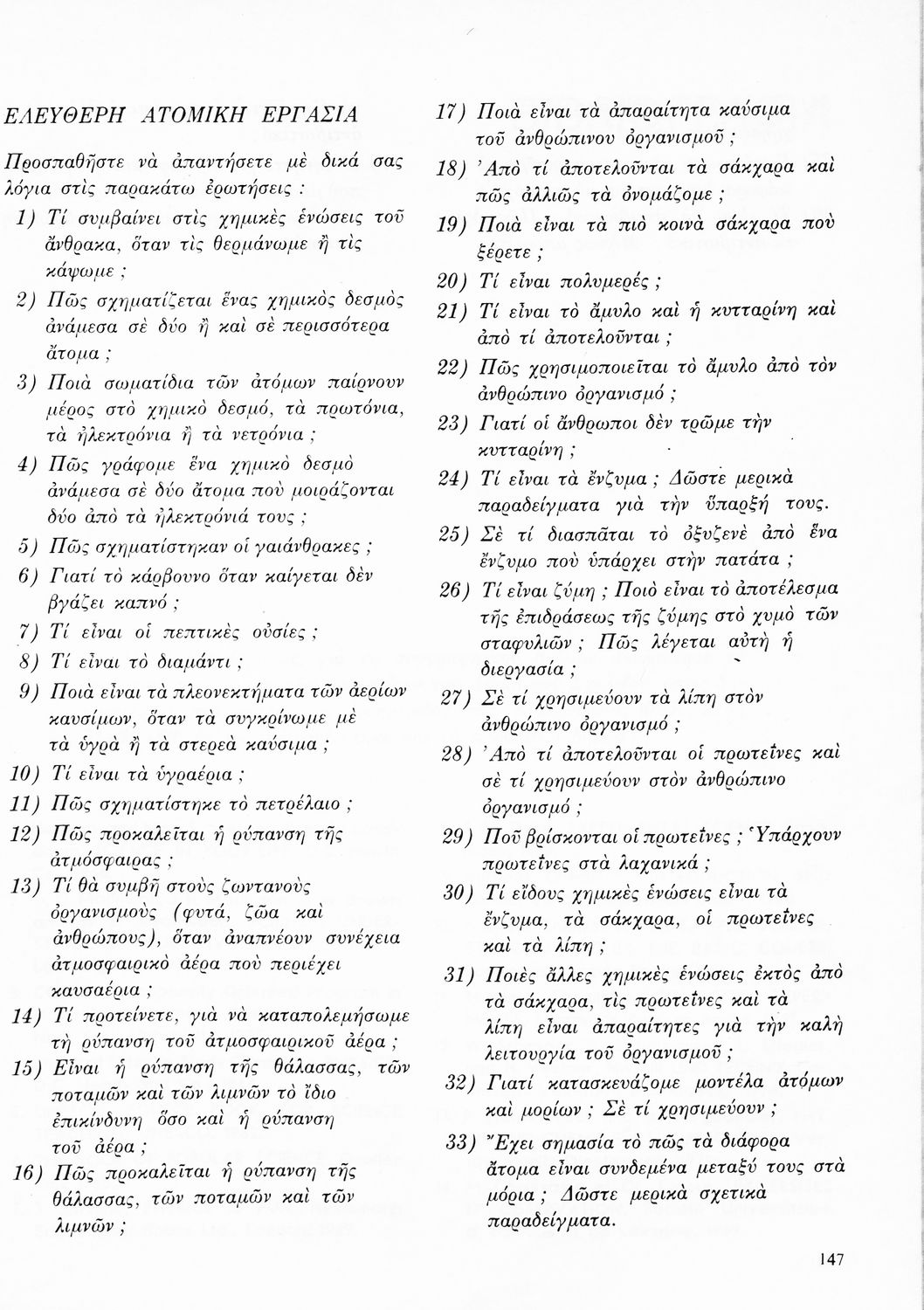 Βαθμίδα εκπαίδευσης: Πρωτοβάθμια Τάξη: ΣΤ' Δημοτικού Γλώσσα: Δημοτική Παρουσίαση περιεχομένου: Σχολικό εγχειρίδιο Φυσικής και Χημείας ΣΤ΄ Δημοτικού που εστιάζει στα φυσικά φαινόμενα της ακουστικής, οπτικής, του ηλεκτρισμού, της ατομικής φυσικής. Περιέχει και στοιχεία χημείας. |
