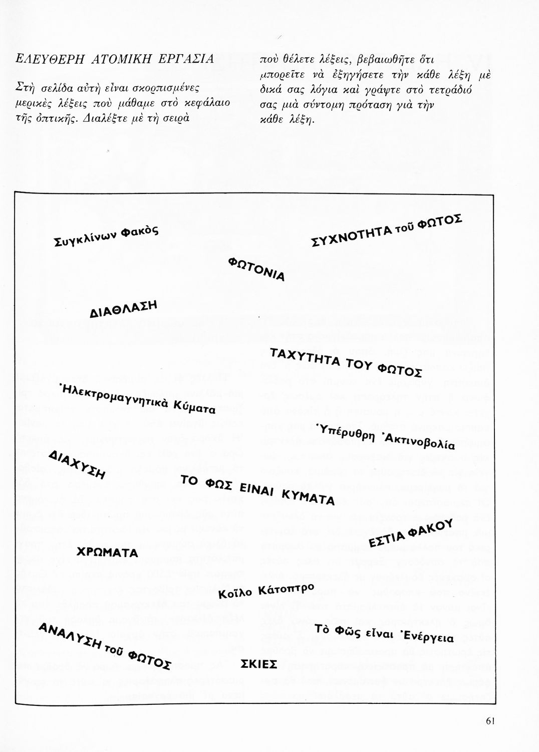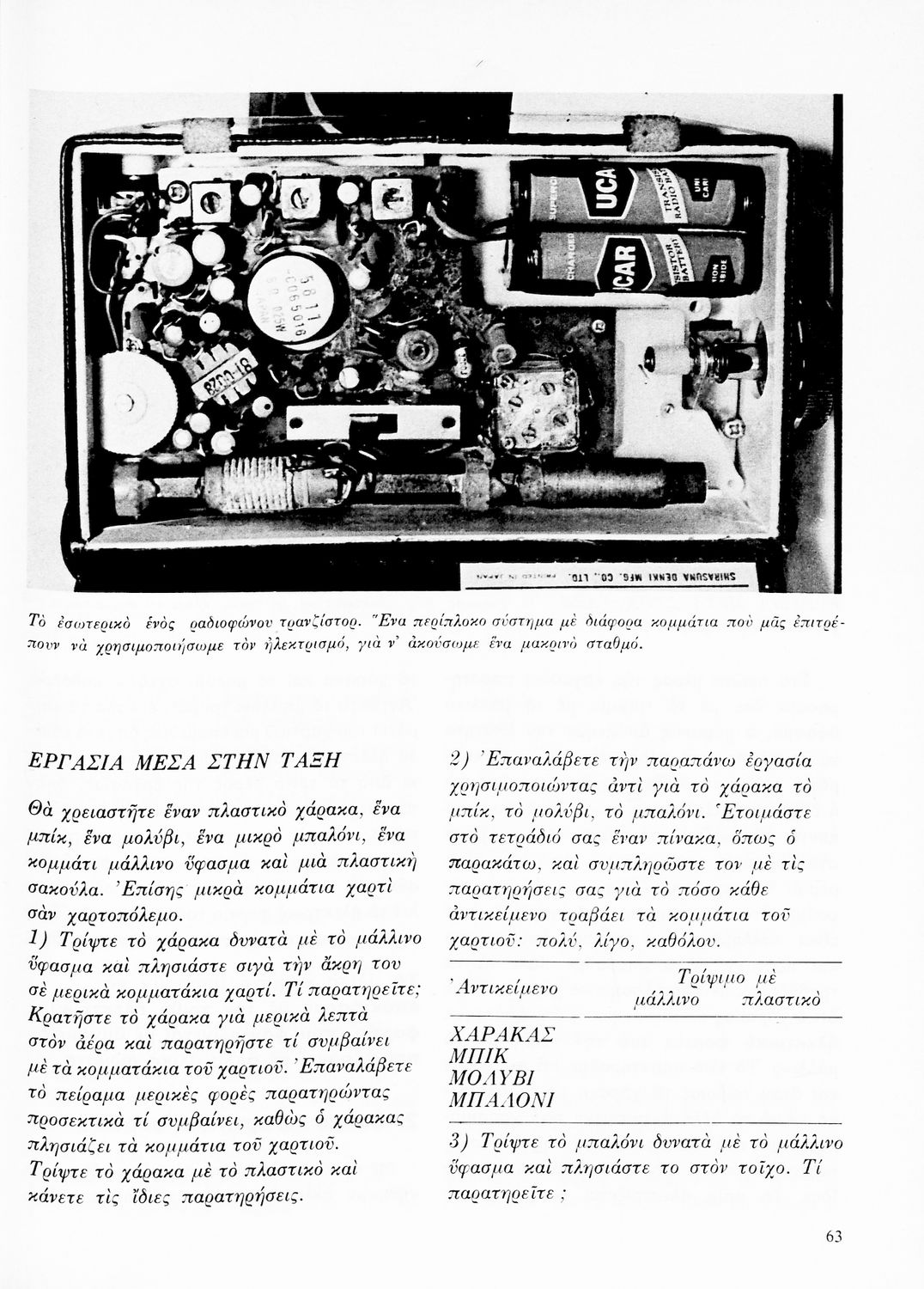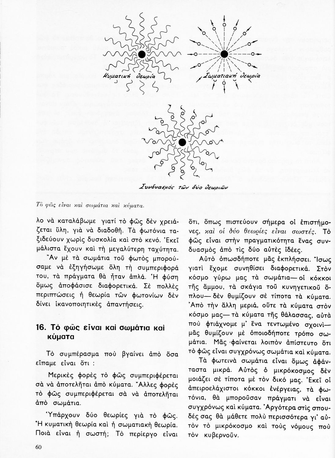 Βαθμίδα εκπαίδευσης: Πρωτοβάθμια Τάξη: ΣΤ' Δημοτικού Γλώσσα: Δημοτική Παρουσίαση περιεχομένου: Σχολικό εγχειρίδιο Φυσικής και Χημείας ΣΤ΄ Δημοτικού που εστιάζει στα φυσικά φαινόμενα της ακουστικής, οπτικής, του ηλεκτρισμού, της ατομικής φυσικής. Περιέχει και στοιχεία χημείας. |