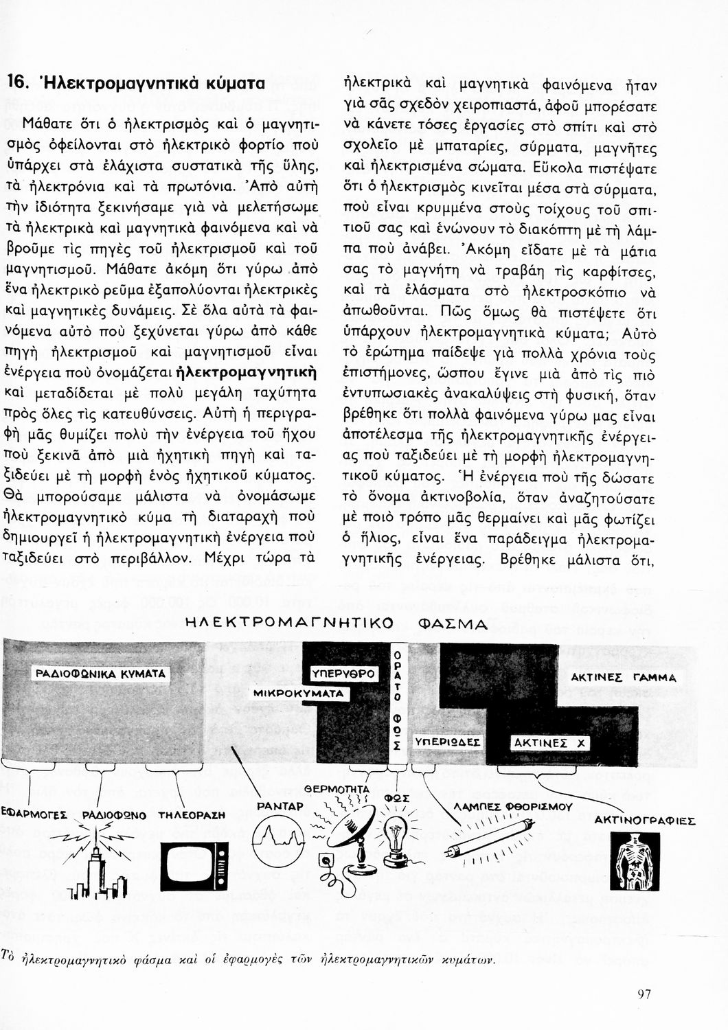 Σχολικό εγχειρίδιο Φυσικής Πειραματικής και Χημείας ΣΤ΄ Δημοτικού που εστιάζει στα φυσικά φαινόμενα της ακουστικής, οπτικής, του ηλεκτρισμού και της ατομικής φυσικής. Περιέχει και στοιχεία χημείας. ...
