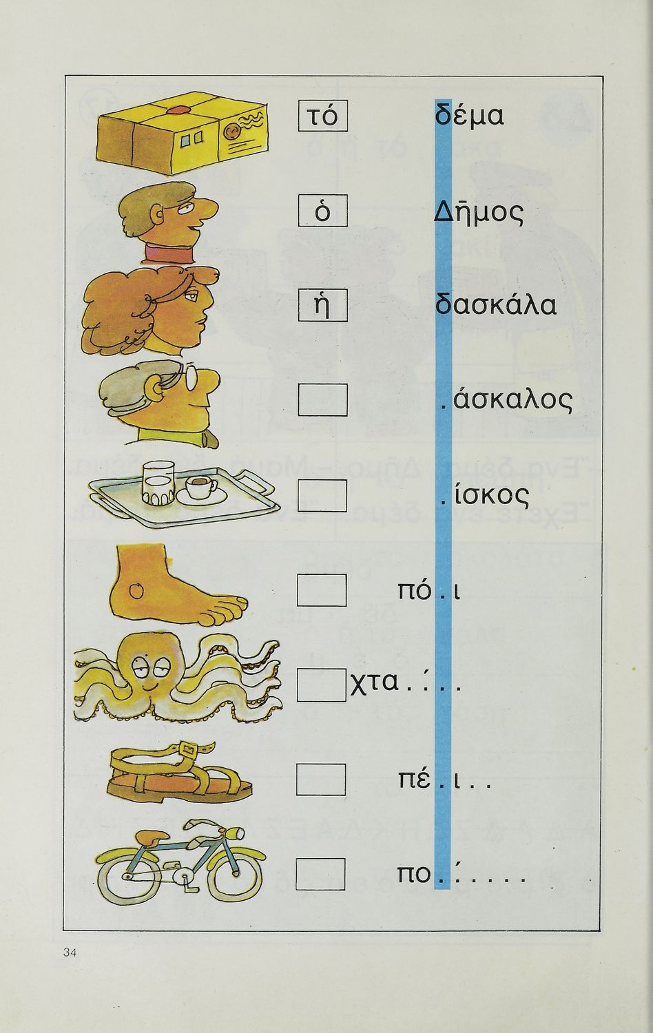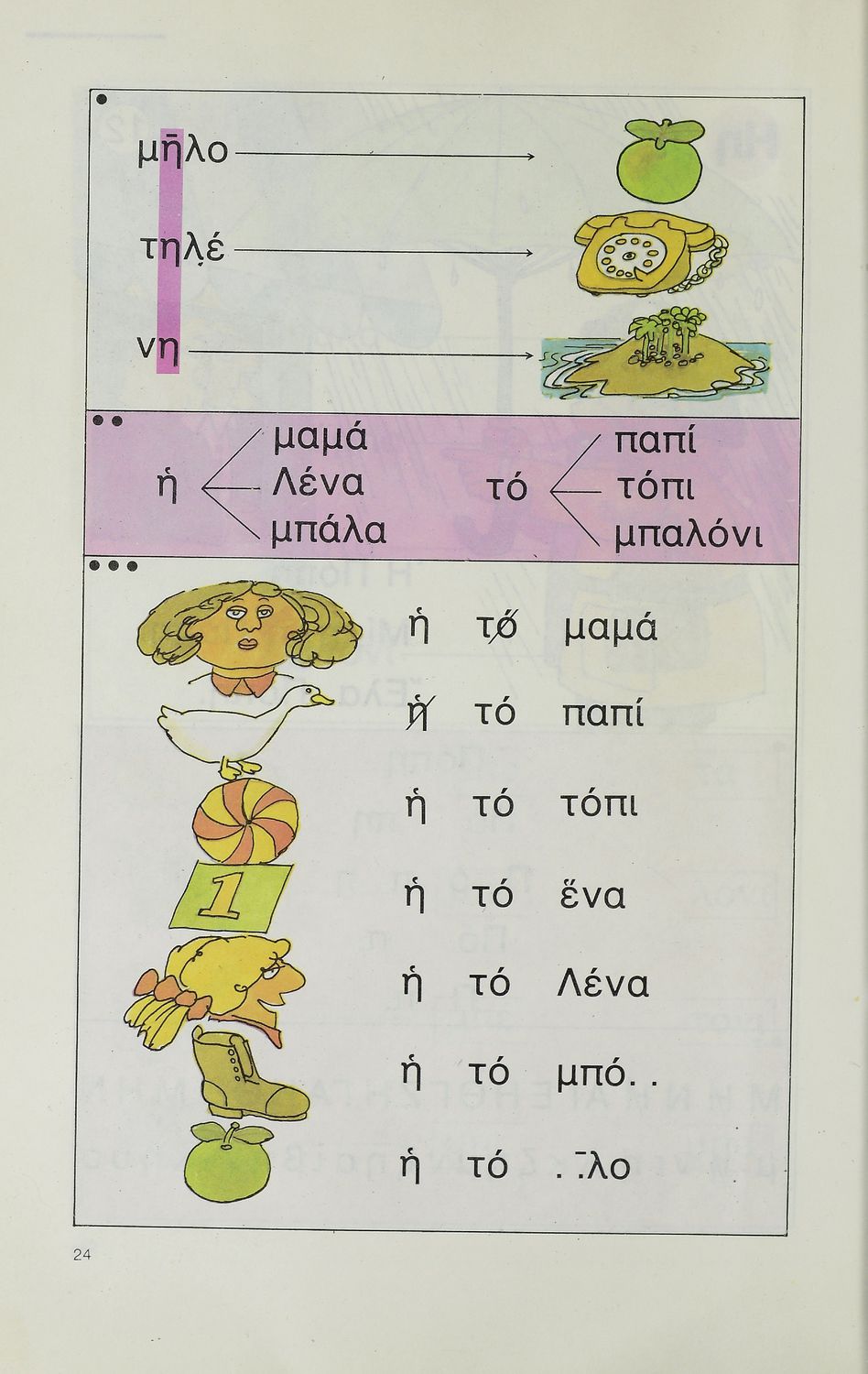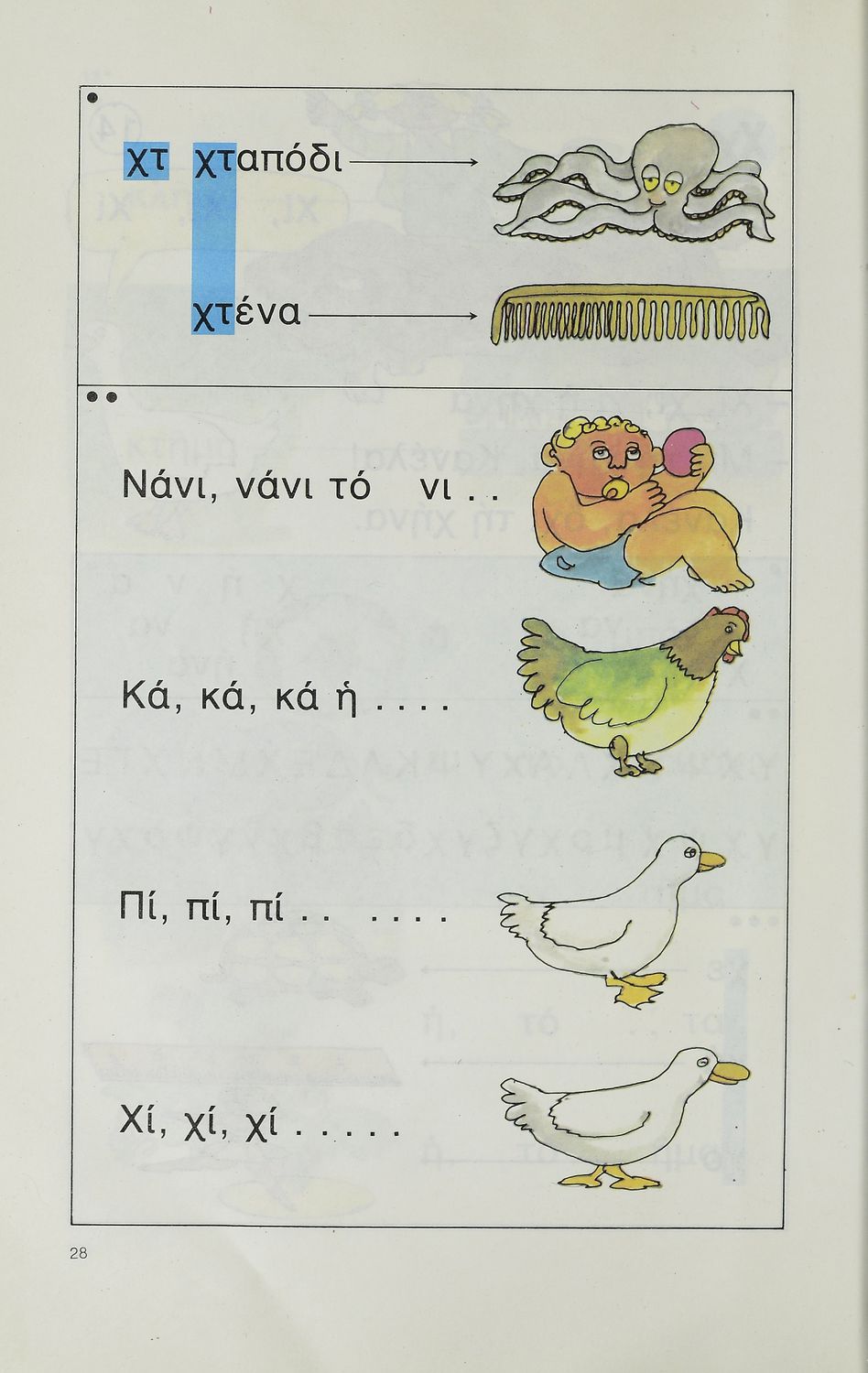 Αναγνωστικό Δημοτικού το οποίο περιέχει γράμματα, λέξεις και συλλαβές για την εκμάθηση της ελληνικής γλώσσας.