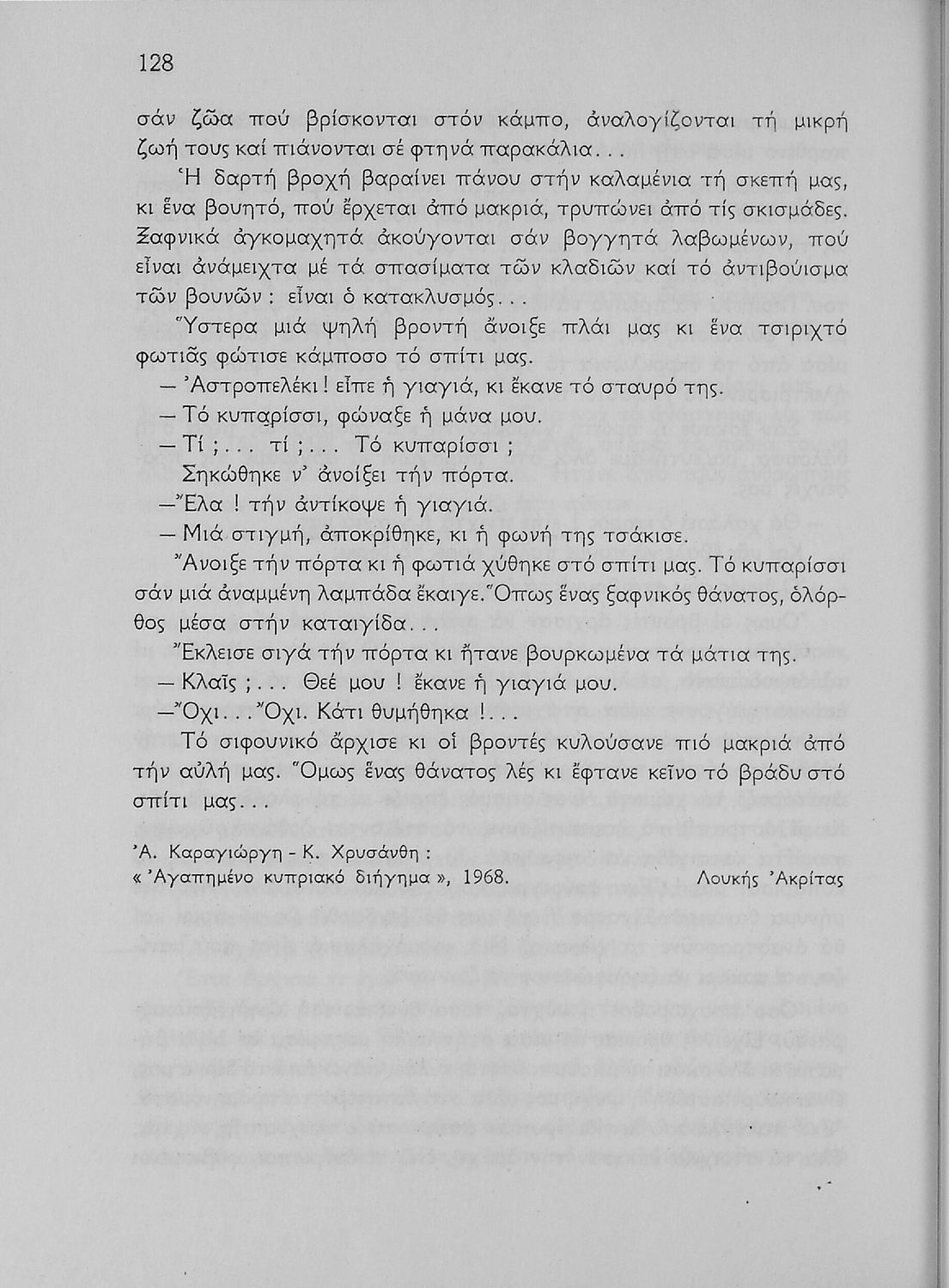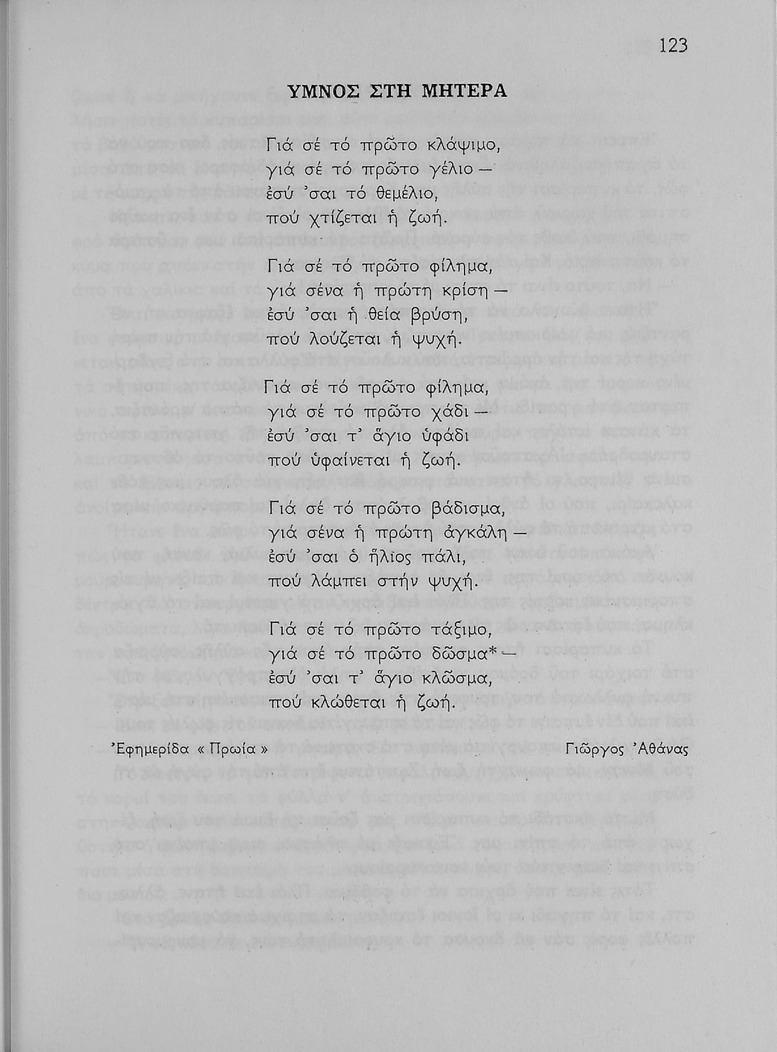 Σχολικό εγχειρίδιο Νέων Ελληνικών Γ΄ Γυμνασίου και Α' Αστικού Σχολείου που περιέχει πεζά και ποιήματα Ελλήνων συγγραφέων εμπνευσμένα από τη θρησκευτική και κοινωνική ζωή, την ελληνική μυθολογία, την αρχαία και