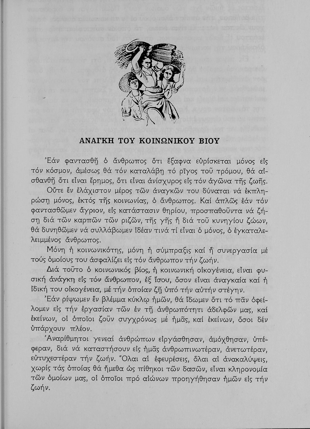 Σχολικό εγχειρίδιο Νέων Ελληνικών Γ΄ Γυμνασίου και Α' Αστικού Σχολείου που περιέχει πεζά και ποιήματα Ελλήνων συγγραφέων εμπνευσμένα από τη θρησκευτική και κοινωνική ζωή, την ελληνική μυθολογία, την αρχαία και