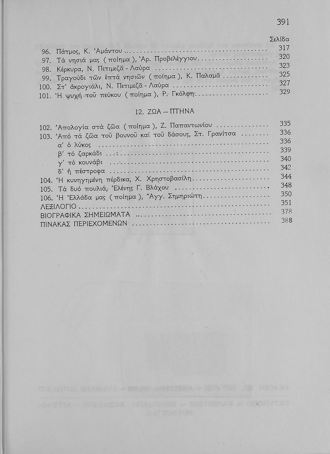Σχολικό εγχειρίδιο Νέων Ελληνικών για τη Γ΄ Γυμνασίου που περιέχει κείμενα και ποιήματα Ελλήνων λογοτεχνών και ποιητών. Η θεματολογία είναι από την θρησκευτική, εθνική οικογενειακή και κοινωνική ζωή καθώς και από την ελληνική φύση. Στο τέλος υπάρχει ερμηνευτικό λεξικό και οι βιογραφίες των συγγραφέων.