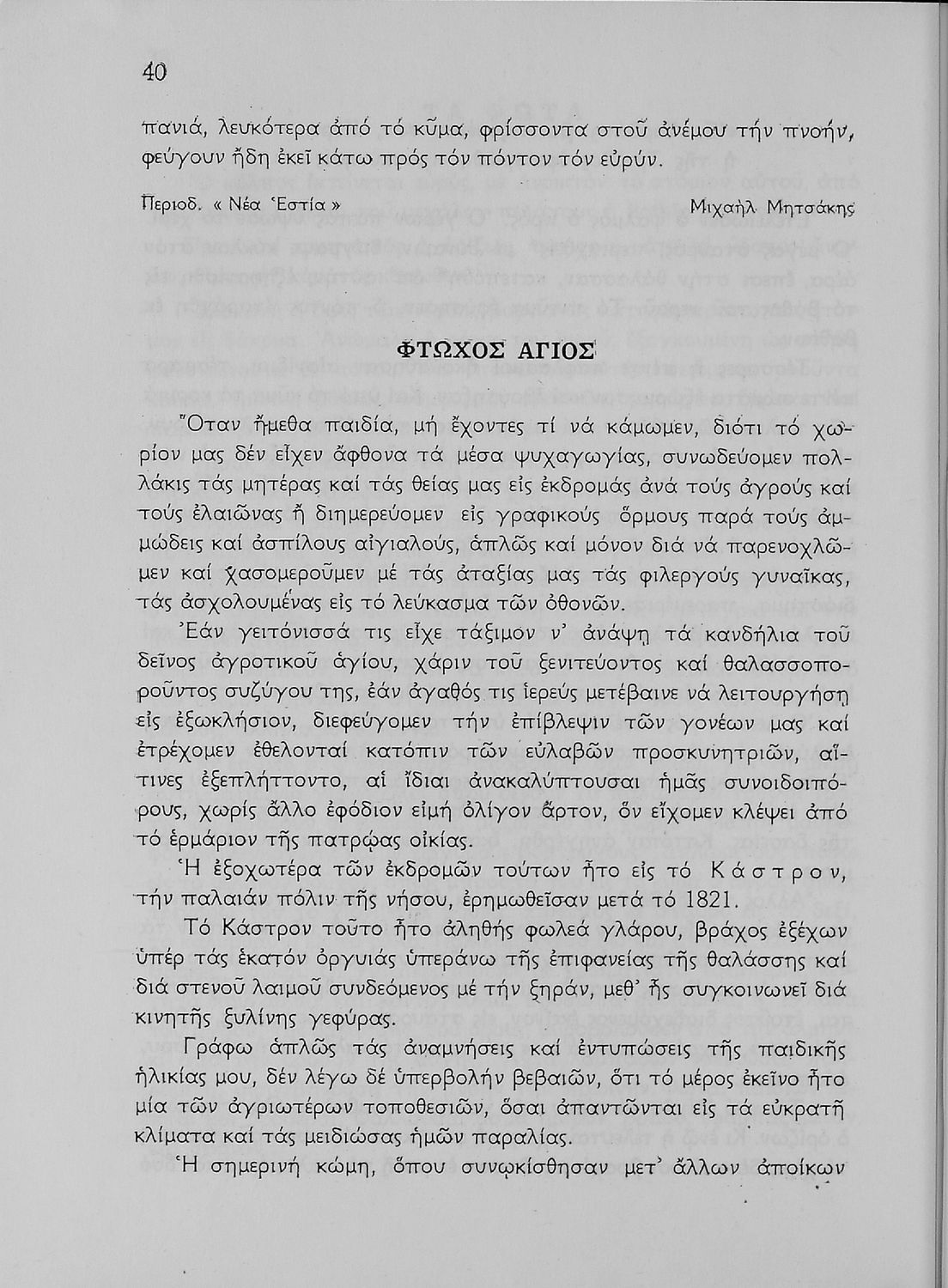 Σχολικό εγχειρίδιο Νέων Ελληνικών Γ΄ Γυμνασίου και Α' Αστικού Σχολείου που περιέχει πεζά και ποιήματα Ελλήνων συγγραφέων εμπνευσμένα από τη θρησκευτική και κοινωνική ζωή, την ελληνική μυθολογία, την αρχαία και