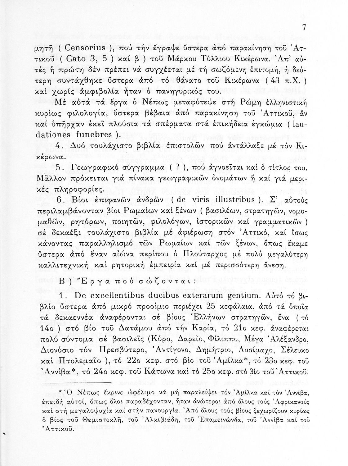 Σχολικό εγχειρίδιο Λατινικών Β΄ Λυκείου που περιέχει σύντομο βιογραφικό σημείωμα του Νέπωτα, αποσπάσματα από τα έργα Αμίλκας, Αννίβας, Κάτων και Αττικός, ιστορικό και γεωγραφικό πίνακα και λεξιλόγιο. Ο συγγραφέας ήταν ακαδημαϊκός και ομότιμος καθηγητής της Λατινικής Φιλολογίας στο Πανεπιστήμιο Αθηνών.