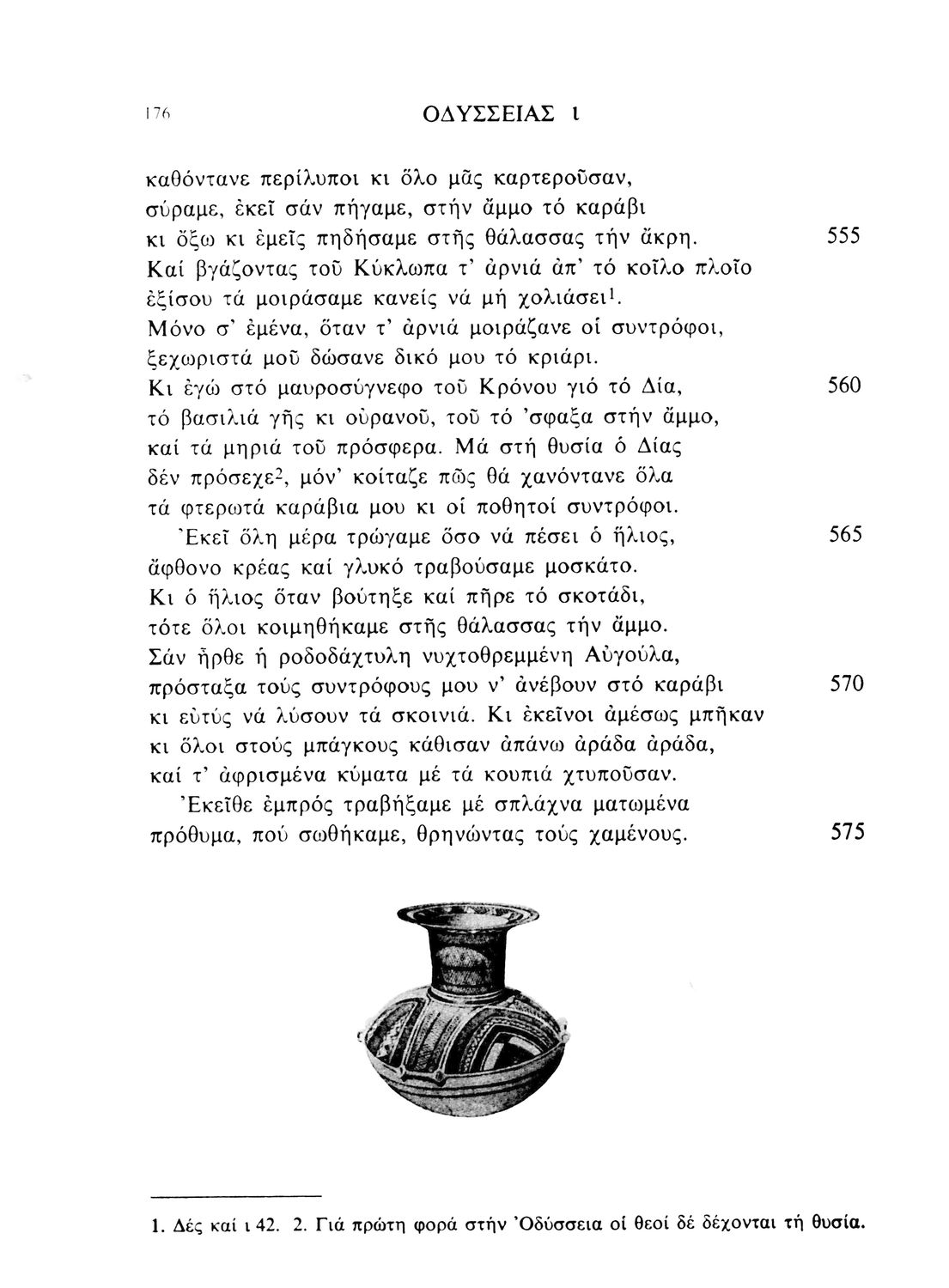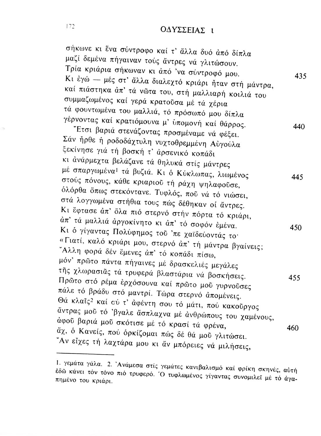 Σχολικό εγχειρίδιο Αρχαίων Ελληνικών Γυμνασίου που περιλαμβάνει μετάφραση της Οδύσσειας και λεξιλόγιο.