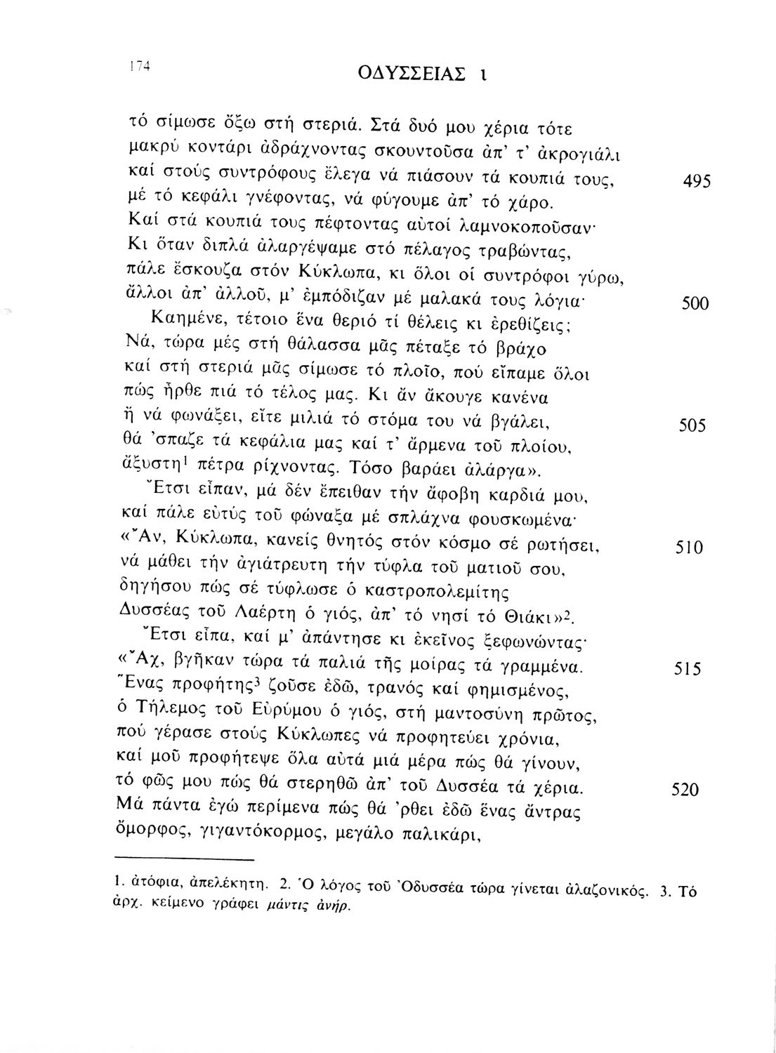 Σχολικό εγχειρίδιο του Γυμνασίου για το μάθημα των Αρχαίων Ελληνικών. Πρόκειται για το κείμενο της Οδύσσειας μεταφρασμένο στο τέλος περιλαμβάνει λεξιλόγιο.