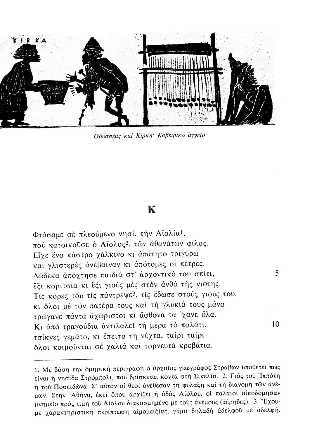 Παιδαγωγικό βοήθημα Αρχαίων Ελληνικών που περιλαμβάνει μετάφραση της Ομήρου Οδύσσειας στη νέα ελληνική, εισαγωγή στην επική ποίηση και στην Οδύσσεια, περιλήψεις και σημειώσεις.