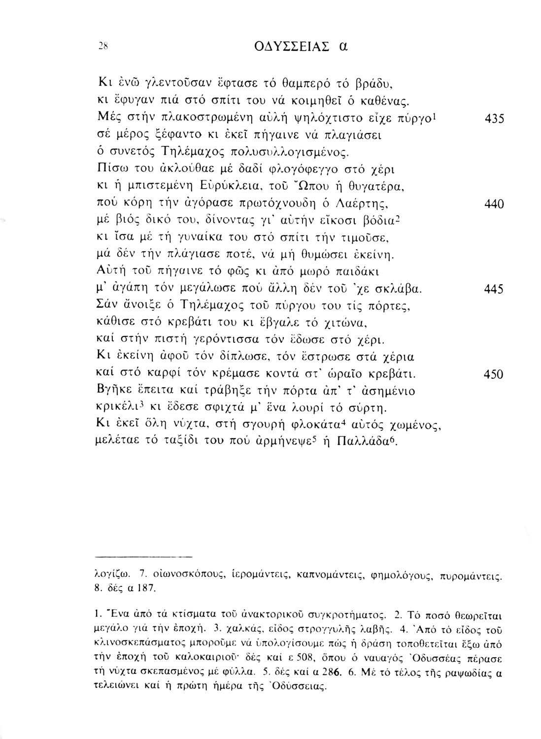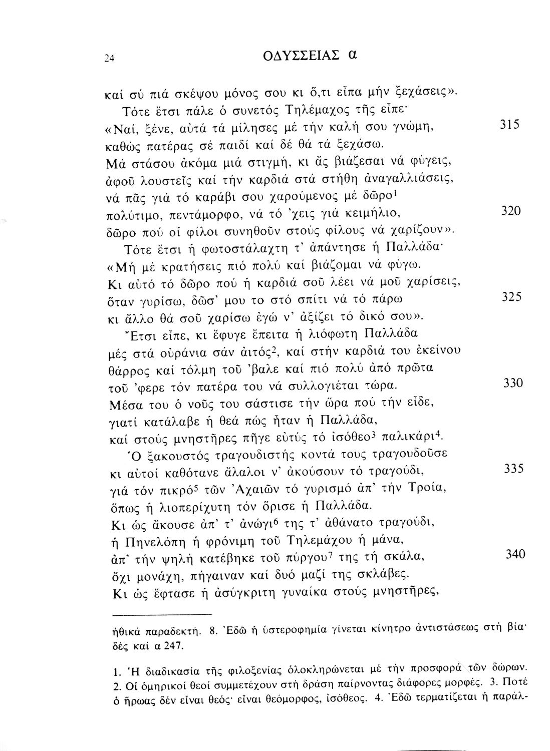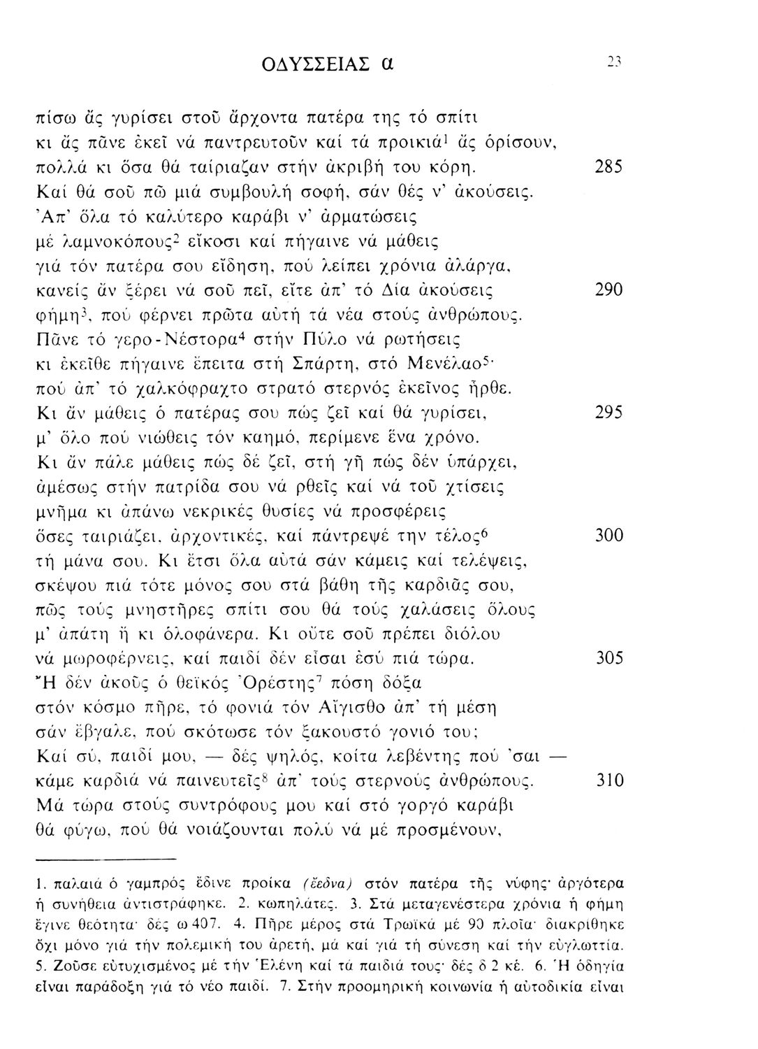 Παιδαγωγικό βοήθημα Αρχαίων Ελληνικών που περιλαμβάνει μετάφραση των ραψωδιών Ν-Ω της Οδύσσειας.