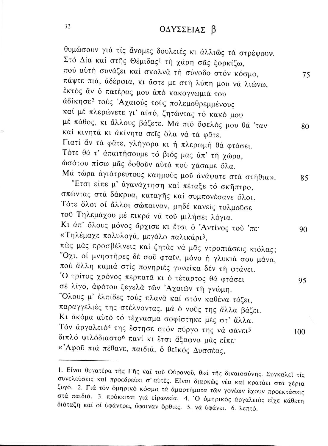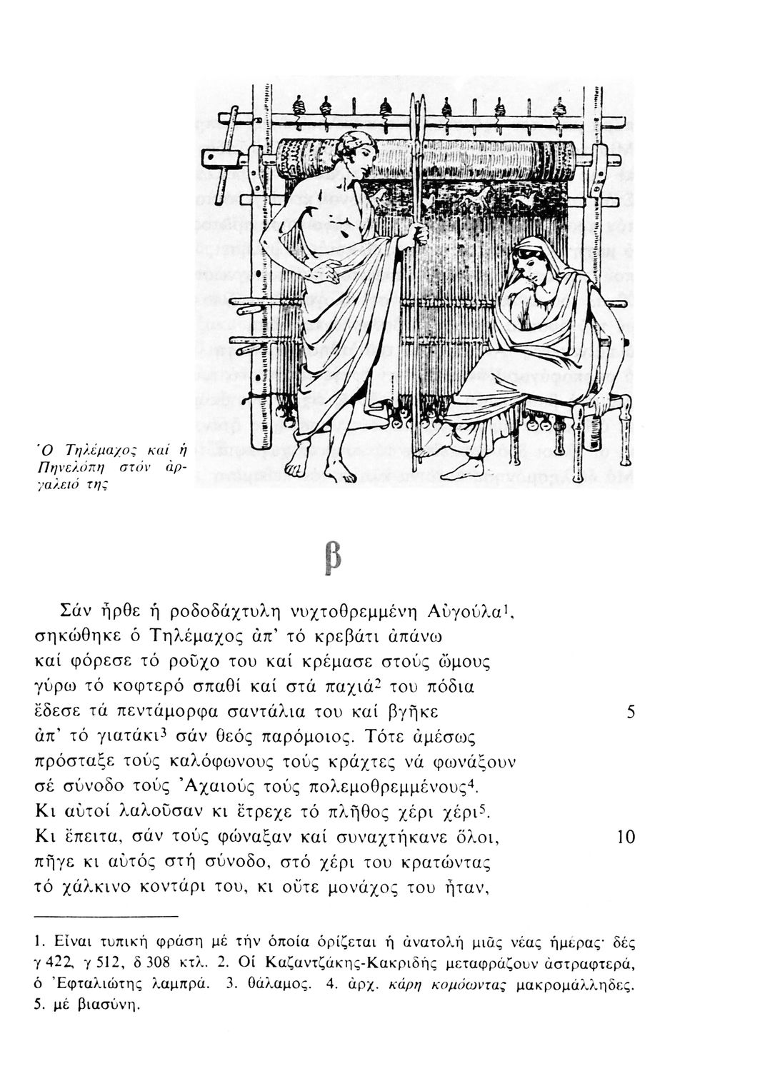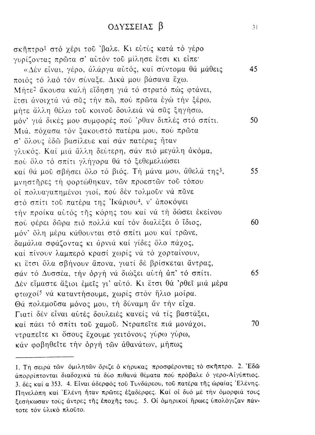 Παιδαγωγικό βοήθημα Αρχαίων Ελληνικών που περιλαμβάνει μετάφραση των ραψωδιών Ν-Ω της Οδύσσειας.