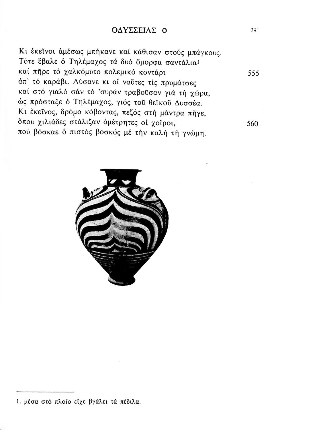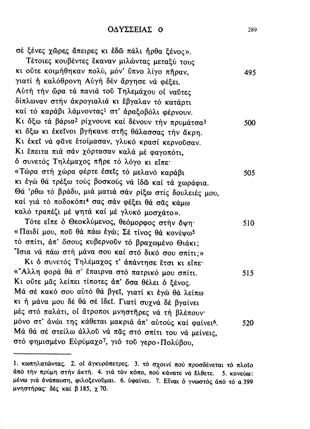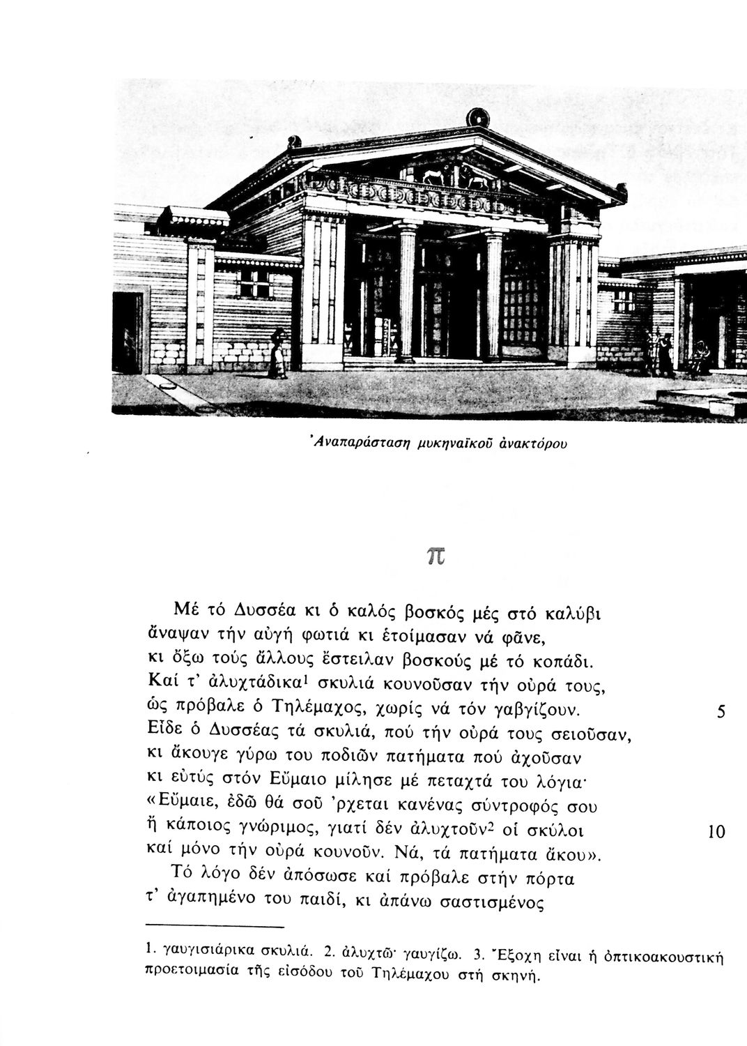 520 ## _aΣχολικό εγχειρίδιο Αρχαίων Ελληνικών. Το βιβλίο περιλαμβάνει εισαγωγή σχετικά με το έργο του Ομήρου, τη δομή και το περιεχόμενο της Οδύσσειας. Ακολουθεί το έπος της Οδύσσειας σε μετάφραση του Ζήσιμου Σιδέρη. Τα κείμενα συνοδεύουν ερμηνευτικές υποσημειώσεις και σχόλια. Η εισαγωγή και τα σχόλια είναι του Γεν. Επιθεωρητή Τριαντ. Ι. Δελή. Η ορθογραφική προσαρμογή της μετάφρασης έγινε από το Γεν. Επιθ. Κ. Μικρουδή.