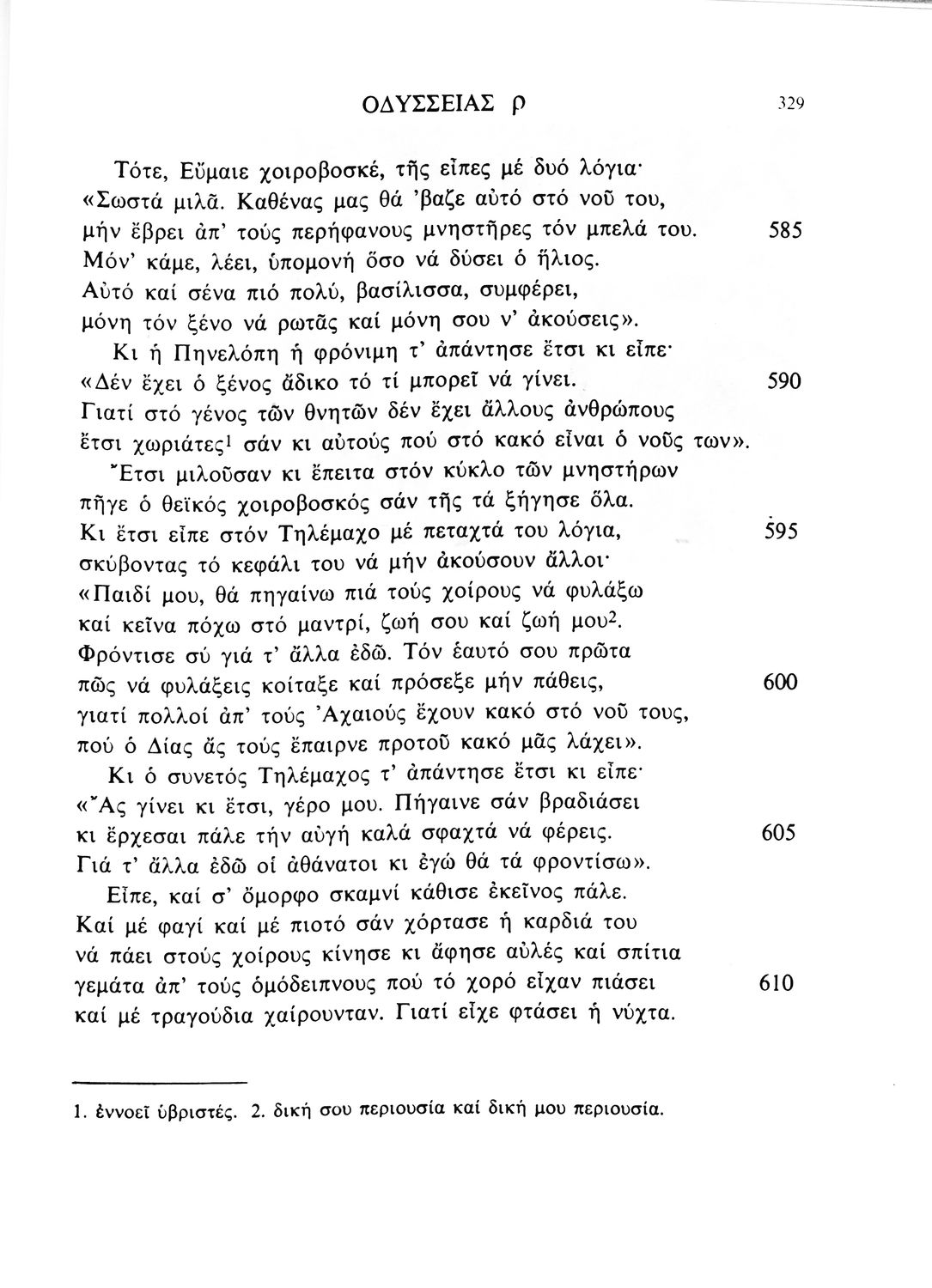 Παιδαγωγικό βοήθημα Αρχαίων Ελληνικών που περιλαμβάνει μετάφραση των ραψωδιών Ν-Ω της Οδύσσειας.