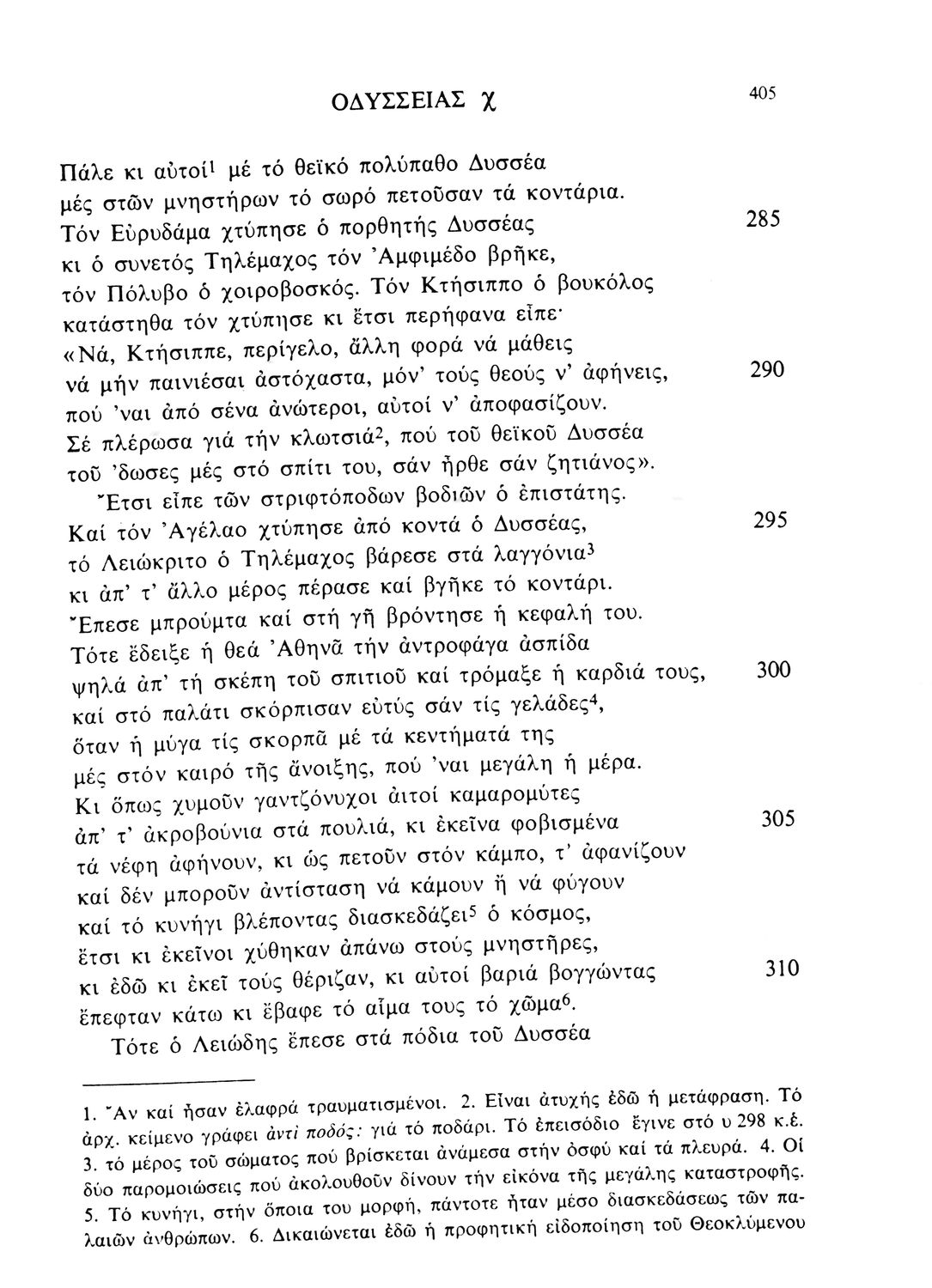 Παιδαγωγικό βοήθημα Αρχαίων Ελληνικών που περιλαμβάνει μετάφραση της Ομήρου Οδύσσειας στη νέα ελληνική, εισαγωγή στην επική ποίηση και στην Οδύσσεια, περιλήψεις και σημειώσεις.