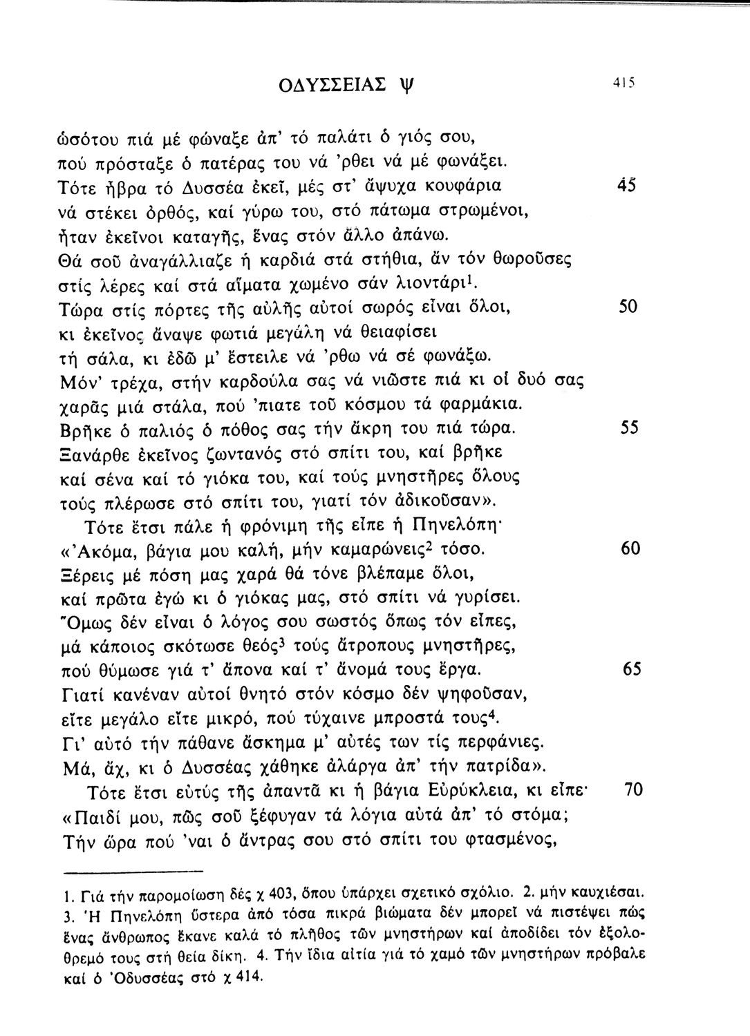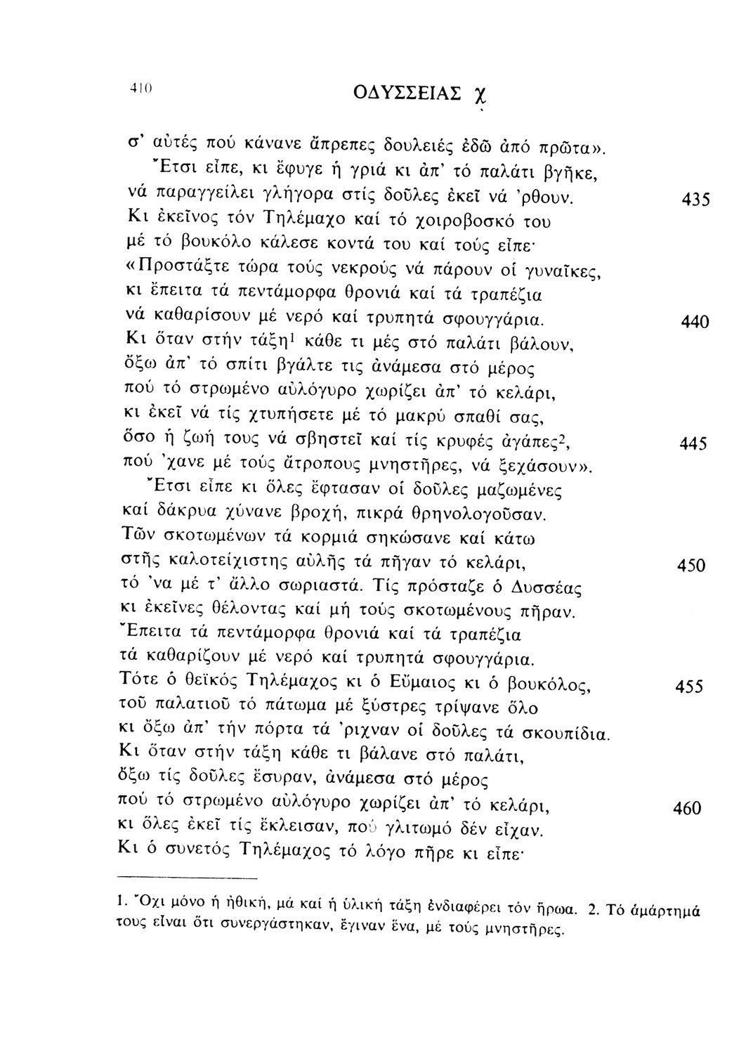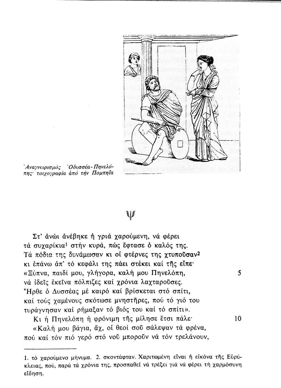 Παιδαγωγικό βοήθημα Αρχαίων Ελληνικών που περιλαμβάνει μετάφραση των ραψωδιών Ν-Ω της Οδύσσειας.