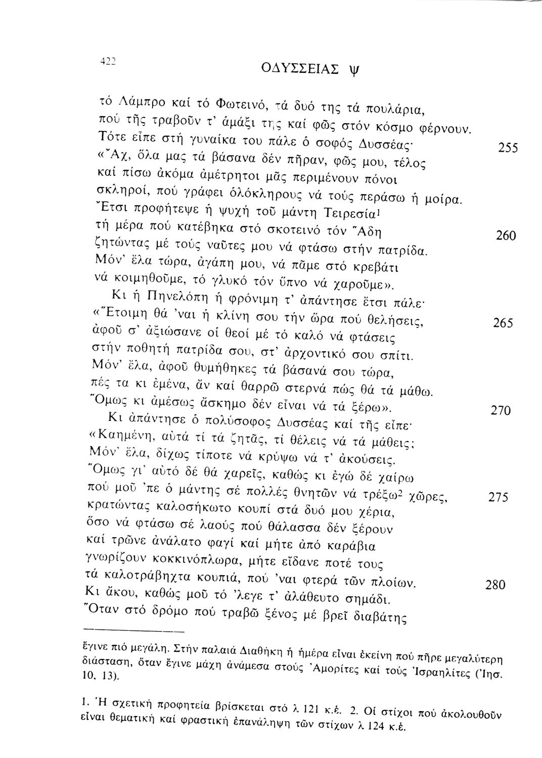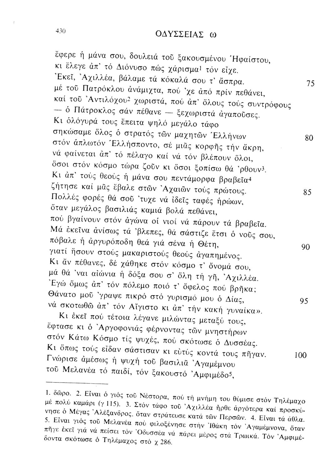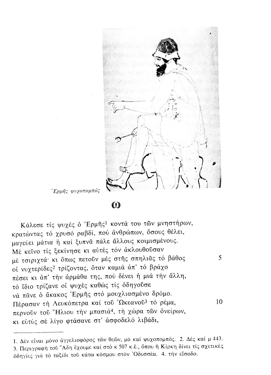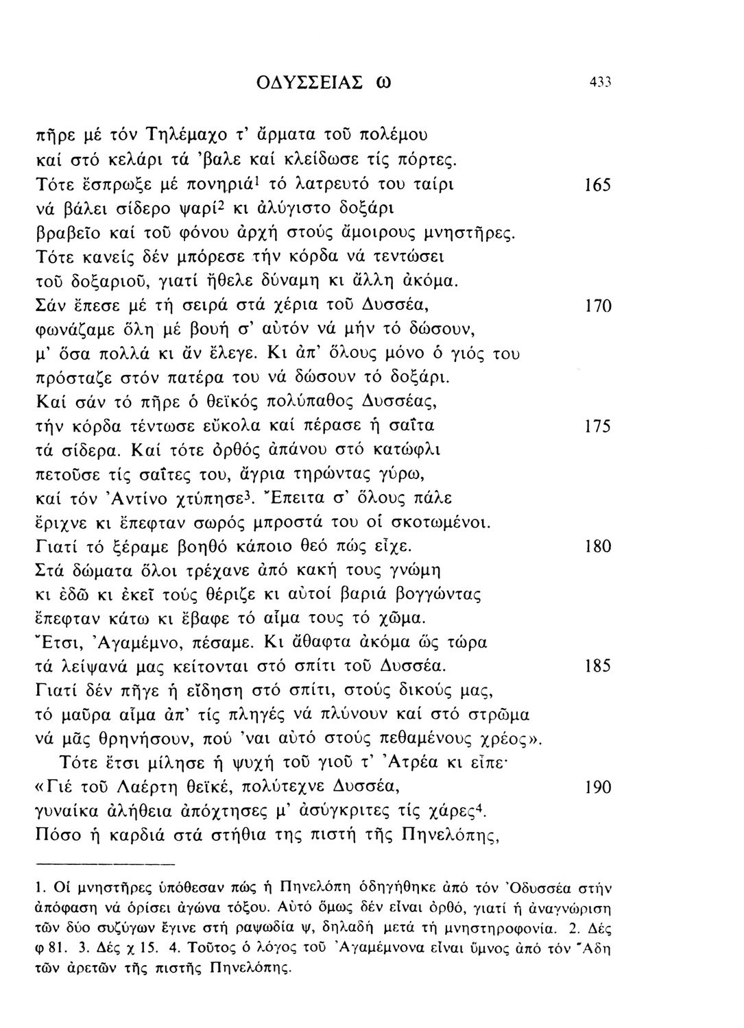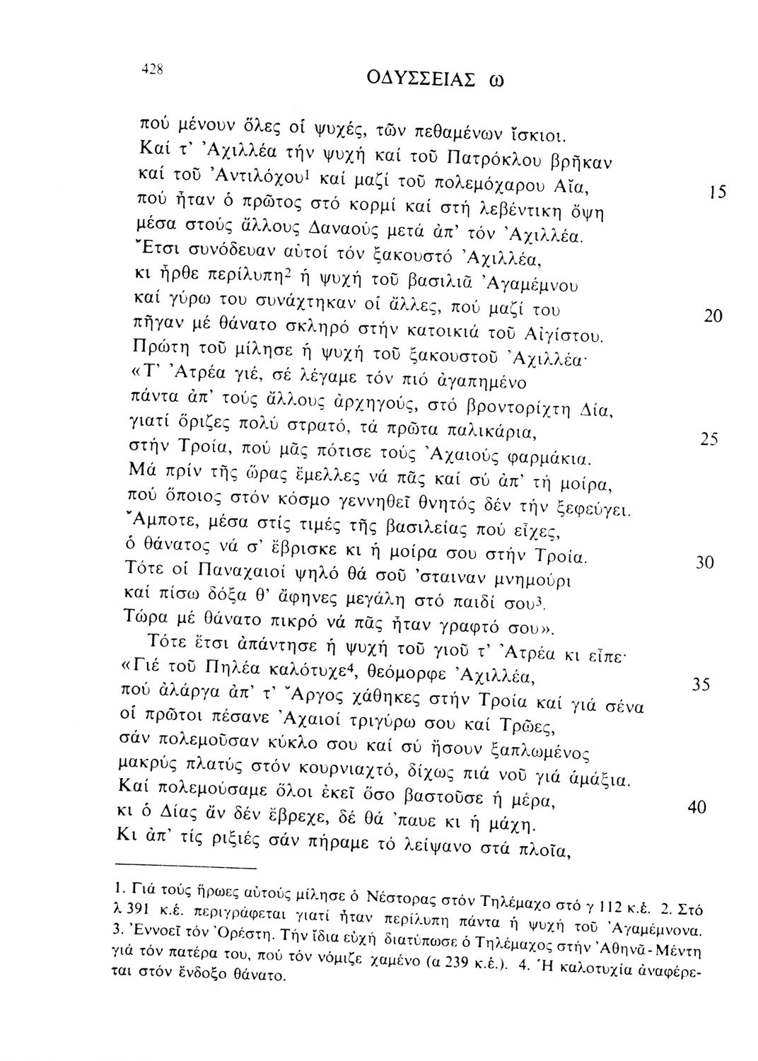 Σχολικό εγχειρίδιο Αρχαίων Ελληνικών. Το βιβλίο περιλαμβάνει εισαγωγή σχετικά με το έργο του Ομήρου, τη δομή και το περιεχόμενο της Οδύσσειας. Ακολουθεί το έπος της Οδύσσειας σε μετάφραση του Ζήσιμου Σιδέρη. Τα κείμενα συνοδεύουν ερμηνευτικές υποσημειώσεις και σχόλια. Η εισαγωγή και τα σχόλια είναι του Γεν. Επιθεωρητή Τριαντ. Ι. Δελή. Η ορθογραφική προσαρμογή της μετάφρασης έγινε από το Γεν. Επιθ. Κ. Μικρουδή.