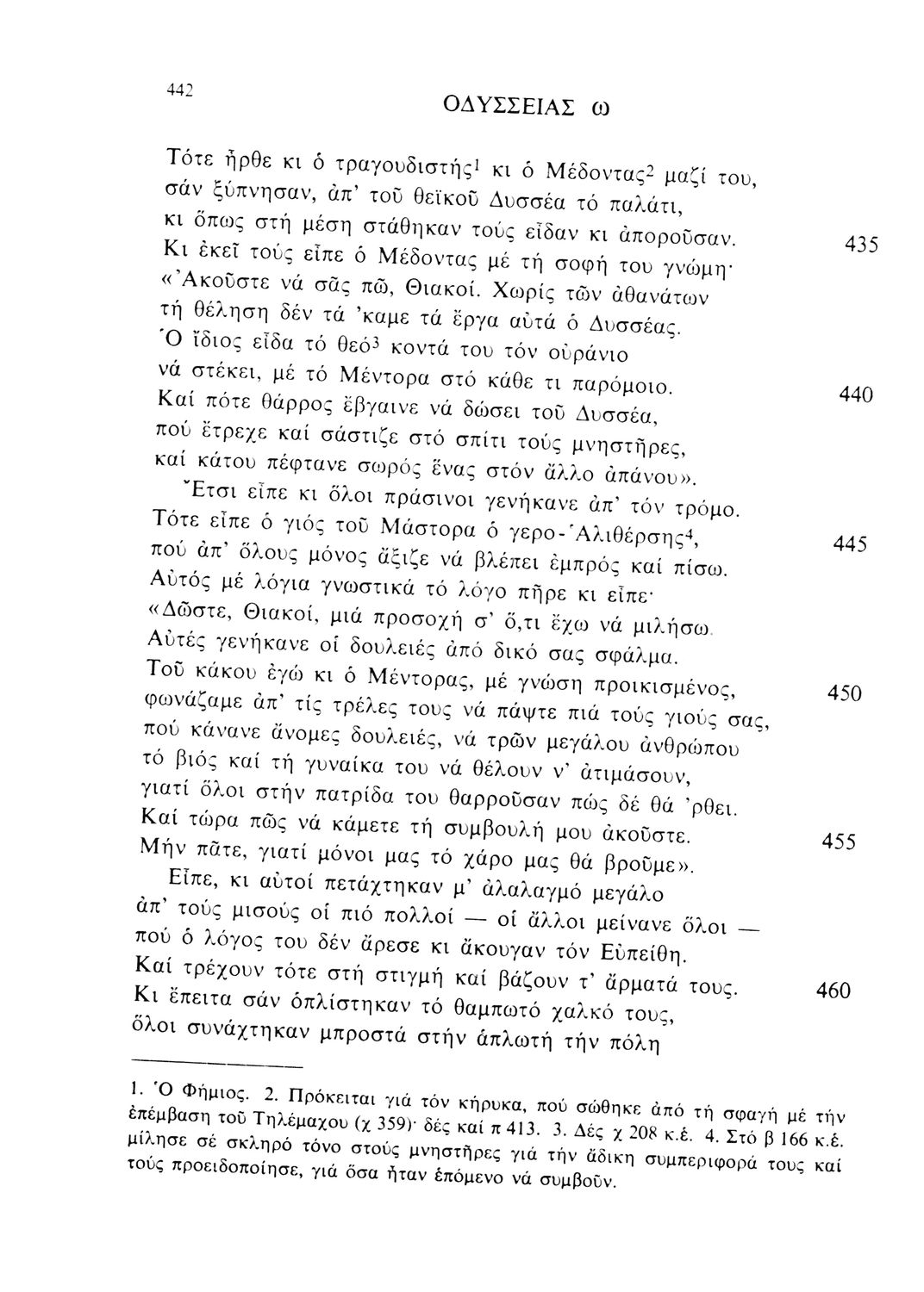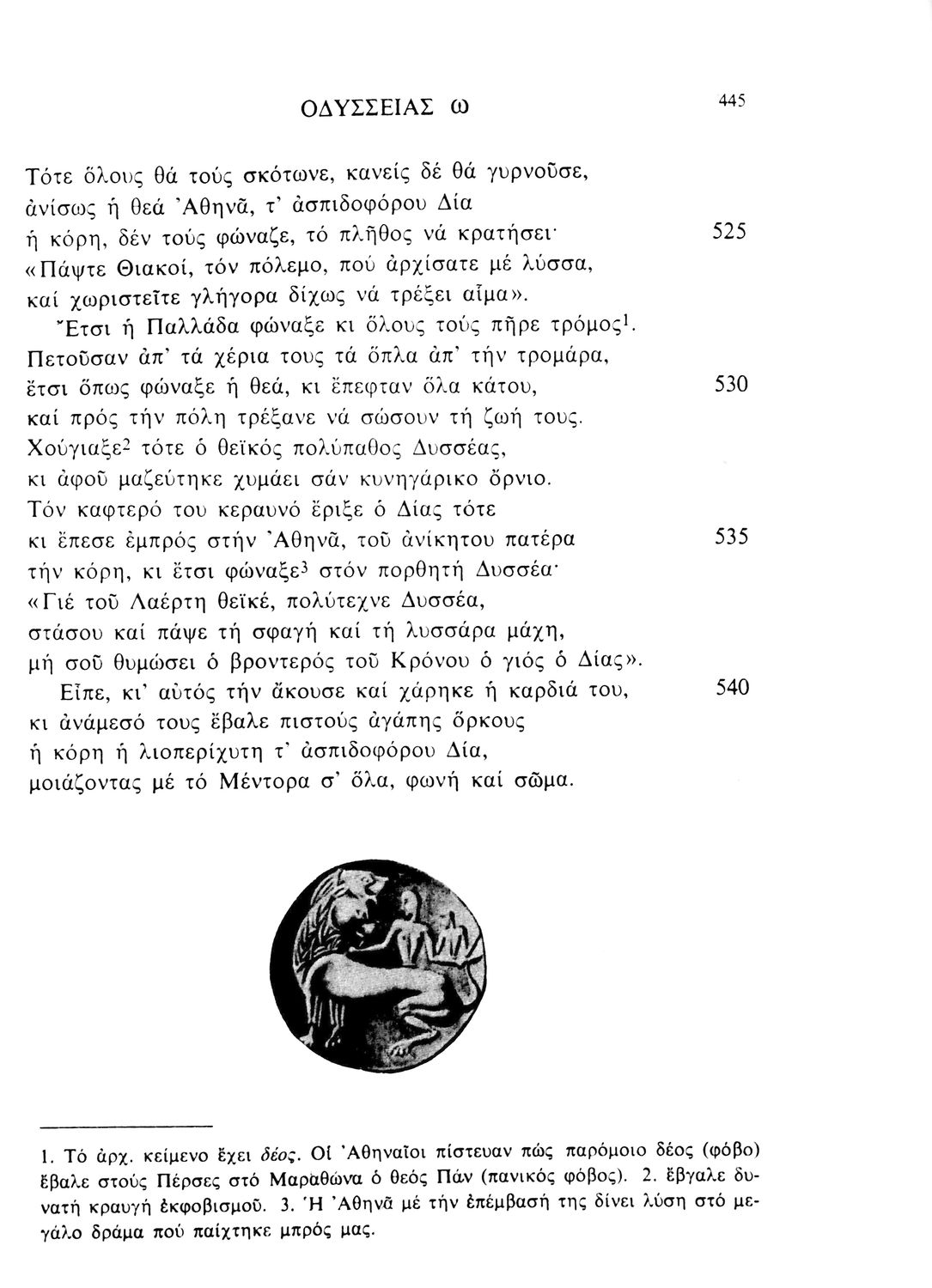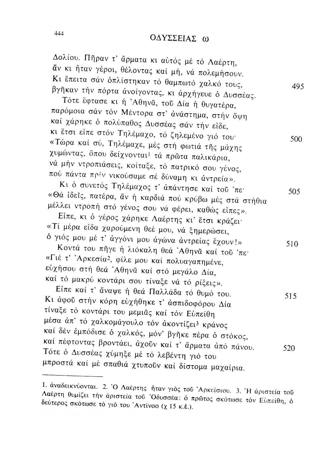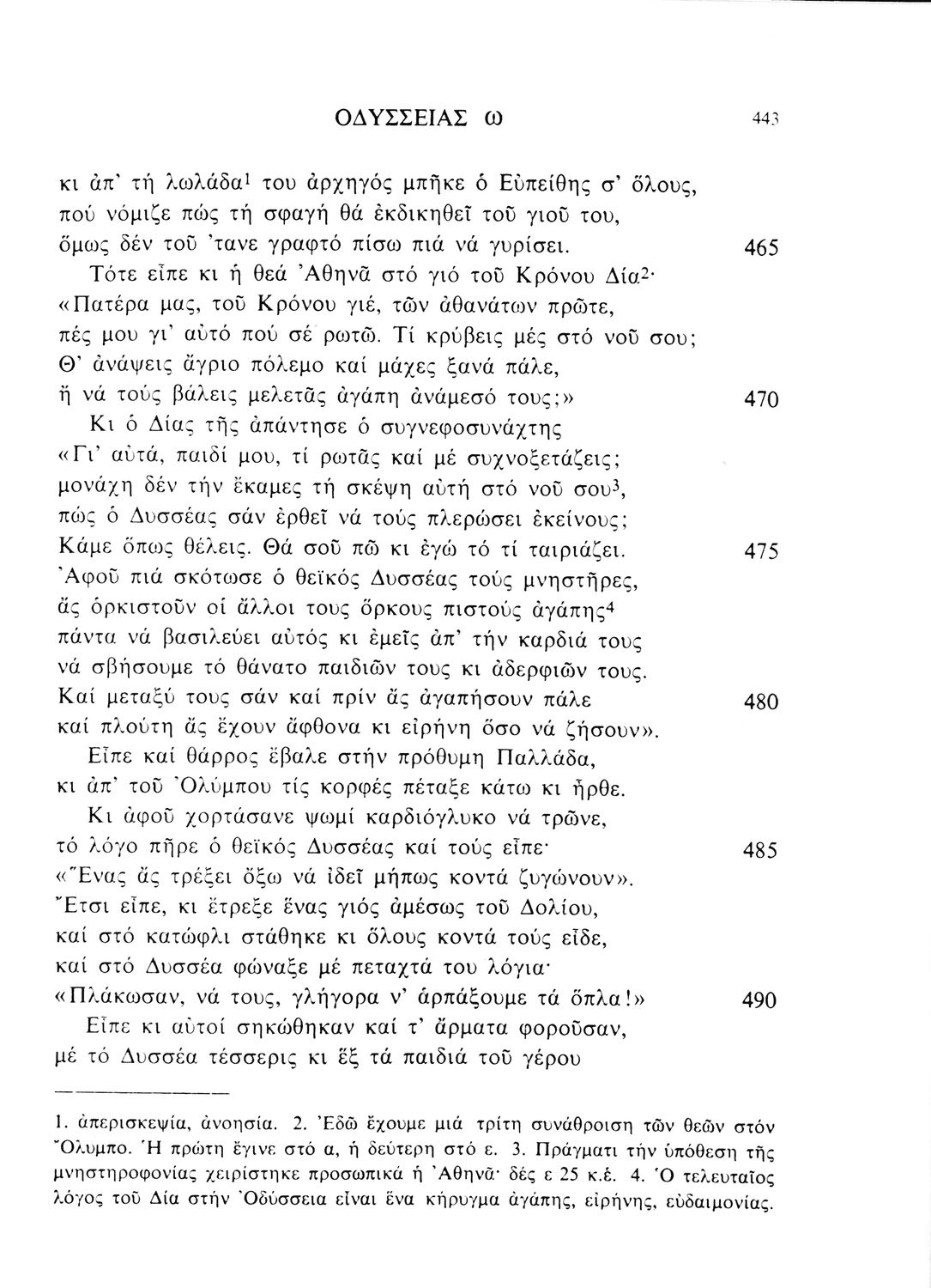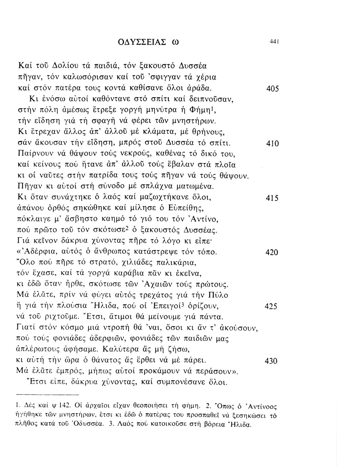 Παιδαγωγικό βοήθημα Αρχαίων Ελληνικών που περιλαμβάνει μετάφραση των ραψωδιών Ν-Ω της Οδύσσειας.