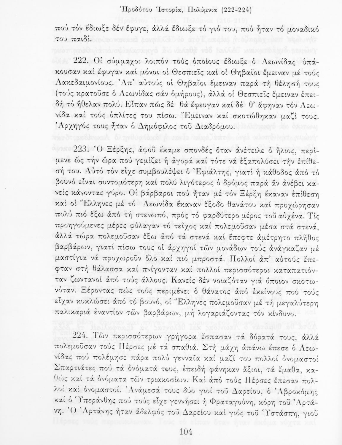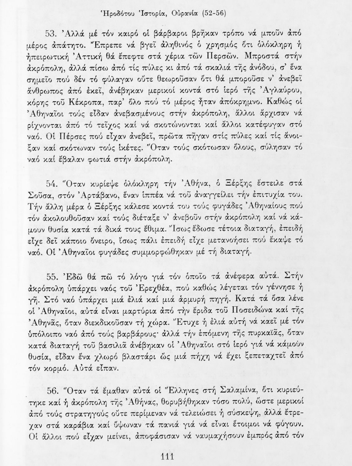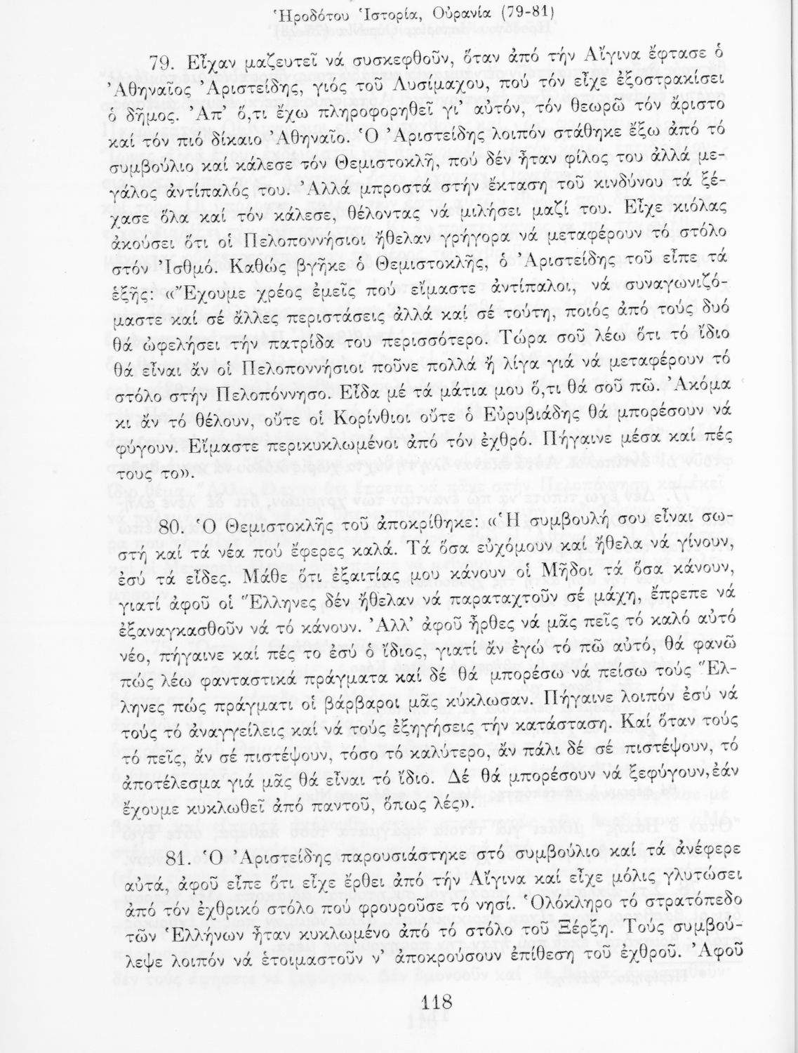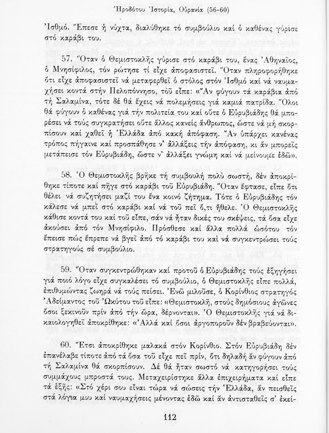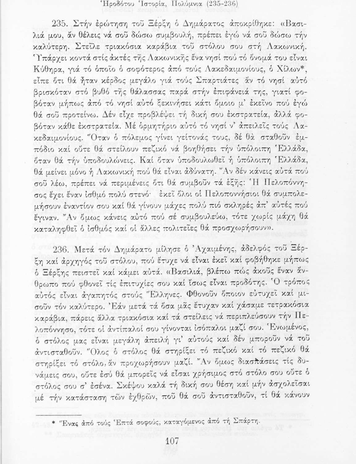 Σχολικό εγχειρίδιο Αρχαίων Ελληνικών Α΄ Γυμνασίου που περιλαμβάνει αποσπάσματα από την Ιστορία του Ηρόδοτου σε μετάφραση, εισαγωγή στη ζωή, το έργο και τη διάλεκτό του και ερμηνευτικά και πραγματολογικά σχόλια.