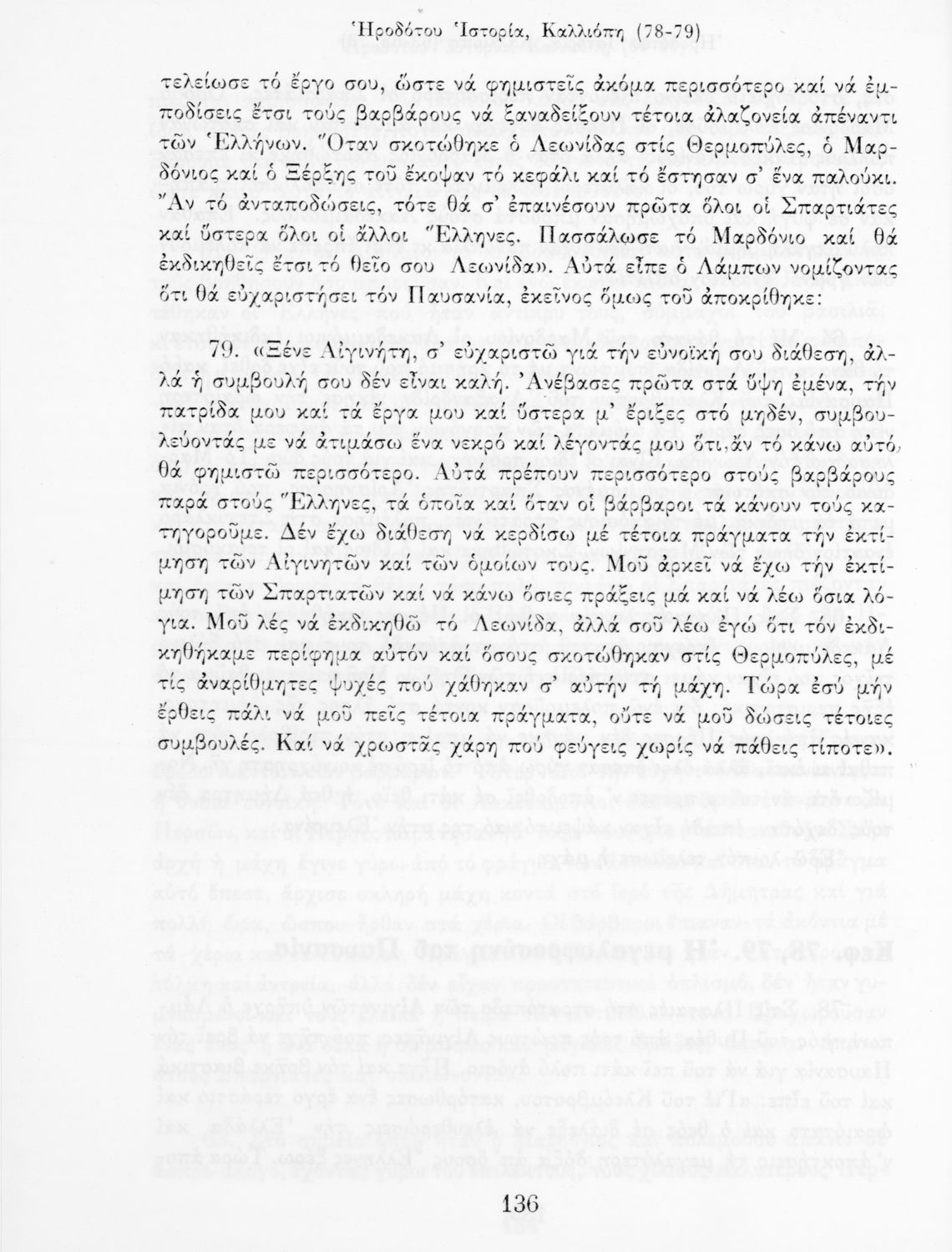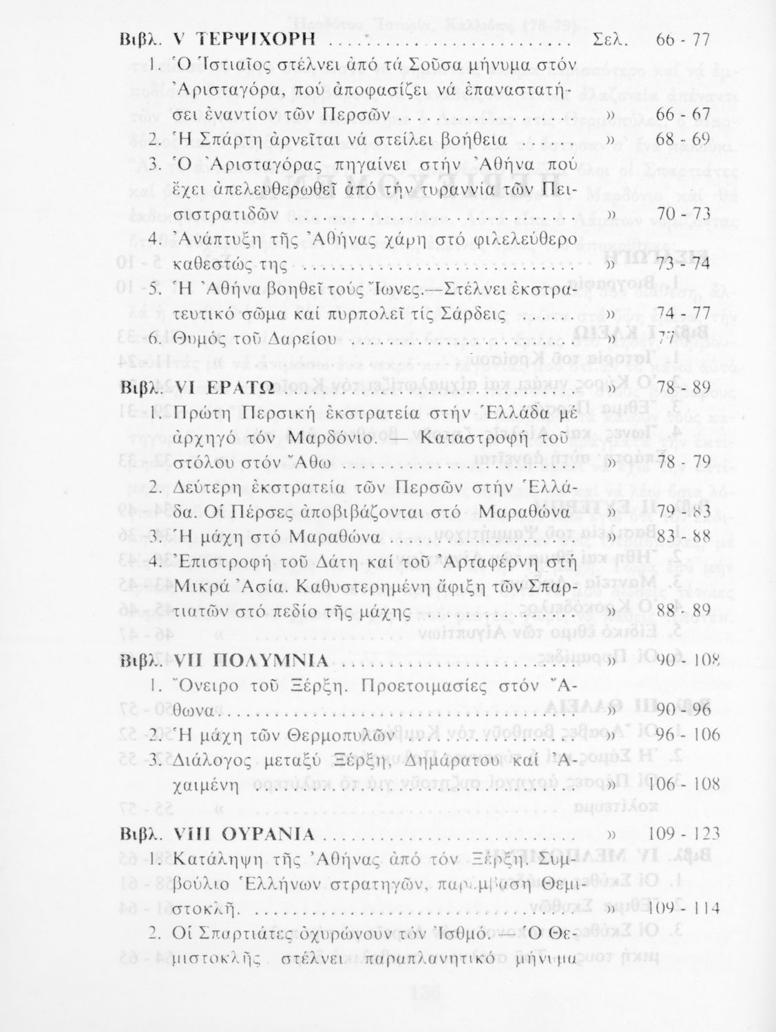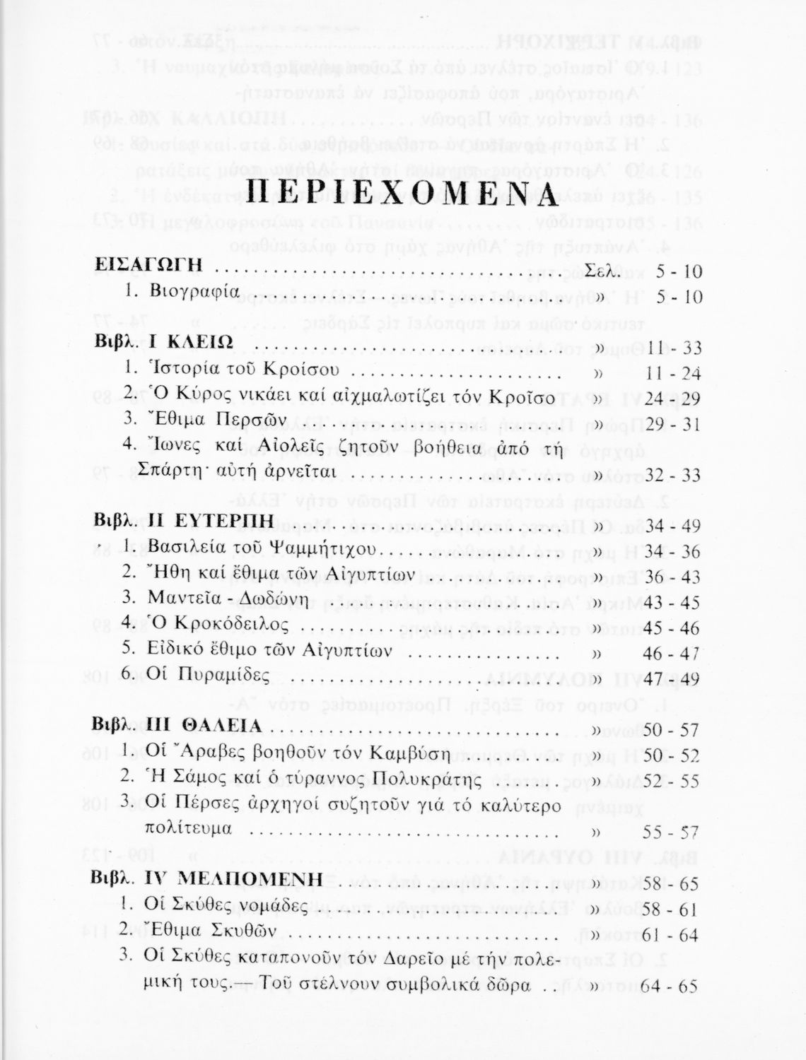 Σχολικό εγχειρίδιο Αρχαίων Ελληνικών Α΄ Γυμνασίου που περιλαμβάνει αποσπάσματα από την Ιστορία του Ηρόδοτου σε μετάφραση, εισαγωγή στη ζωή, το έργο και τη διάλεκτό του και ερμηνευτικά και πραγματολογικά σχόλια.