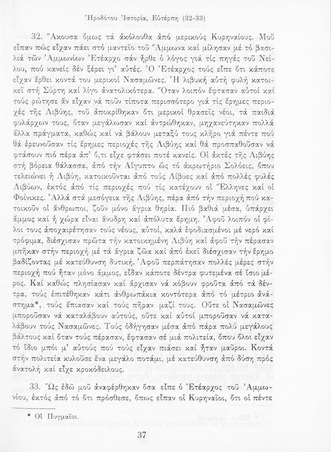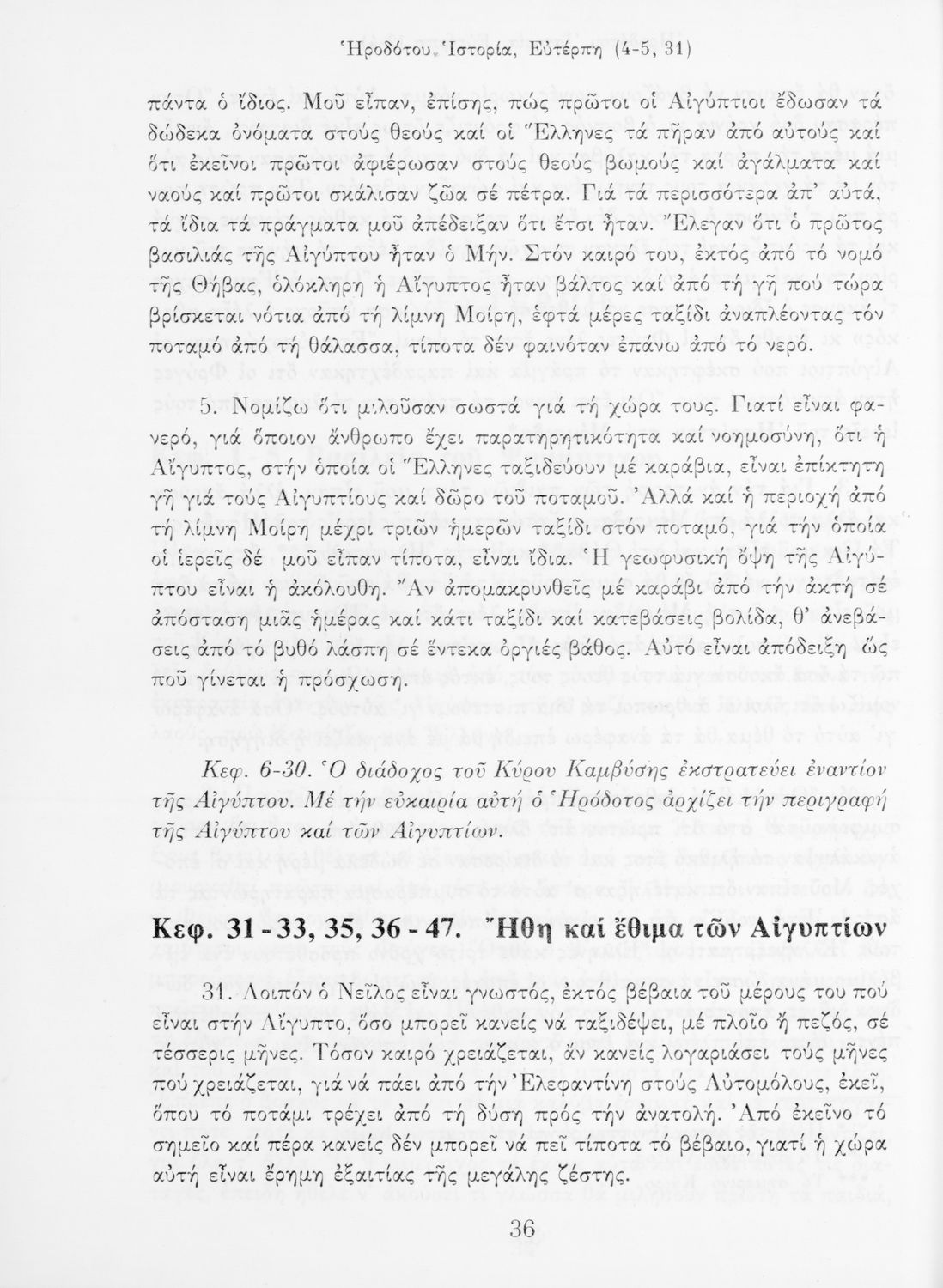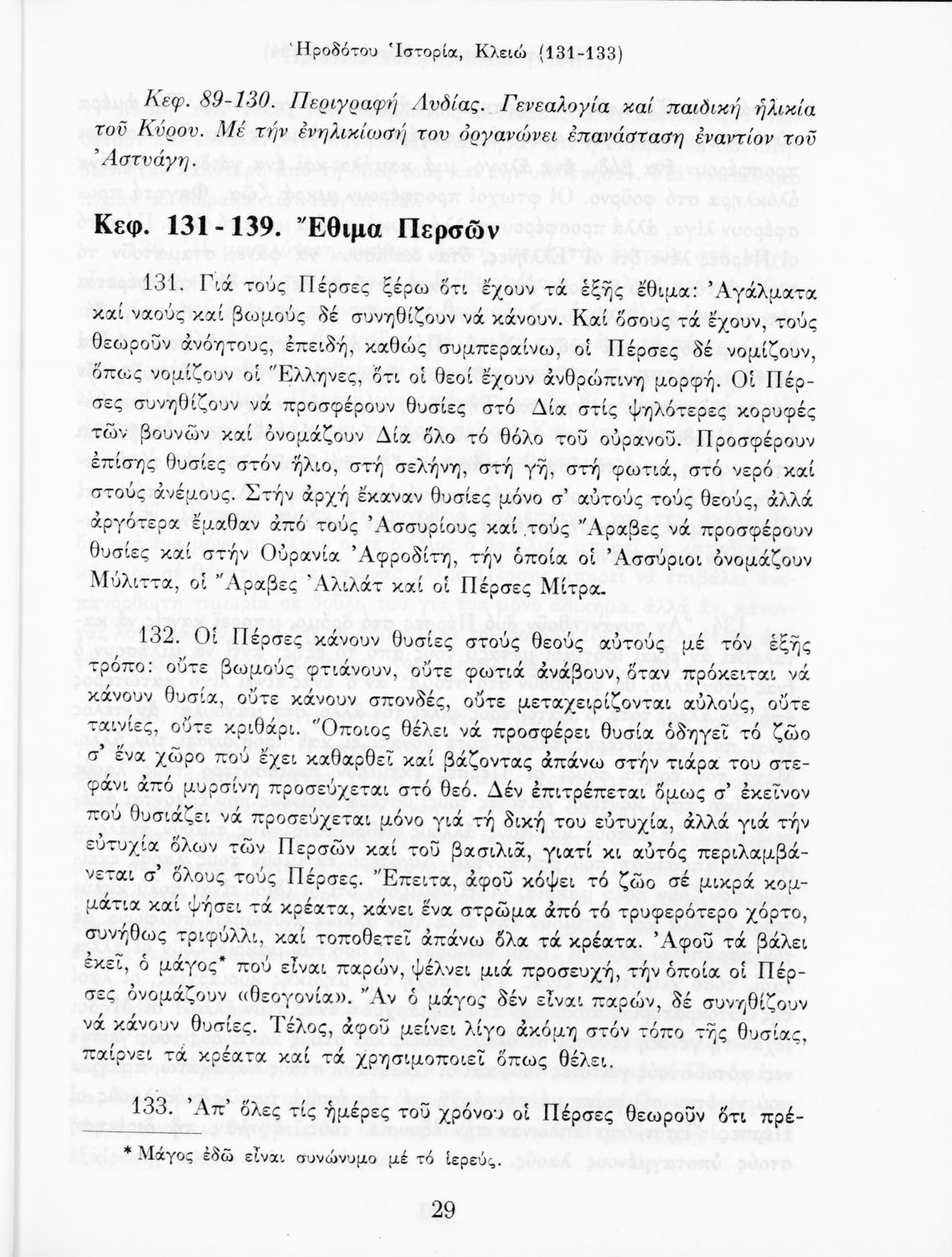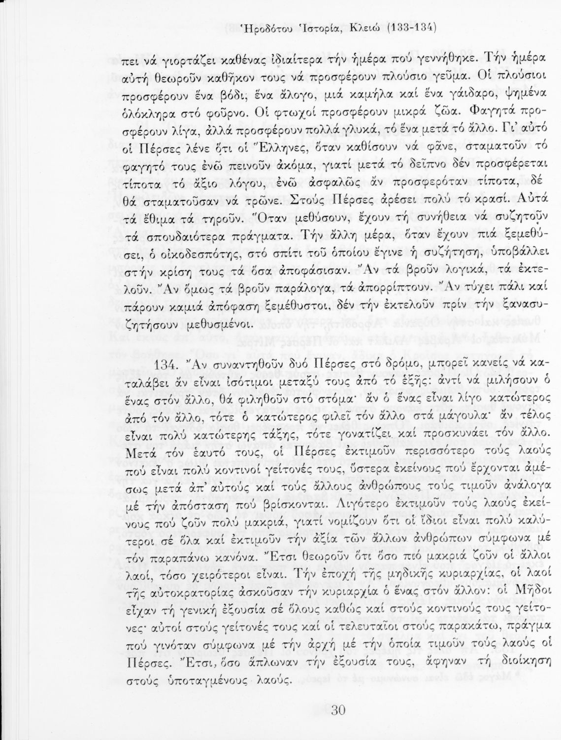 Σχολικό εγχειρίδιο Αρχαίων Ελληνικών Α΄ Γυμνασίου που περιλαμβάνει αποσπάσματα από την Ιστορία του Ηρόδοτου σε μετάφραση, εισαγωγή στη ζωή, το έργο και τη διάλεκτό του και ερμηνευτικά και πραγματολογικά σχόλια.