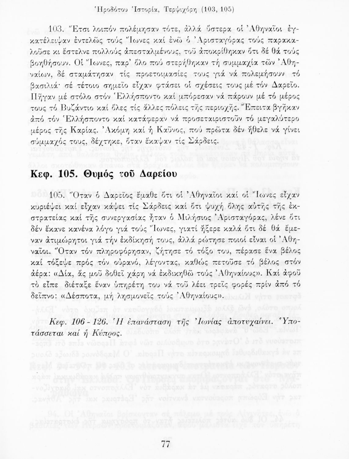 Σχολικό εγχειρίδιο Αρχαίων Ελληνικών Α΄ Γυμνασίου που περιλαμβάνει εισαγωγή στη ζωή και το έργο του Ηρόδοτου, και αποσπάσματα από τα 9 βιβλία της Ιστορίας του σε μετάφραση.