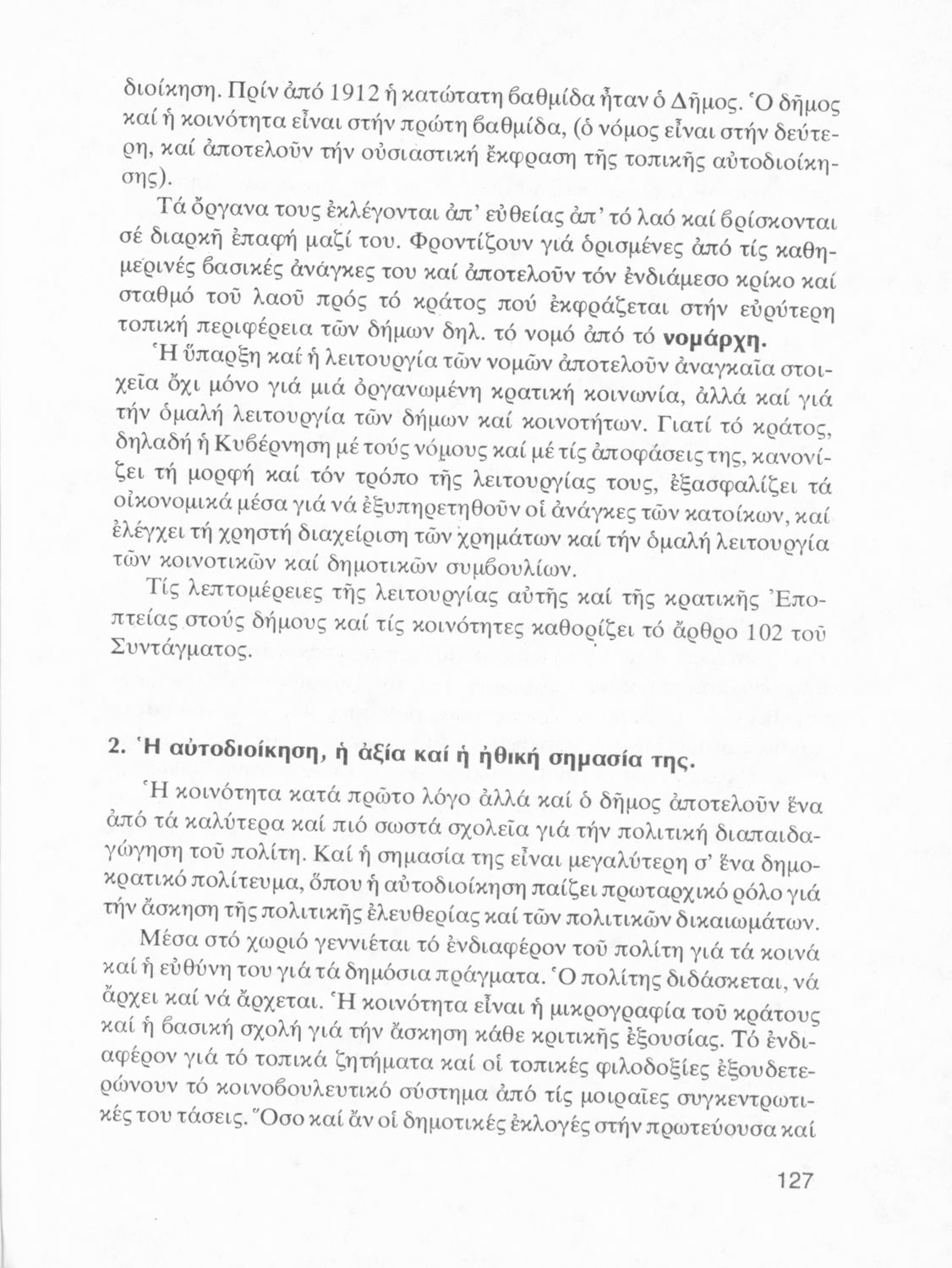 Σχολικό εγχειρίδιο Αγωγής του Πολίτη ΣΤ΄ Γυμνασίου που πραγματεύεται θέματα κρατικής οργάνωσης, θεσμών και δημοσιονομικής πολιτικής και παρουσιάζει τα πολιτεύματα, τη διάκριση των εξουσιών και τη λειτουργία του συντάγματος.