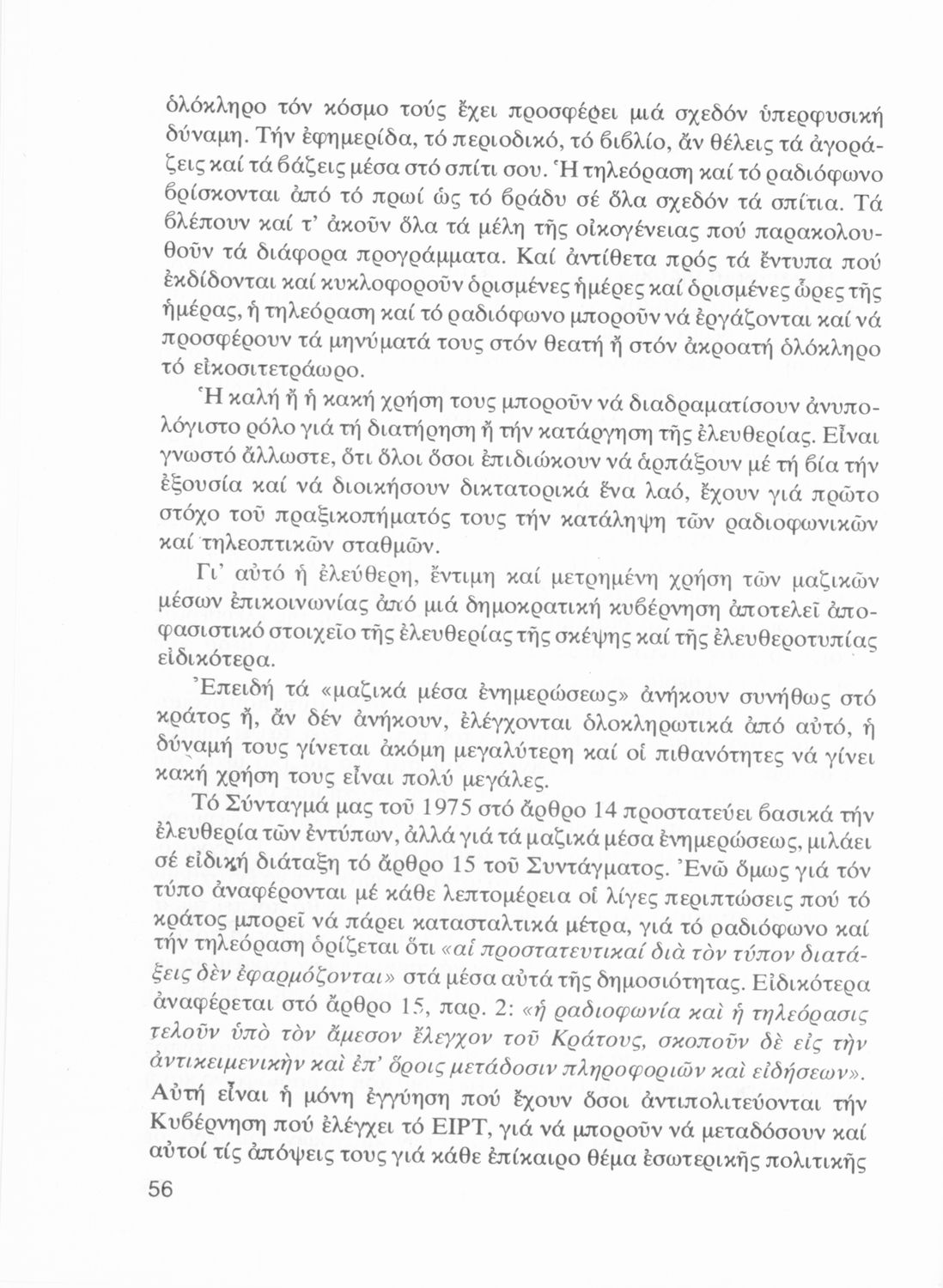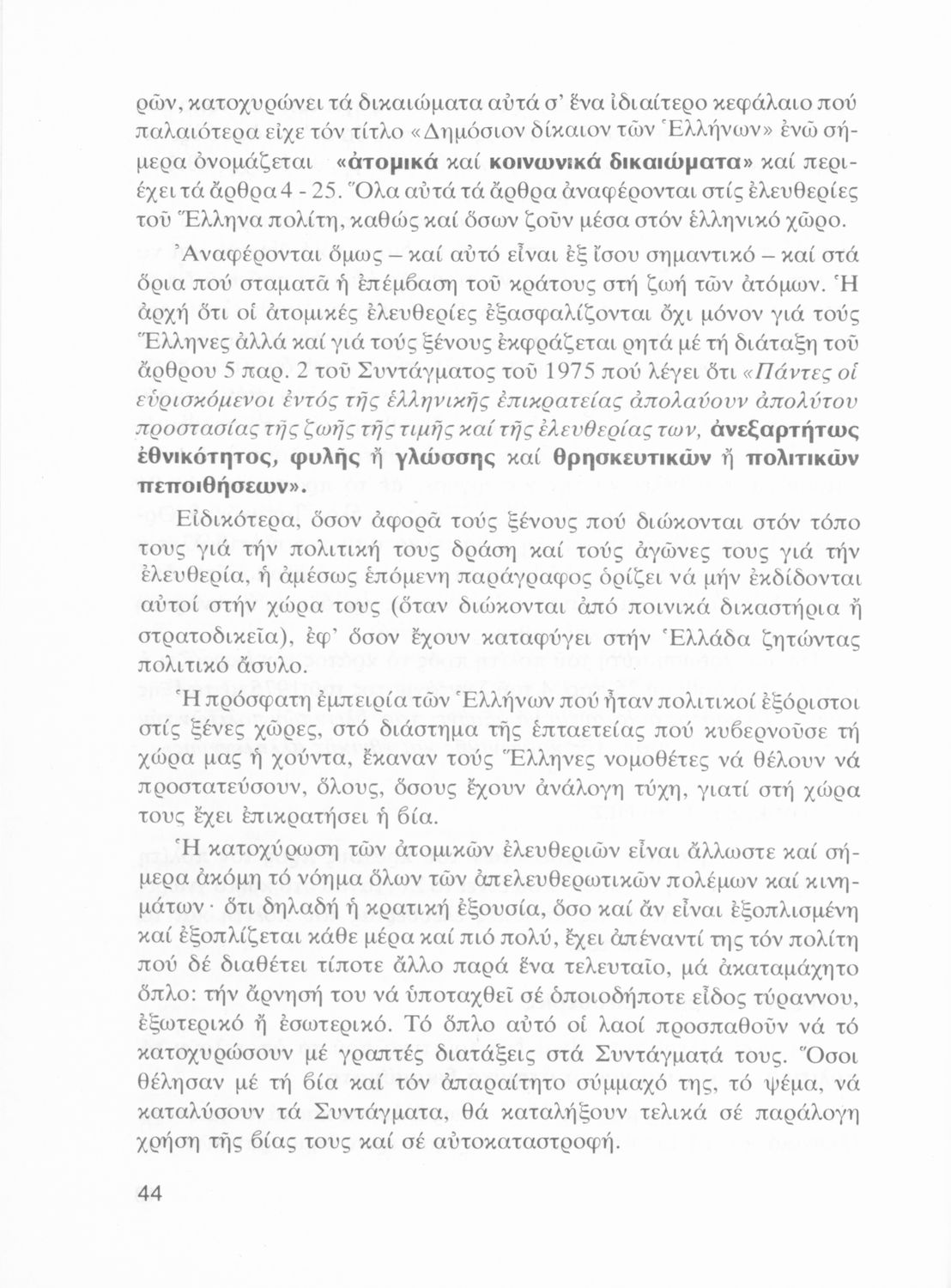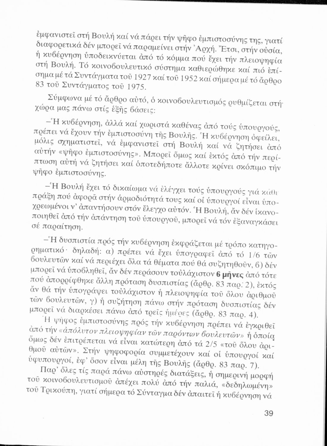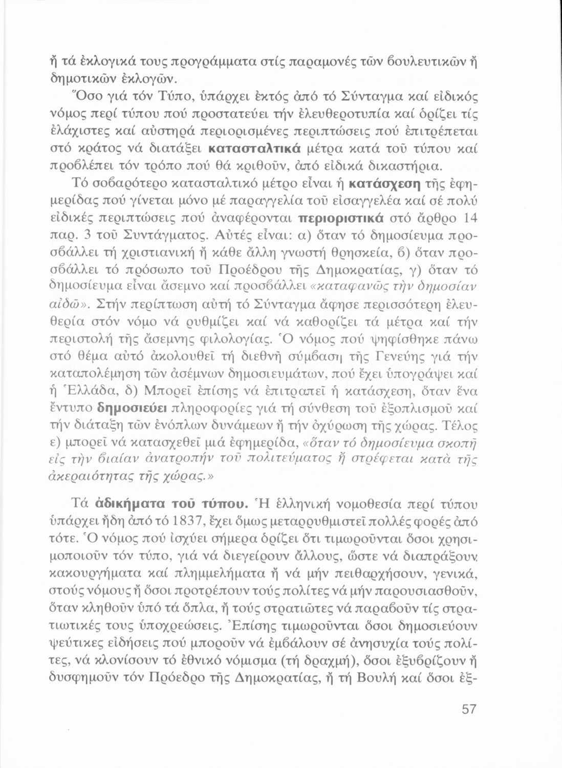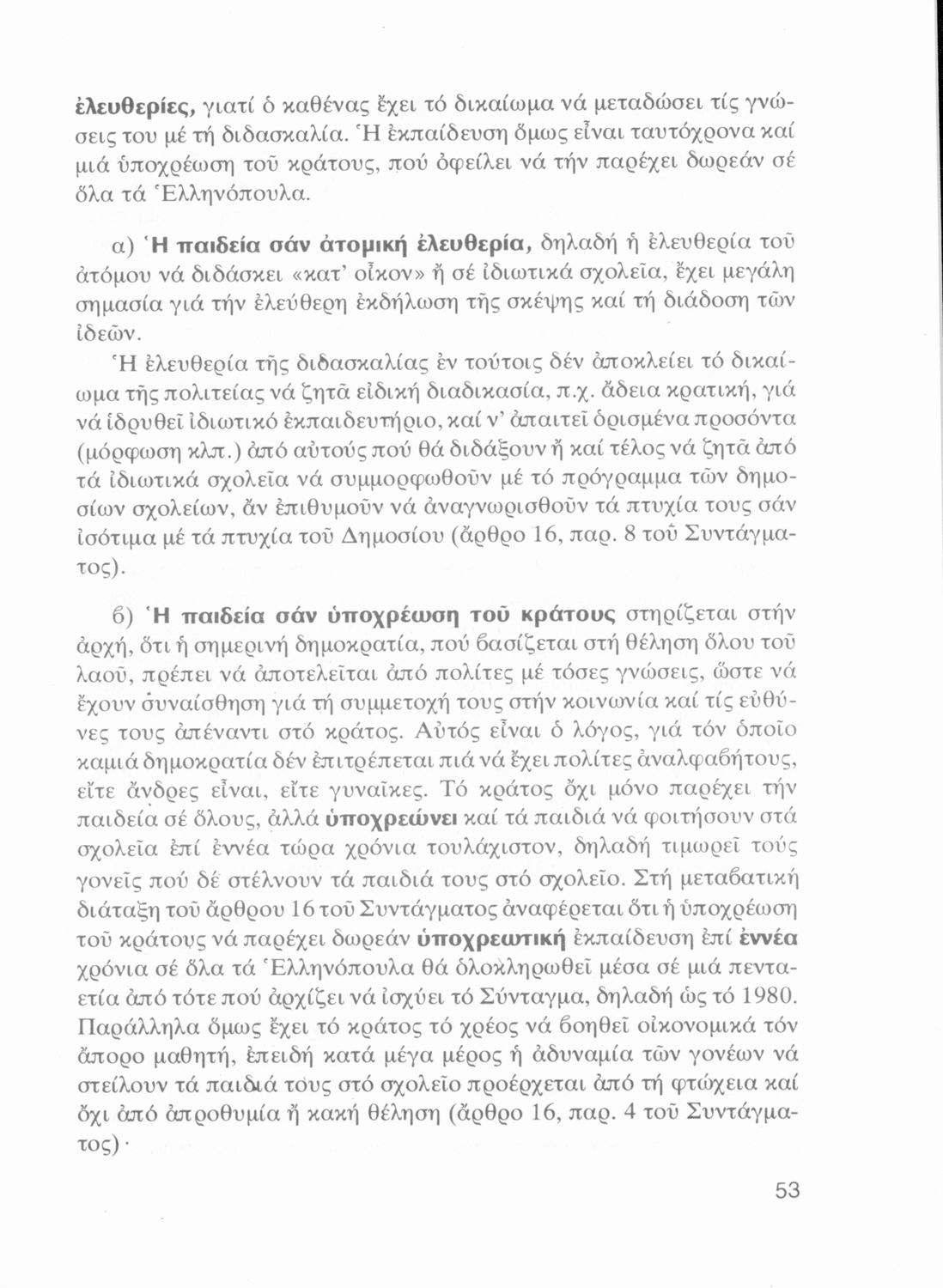 LDR 01439 2200205 4500 035 ## _a01-19493 040 ## _aΙνστιτούτο Εκπαιδευτικής Πολιτικής 041 ## _ael 100 ## _aΑγνή Ρουσοπούλου 110 ## _a19493 245 0# _aΤι πρέπει να γνωρίζει ο Πολίτης. Στοιχεία Δημοκρατικού Πολιτεύματος Γ΄ Λυκείου 250 ## _a3η Έκδοση 260 ## _aΑθήνα _bΟργανισμός Εκδόσεως Διδακτικών Βιβλίων _c1977 300 ## _a248 520 ## _aΣχολικό εγχειρίδιο Αγωγής του Πολίτη ΣΤ΄ Γυμνασίου που πραγματεύεται θέματα κρατικής οργάνωσης, θεσμών και δημοσιονομικής πολιτικής και παρουσιάζει τα πολιτεύματα, τη διάκριση των εξουσιών και τη λειτουργία του συντάγματος. 521 ## _aΓ' Λυκείου 522 ## _aΕλλάδα 546 ## _aΔημοτική 583 ## _a2842/16-4-1977 _c1977 650 #4 _aΒουλή _aΔικαστική εξουσία _aΈθνος _aΕκκλησία _aΕκτελεστική εξουσία _aΕλευθερία της σκέψης _aΕφημερίδα της κυβερνήσεως _aΚράτος _aΚυβέρνηση _aΣτρατιωτική υποχρέωση _aΦιλοπατρία