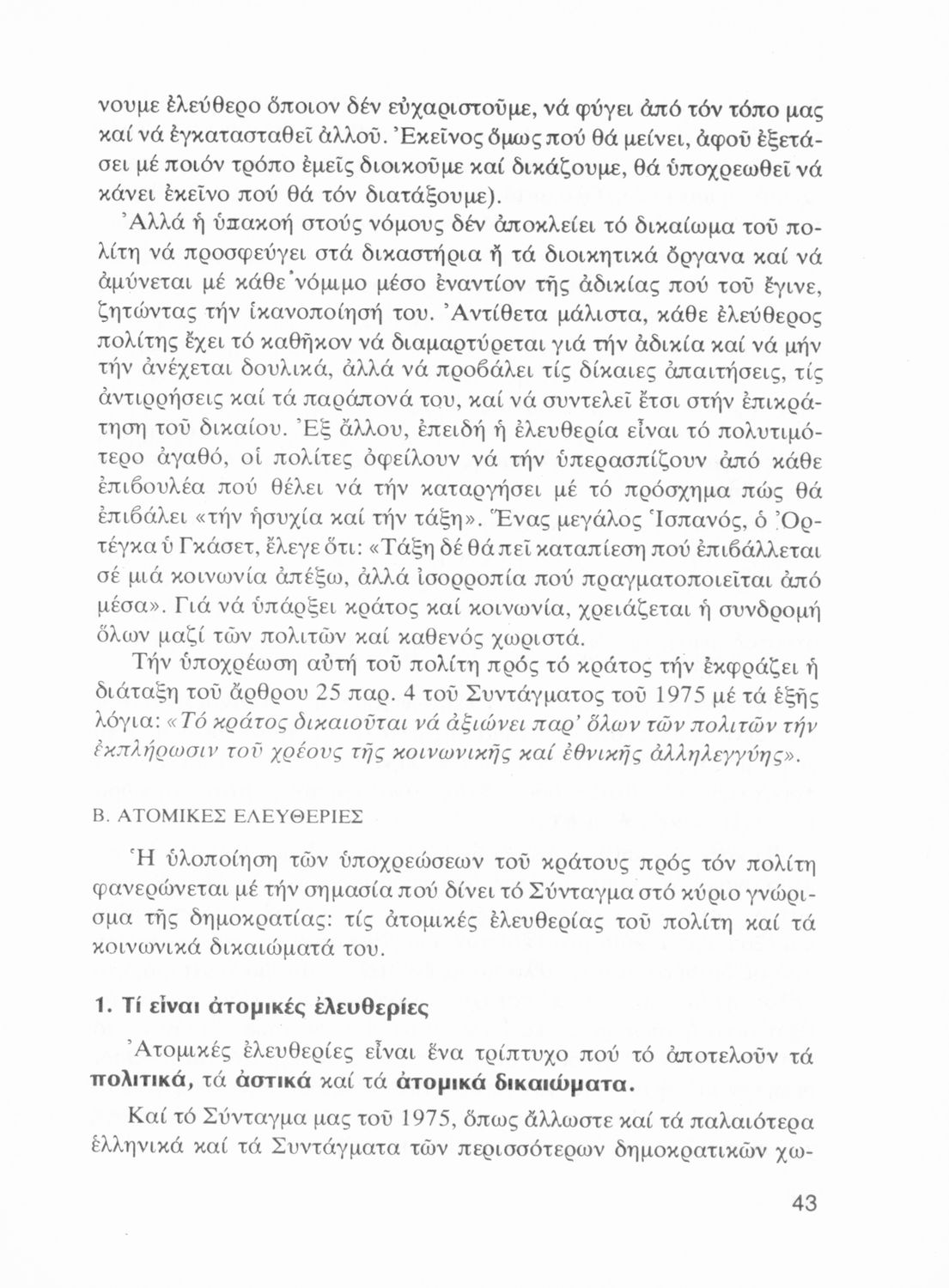 Σχολικό εγχειρίδιο Αγωγής του Πολίτη ΣΤ΄ Γυμνασίου που πραγματεύεται θέματα κρατικής οργάνωσης, θεσμών και δημοσιονομικής πολιτικής και παρουσιάζει τα πολιτεύματα, τη διάκριση των εξουσιών και τη λειτουργία του συντάγματος.