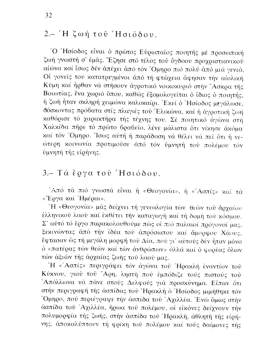Σχολικό εγχειρίδιο Αρχαίων Ελληνικών Β' Γυμνασίου που περιέχει την Βατραχομυομαχία του Όμηρου και τα Έργα και Ημέραι του Ησίοδου σε μετάφραση, και ερμηνευτικές και λεξιλογικές παρατηρήσεις.