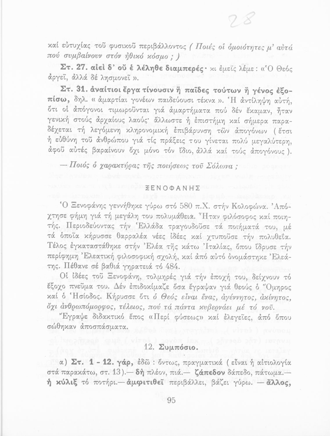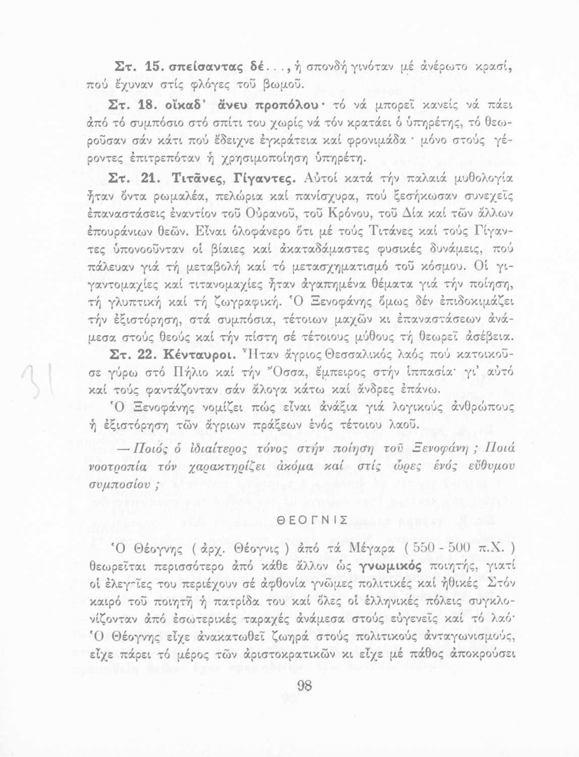 Σχολικό εγχειρίδιο Αρχαίων Ελληνικών Γ΄ Γυμνασίου που περιλαμβάνει αποσπάσματα έργων αρχαίων Ελλήνων λυρικών, πολιτικές και γνωμικές ελεγείες, περιγραφές συμποσίων, δημοτικά άσματα, επιγράμματα κ.α. Περιέχει ...