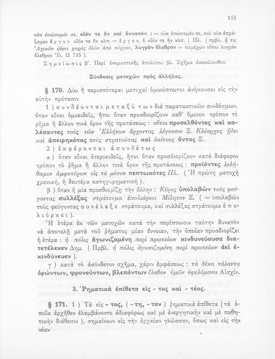 Σχολικό εγχειρίδιο Αρχαίων Ελληνικών Γ΄ Γυμνασίου και Α΄ Λυκείου που εξετάζει τα μέρη του λόγου και την σύνταξή τους.